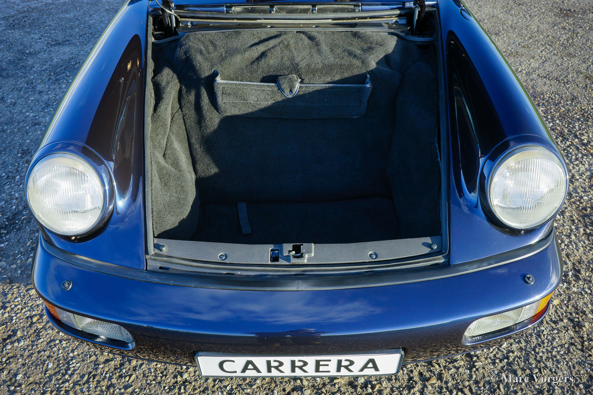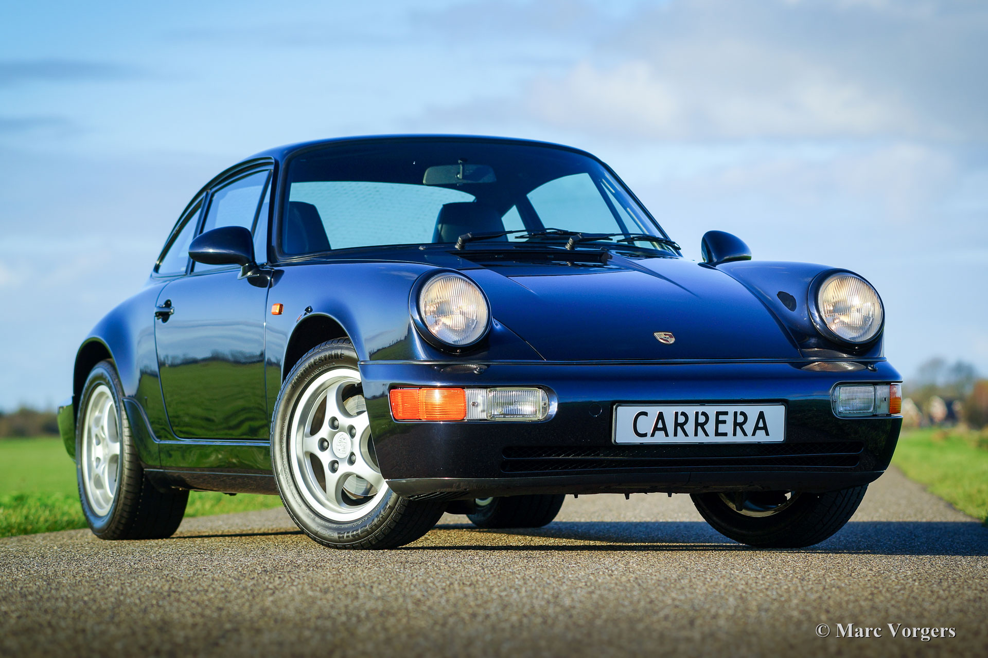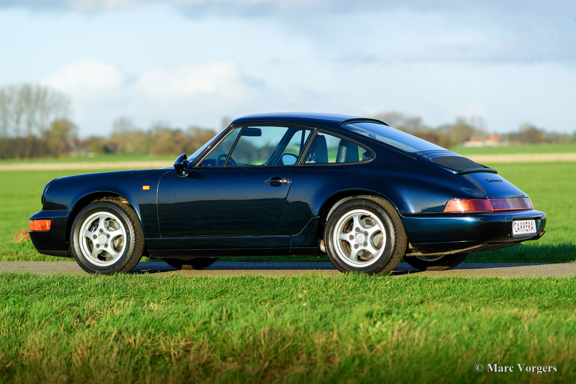 Porsche 911 (964) Carrera 2, year 1992. Colour blue metallic (Night Blue metallic) with a dark bleu leather interior and dark blue carpet. This tremendous Porsche 911 from the 964-series has driven only 42.000 kilometres from new. The car is in pristine top condition; like new! Were ever you look, this Europe-delivered 911 Carrera 2 is MINT in every detail. The car comes complete with all the original books and the two original keys! The spare wheel is original and never used, as is the complete and original tool-set. A splendid TOP specimen!