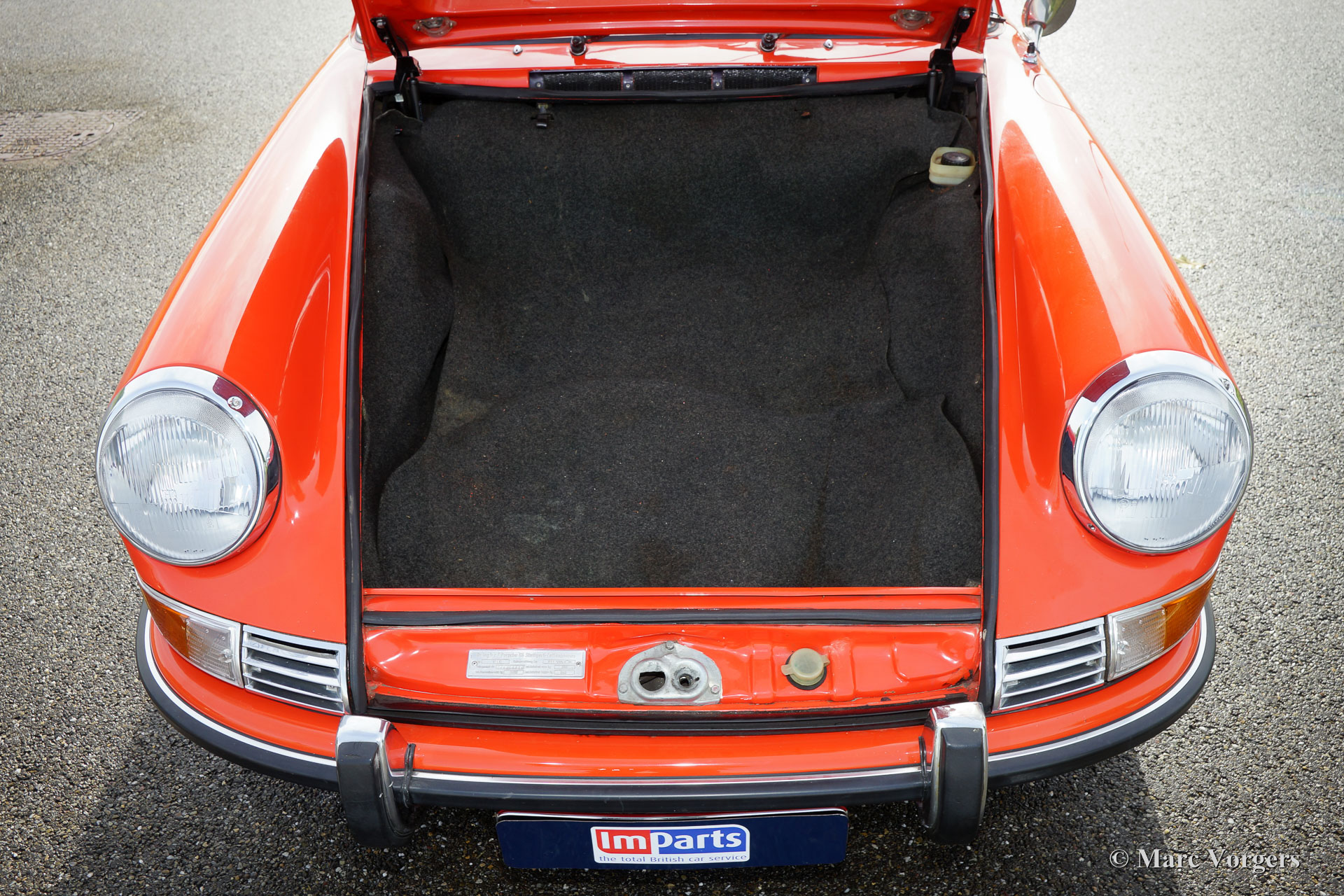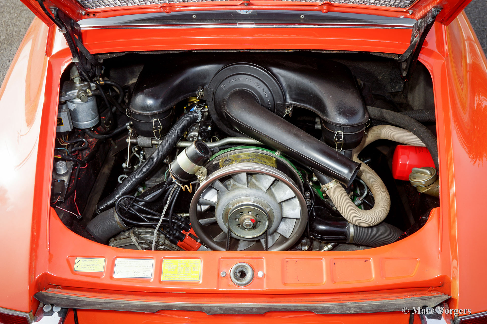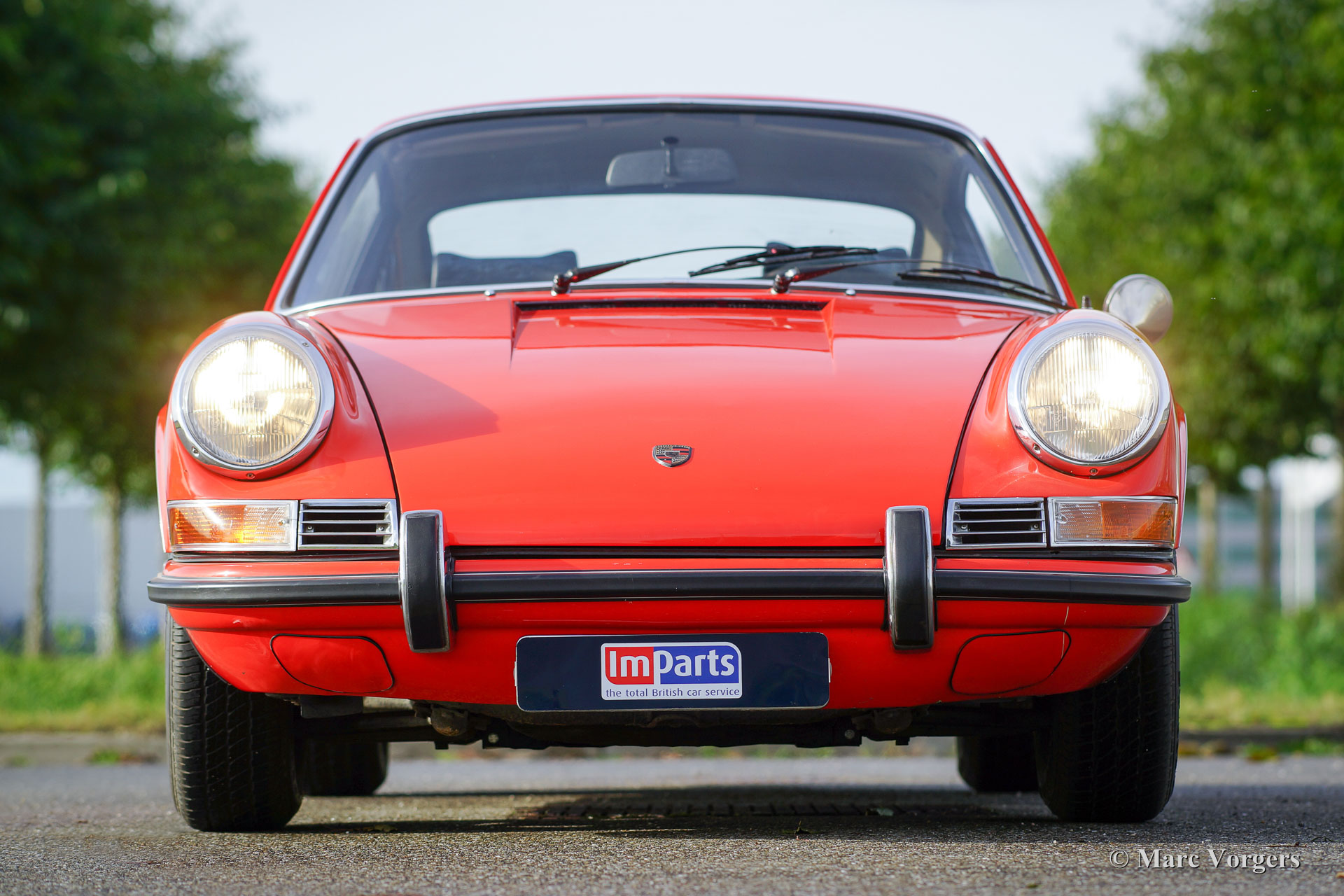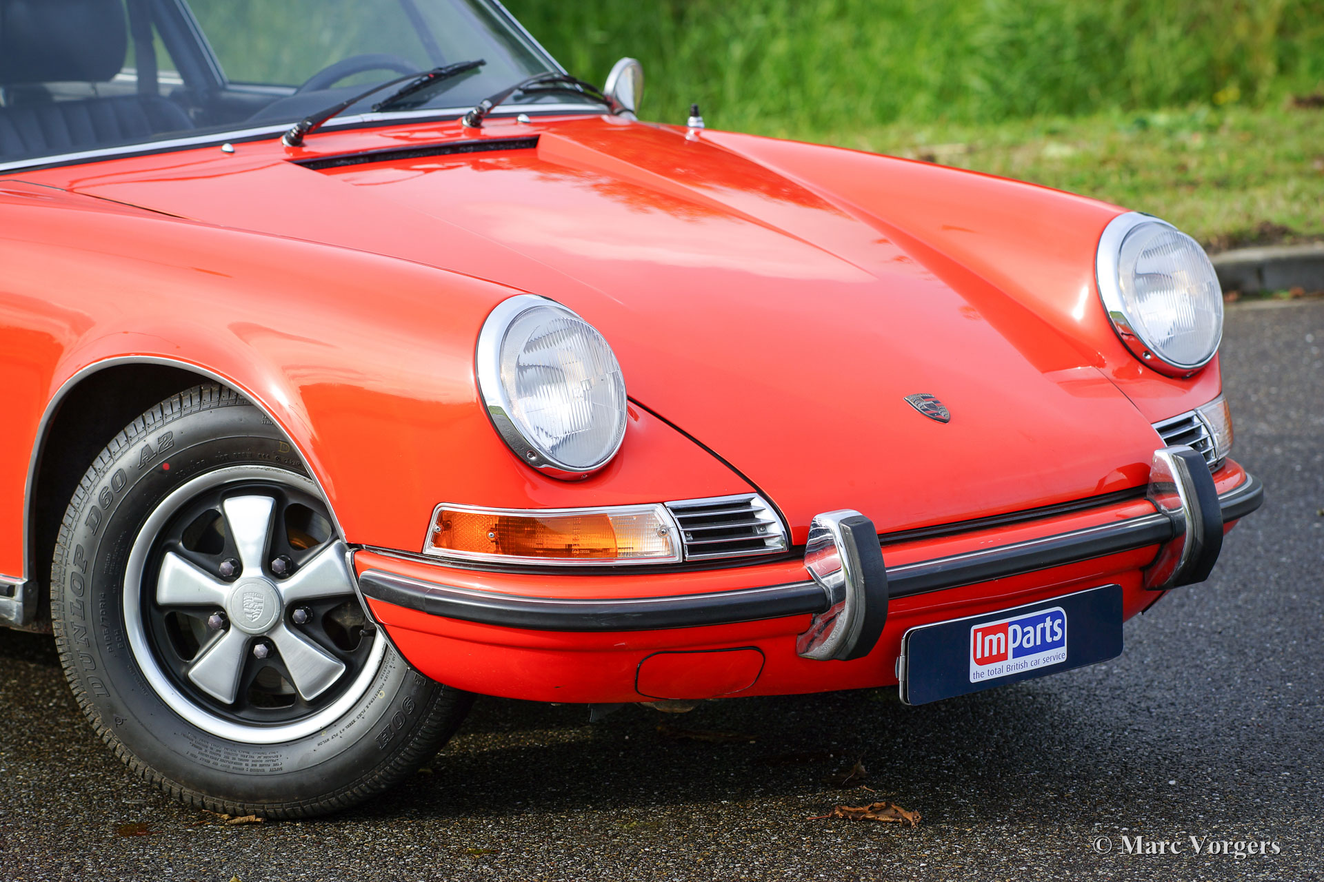 Porsche 911 E 2.0 coupe, year 1969. Matching numbers; chassis 1192009XX, engine 62922XX. Colour orange (Tangerine 6809) with a black leatherette interior. This magnificent Porsche 911 was imported from the USA a few years ago. The automobile is in very original and in very good condition! The engine and the injection pump have been overhauled by Dutch and German specialist firms. The car has driven approximately 500 km ever since. Furthermore; many parts were renewed like the brake hoses, shock dampers, body rubbers, windscreen, head lamps (now EU specification), and the interior carpet. Invoices and photos of the carried-out work are present. The 911 E is a rare 911 model which was only built in 1969. Only 1.968 coupe models left the Porsche factory.