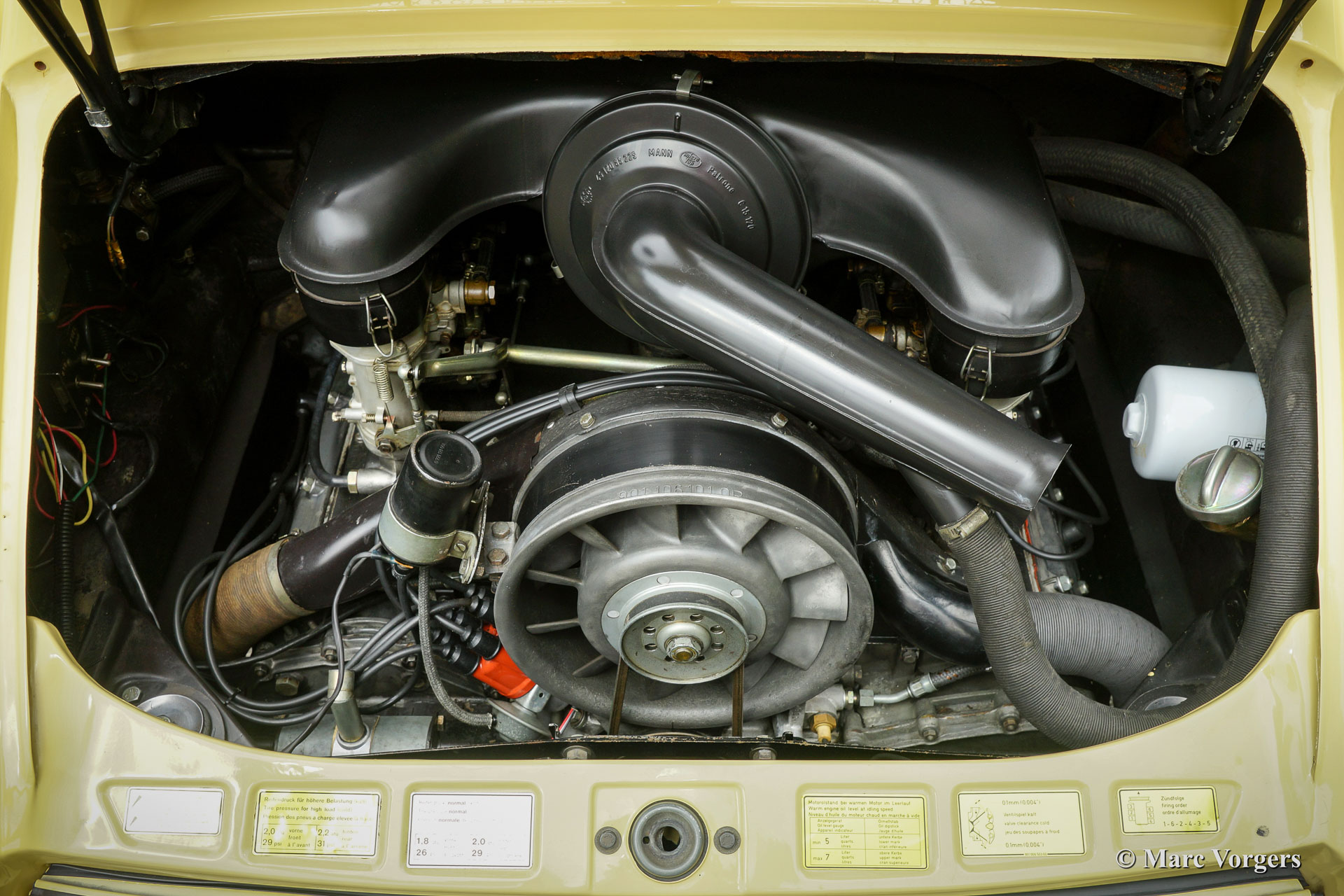 The Porsche 911 was designed with a steel unitary bodywork construction in which the engine was located behind the rear axle. The 911 engine is a air-cooled six cylinder "boxer" engine. The suspension of the Porsche 911 was independent from the start as was a five speed gearbox with floor shift.