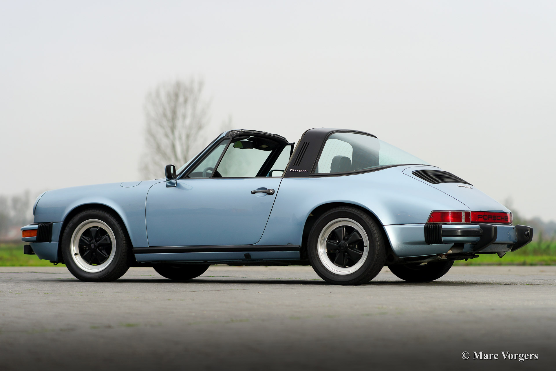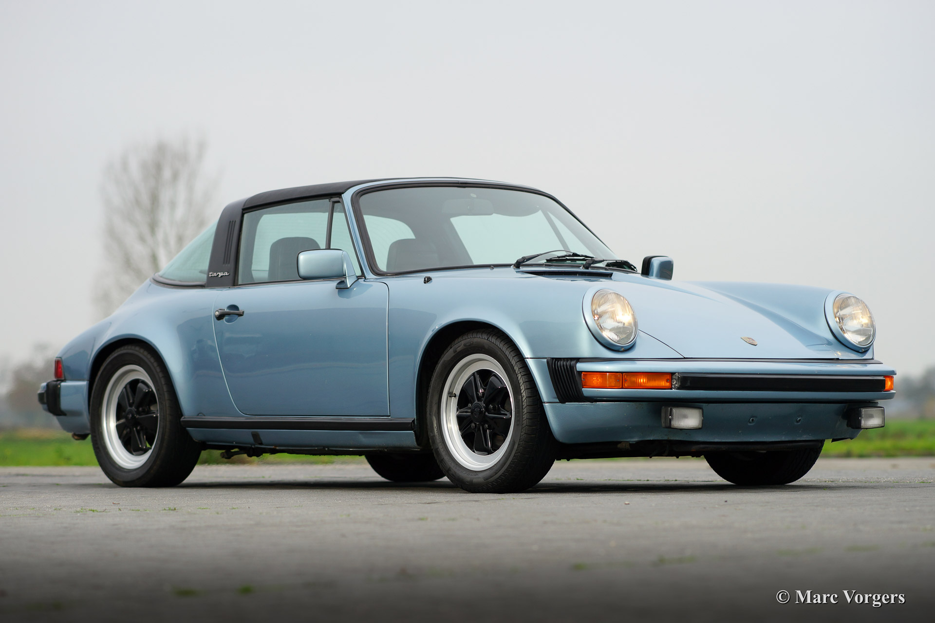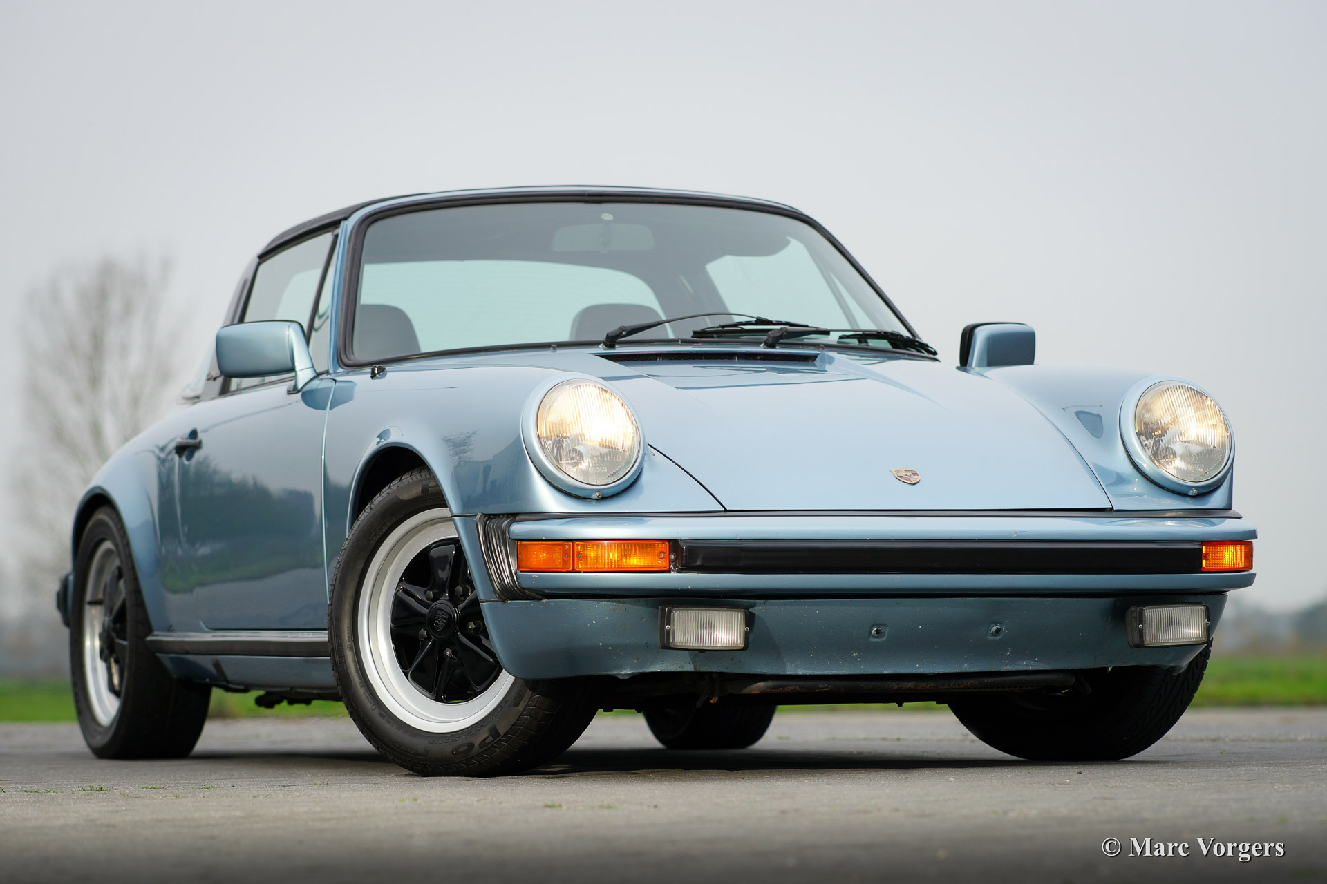 Porsche 911 SC 3.0 Targa, year 1980. Chassis number: *91A0 140538*, engine number: *6400568*. Body colour light blue metallic. Black leather interior and black carpet. This beautiful Porsche 911 SC Targa has been imported from the USA recently. The automobile is in very good original condition! For a Dutch buyer the car will be delivered with Dutch road registration and APK (Dutch MOT/TUV). The car shows beautiful original details and the original Fuchs wheels are in beautiful condition!