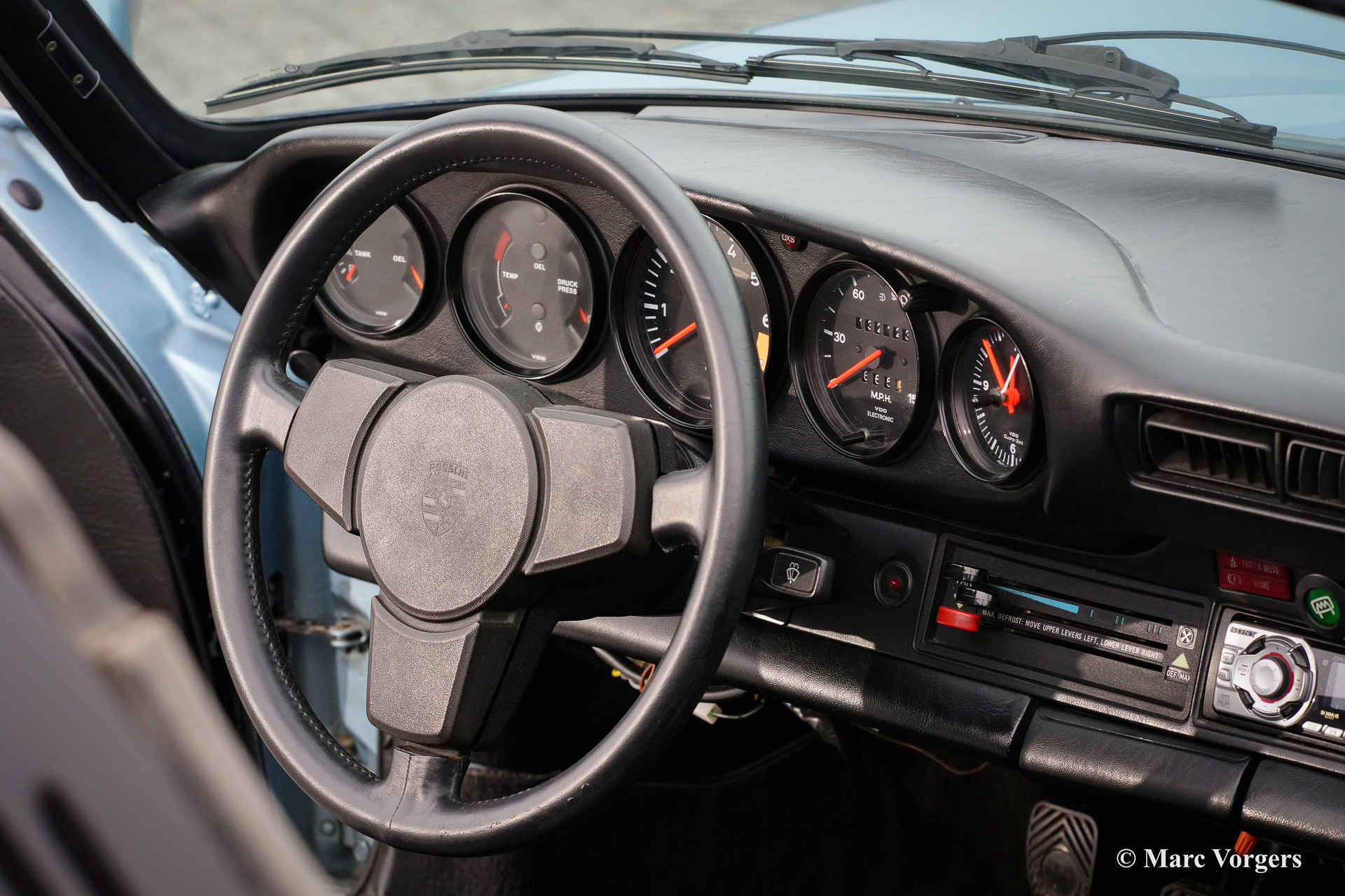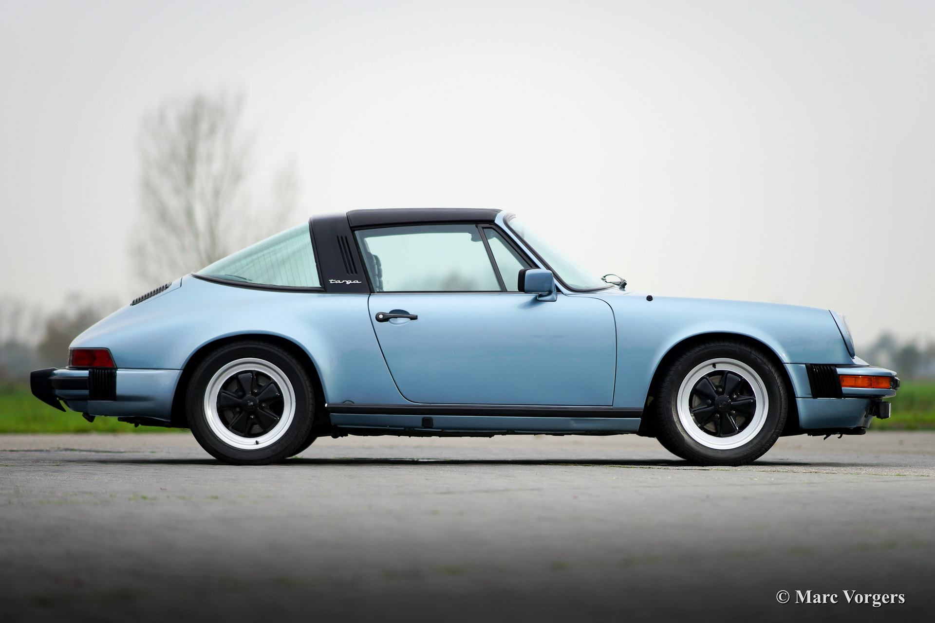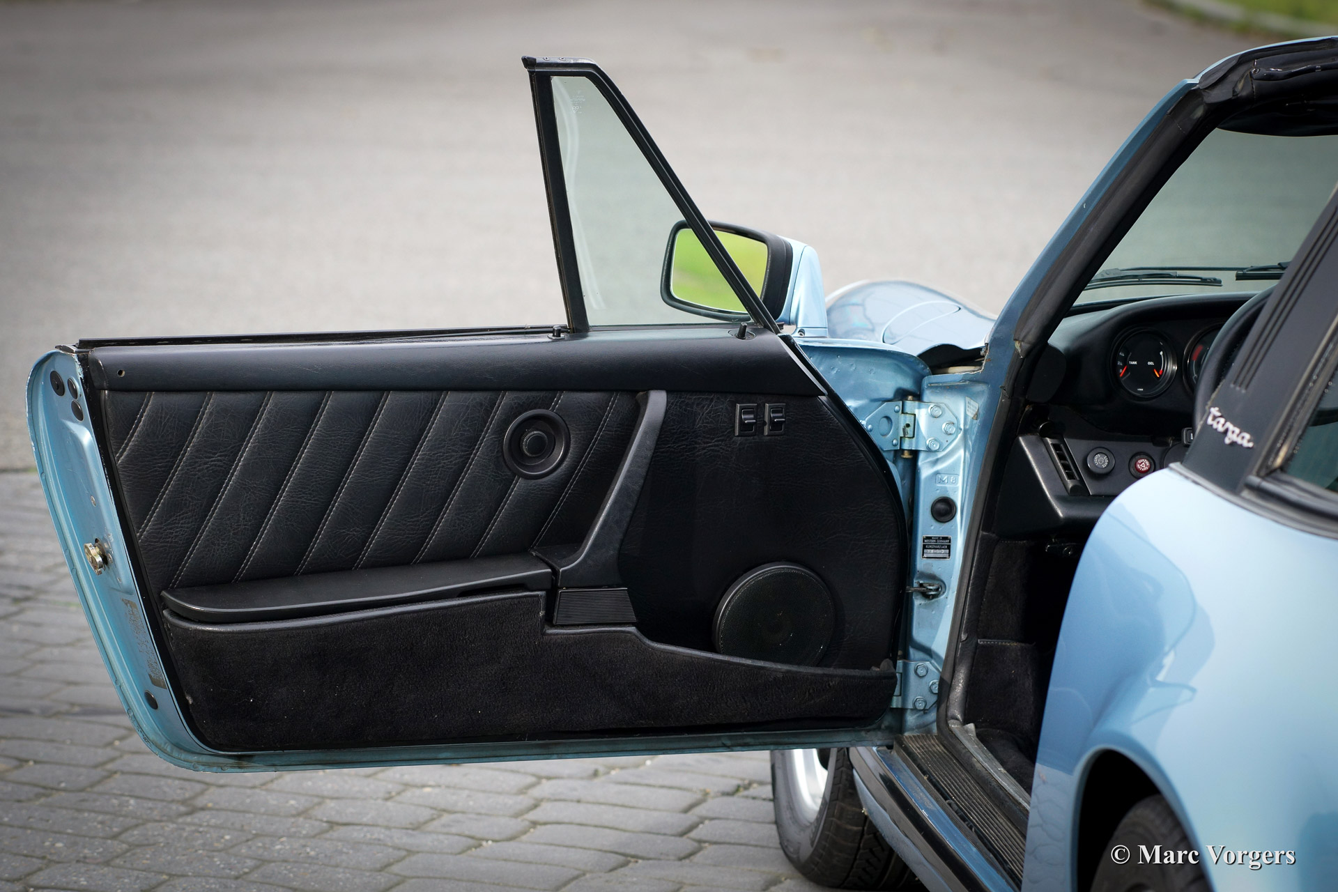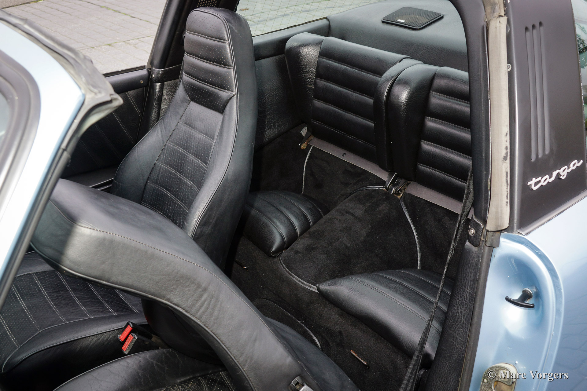 Porsche 911 SC 3.0 Targa, year 1980. Chassis number: *91A0 140538*, engine number: *6400568*. Body colour light blue metallic. Black leather interior and black carpet. This beautiful Porsche 911 SC Targa has been imported from the USA recently. The automobile is in very good original condition! For a Dutch buyer the car will be delivered with Dutch road registration and APK (Dutch MOT/TUV). The car shows beautiful original details and the original Fuchs wheels are in beautiful condition!