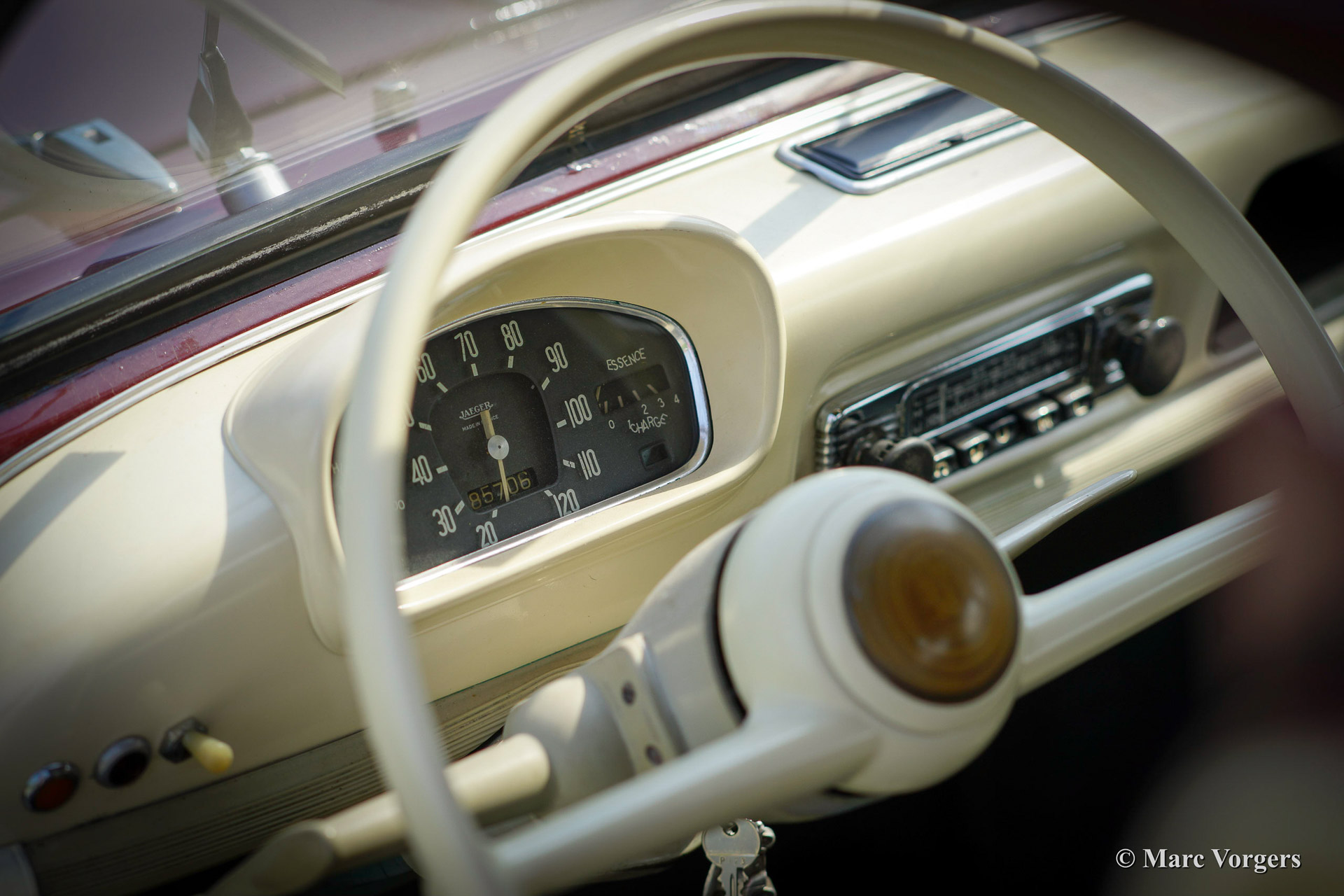 Renault 4 CV, year 1958. Colour Bordeaux red with a grey/crème vinyl interior. This delightful Renault 4 CV was restored with care for originality; all original details were retained. The automobile is in superb (excellent+) condition and the car drives perfect. This Renault comes with a fantastic original detachable roof rack and the car sports a beautiful classic radio!