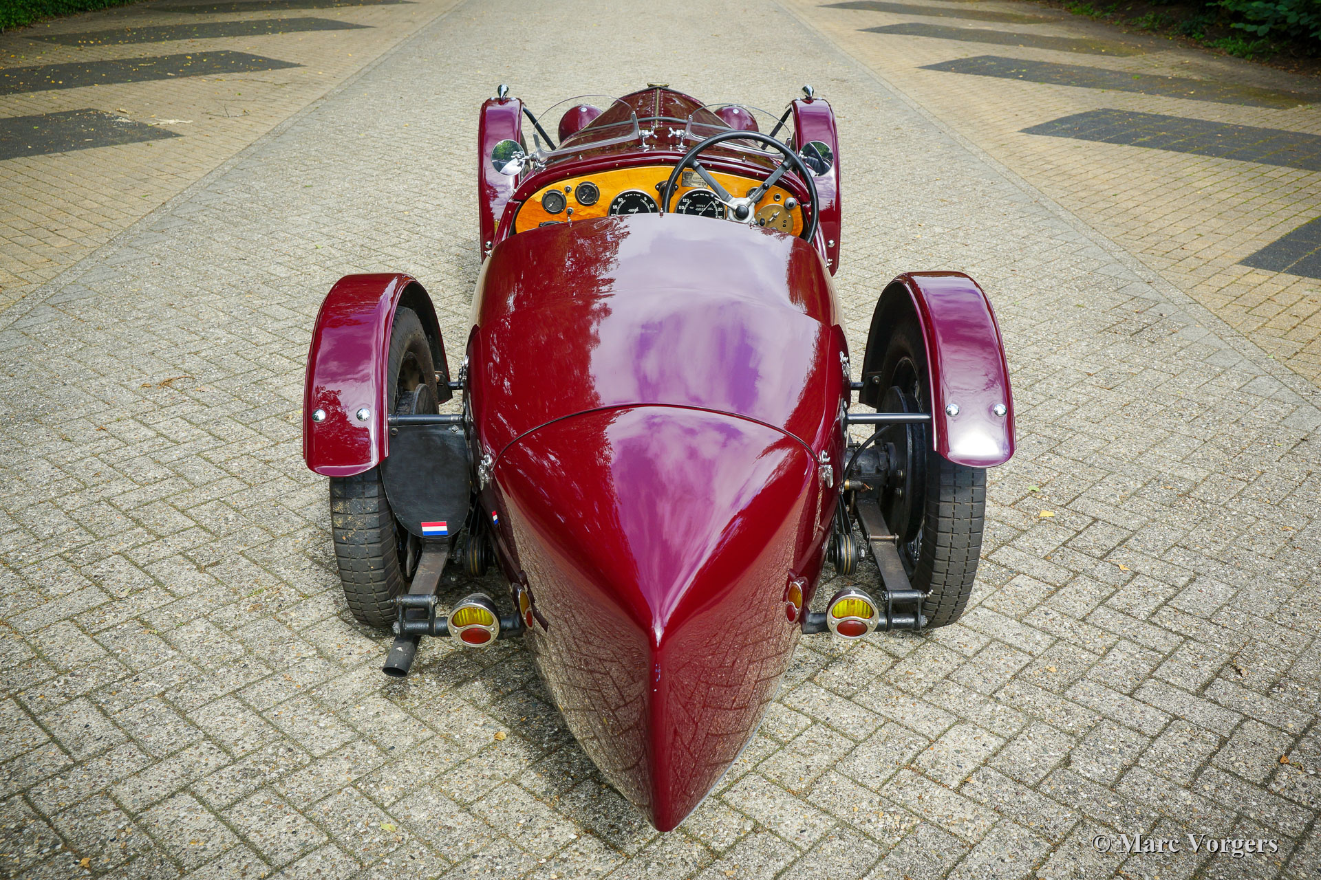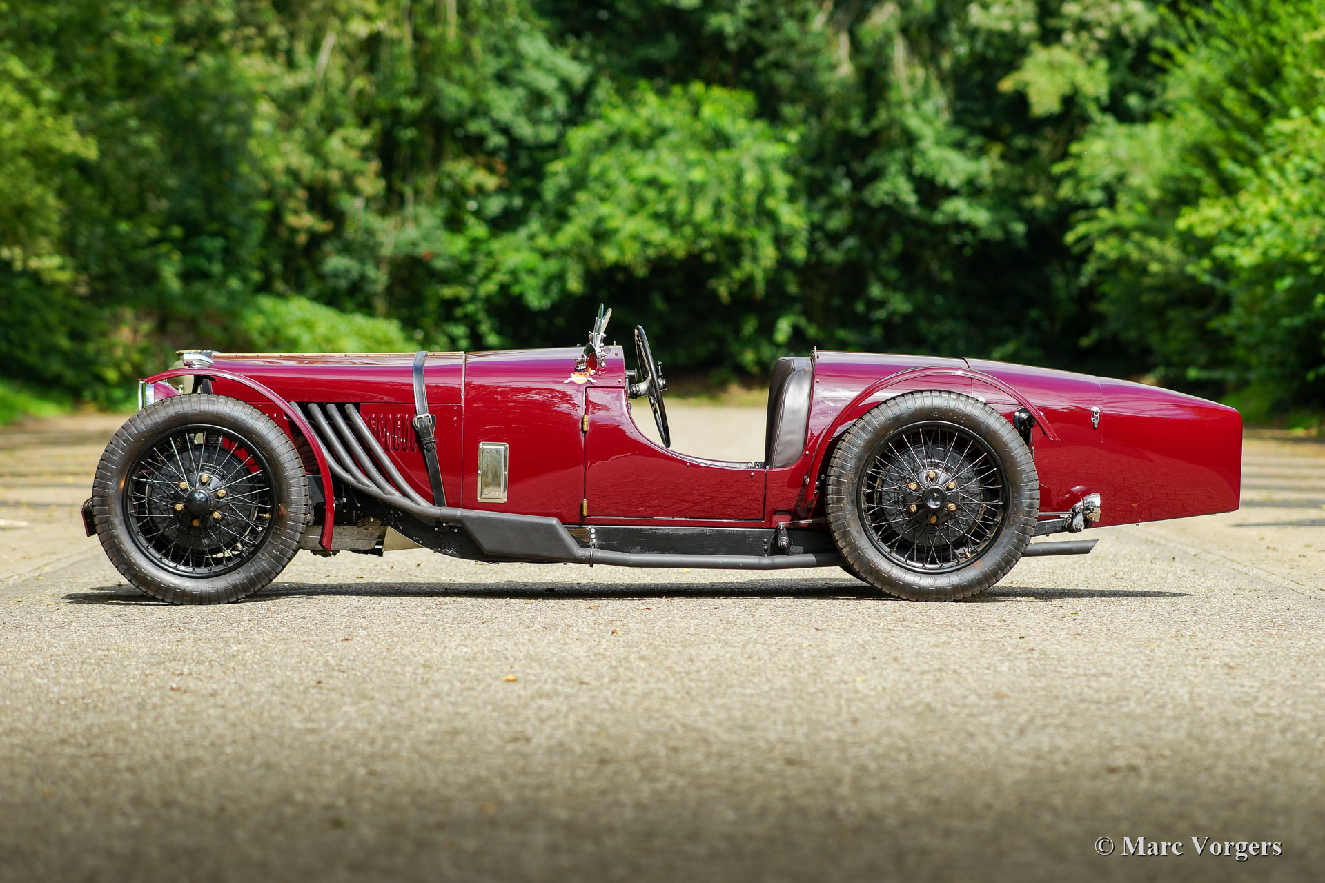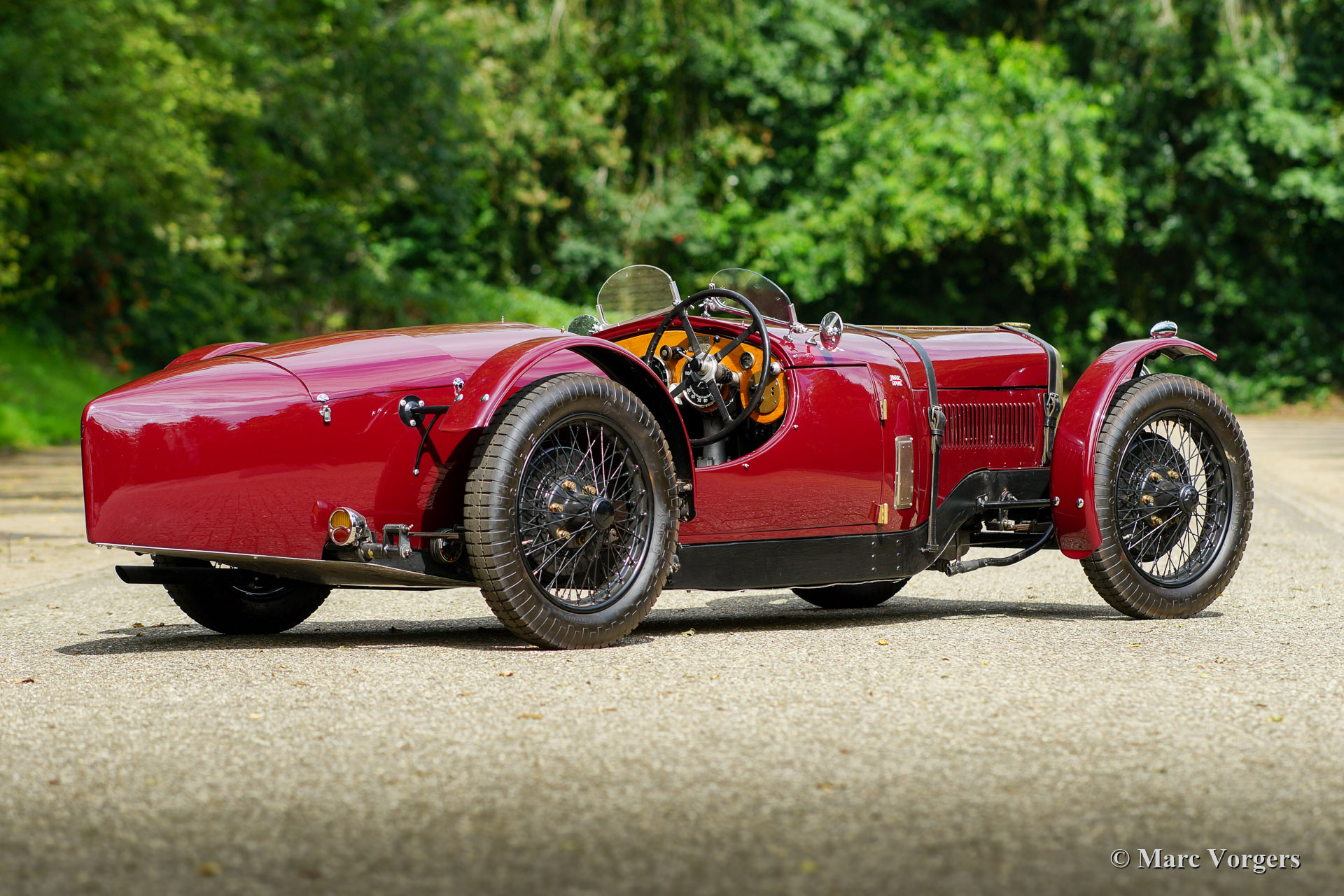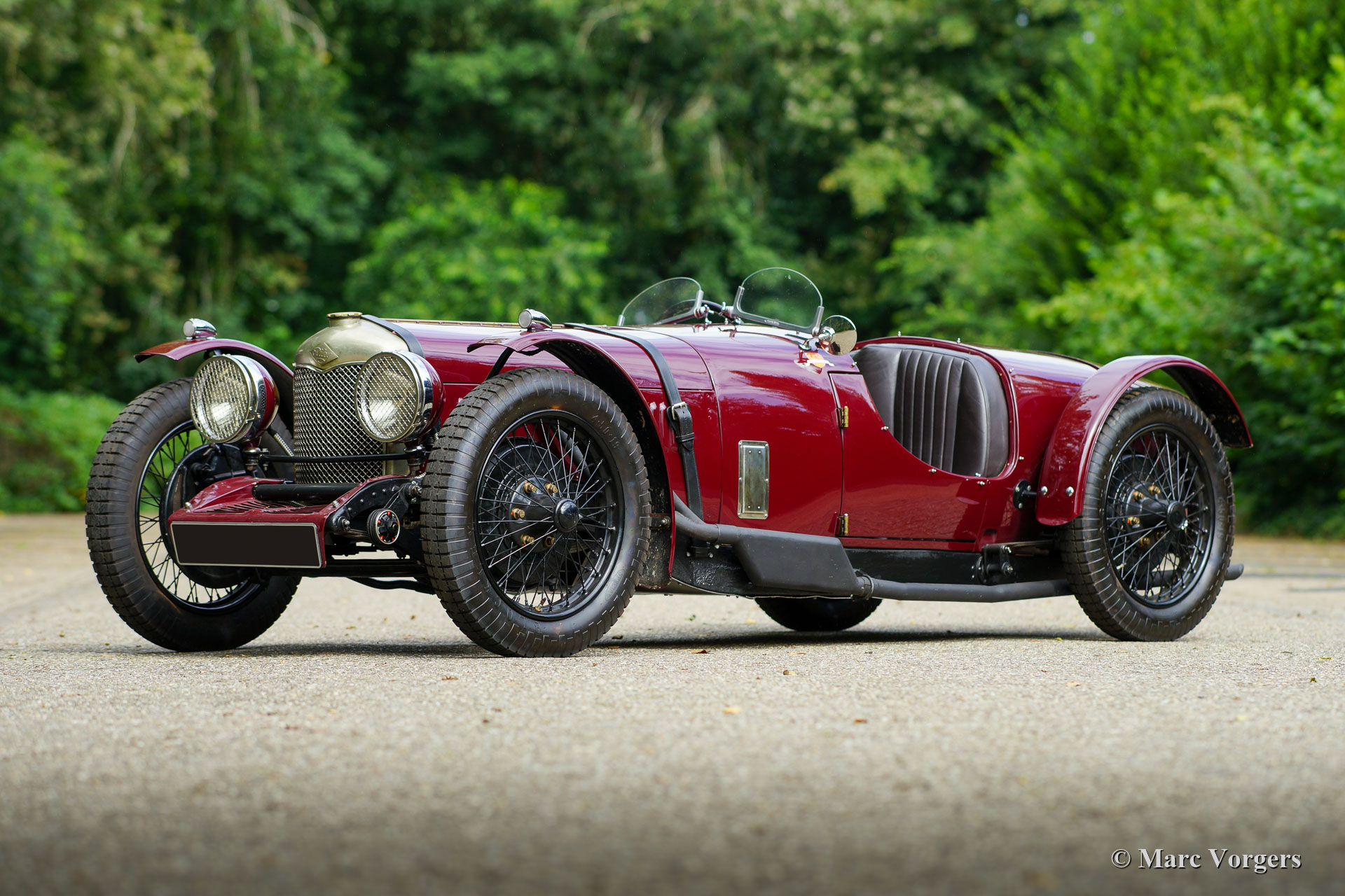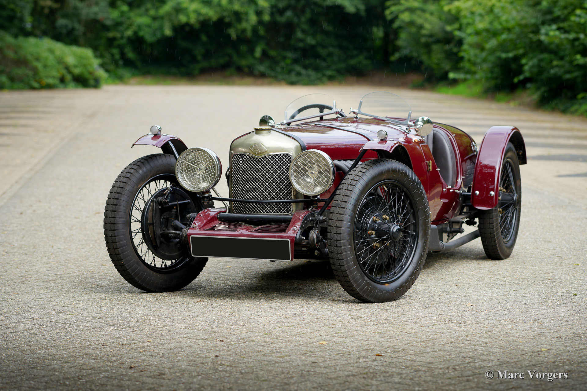 Riley 9 Monaco Brooklands Special, year 1933. Exterior colour dark red (maroon Amaranto). Interior upholstered with dark brown leather. This magnificent Riley ‘Nine’ Monaco was first registered on 31 March 1933. The car was sold new in the UK and left the factory gates with a saloon bodywork. In recent years the original Monaco chassis was given a wonderfully hand-crafted aluminium Brooklands Special bodywork by Ashridge in the UK. The bonnet, mudguards, and floor were made by Brooklands Bodycraft in the UK. The automobile was built up with all the original Monaco parts like all the Jaeger and Aric gauges, the Rotax starter panel, the steering wheel and all the mechanical parts. The automobile features the Riley 1089 cc four cylinder in-line engine which started the sporting successes of the marque. The “Nine” Monaco engine features inclined overhead valves, hemispherical combustion chambers, individual inlet, and exhaust ports to each cylinder, and two low mounted camshafts. The engine delivers 50 bhp at 6000 rpm. The engine is mated to the original 3-speed gearbox which was also fully overhauled and upgraded to fit perfectly with the new, very low, driving position. The original Riley 9 Monaco “Brooklands” racing car was designed by engineering legends Parry Thomas and Reid Railton at Thomson & Taylor engineering located inside the circumference of the Brooklands circuit. They built a very low-slung sports racing version of the 9 Monaco which was put into production by Riley in 1929. The car was baptised Riley 9 Monaco “Brooklands”. The fastest of the Monaco Brooklands models was raced by Freddie Dixon who lapped the Brooklands circuit at a whopping 113 mph. The presented Riley 9 Monaco Brooklands “Special” was built in the spirit of this legendary machine, The built was executed to a high level of perfection and the result is an ultra-low, sleek, purposeful, and impressive racer. This Riley 9 Monaco Brooklands Special is in an excellent condition, it comes with a custom-built trailer, and a massive file folder with history, photos, and a description of the build. A highly desirable vintage Riley special!