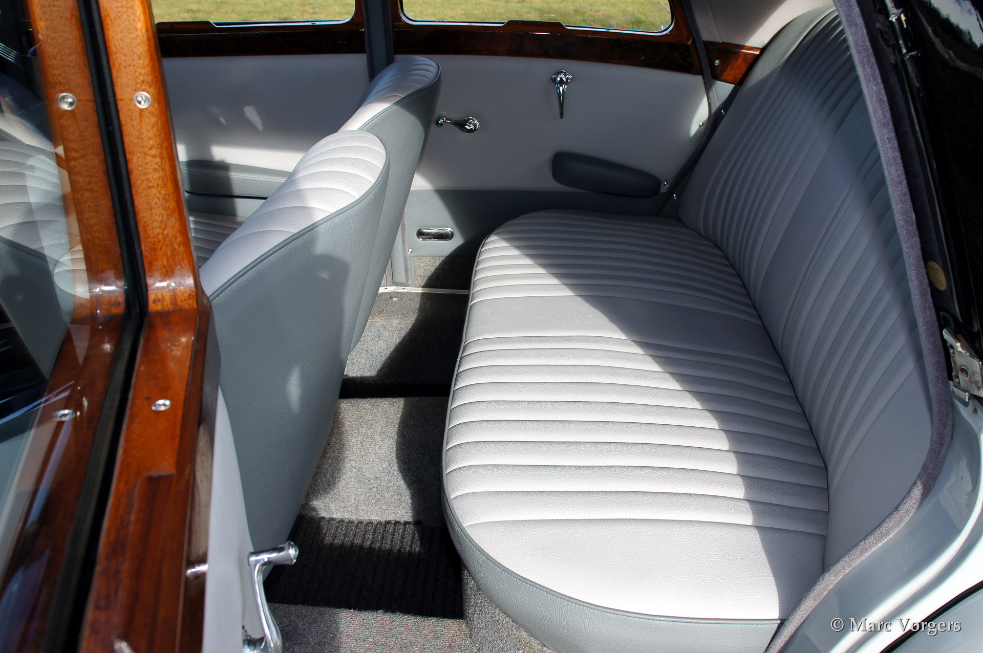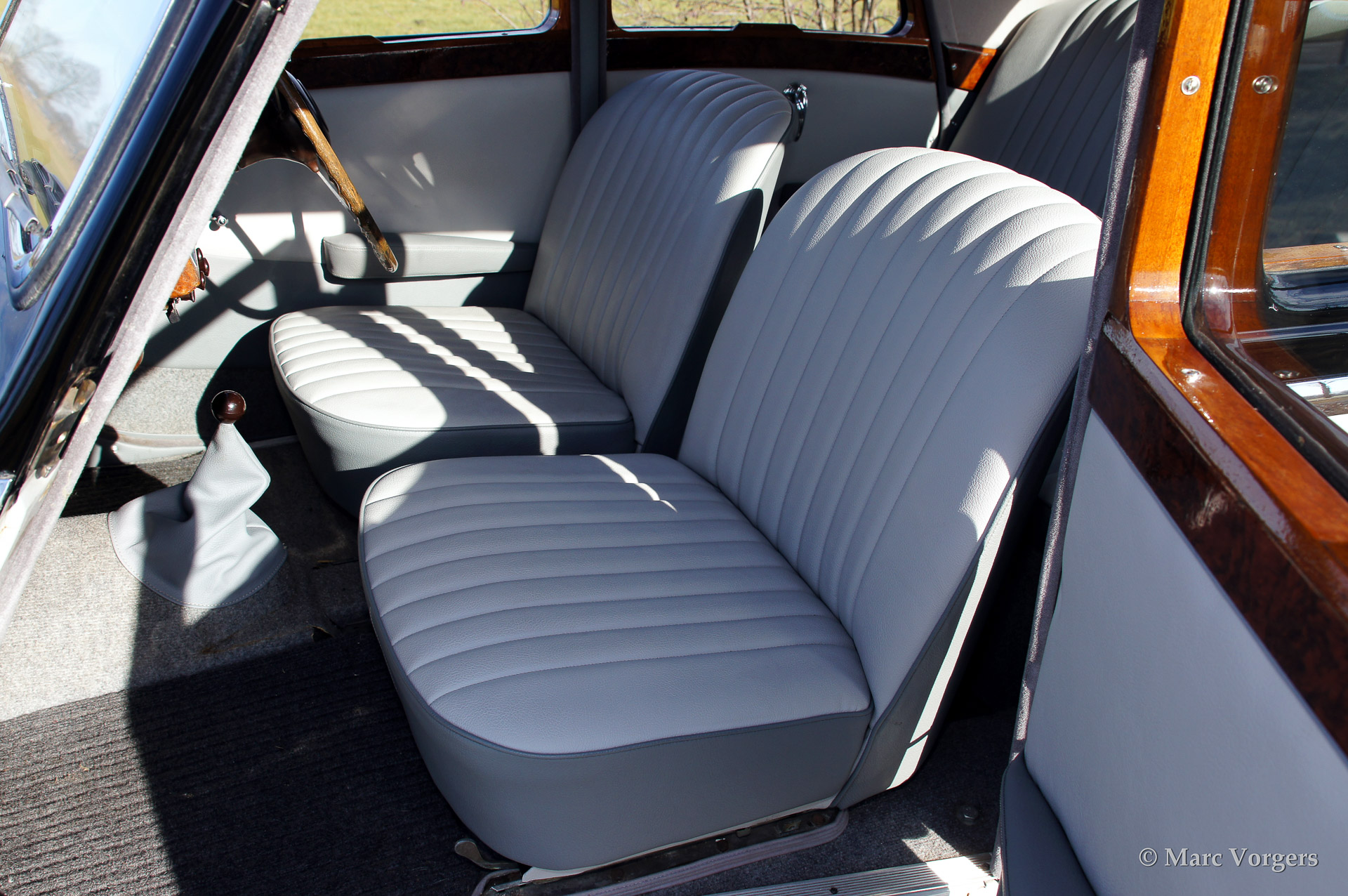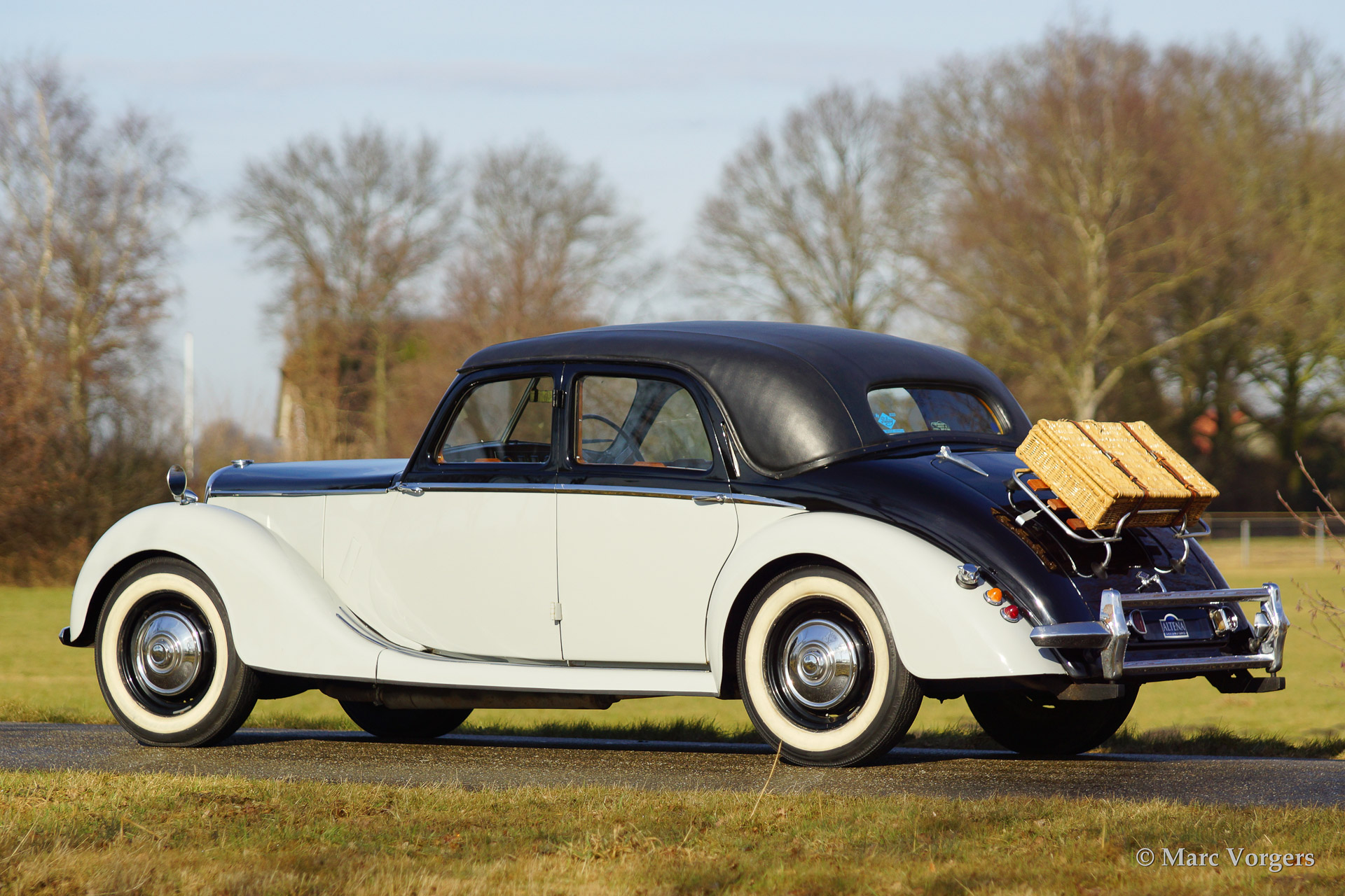 Riley RMA 1.5 Litre saloon, year 1952. Colour two-tone black over grey with a grey leather interior. This delightful Riley RMA is in very original condition! The automobile shows all original details. The RMA was the first post war Riley model. The RMA was built from 1945 until 1952, a total of 10.504 cars were produced.
