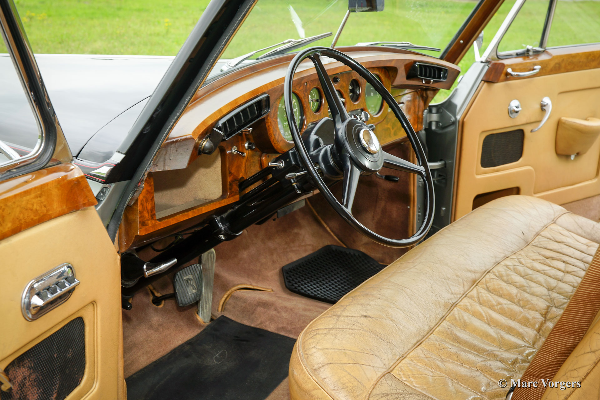 Rolls Royce Silver Cloud II, year 1961. Colour two tone black / silver metallic with a beige leather interior and beige carpet. This very stylish and beautiful Rolls Royce was largely restored in the past, the interior was retained as original. The automobile is in very good condition, the interior is in fair to good condition. The car features an automatic gearbox as is compulsory on Rolls Royce luxury saloons.