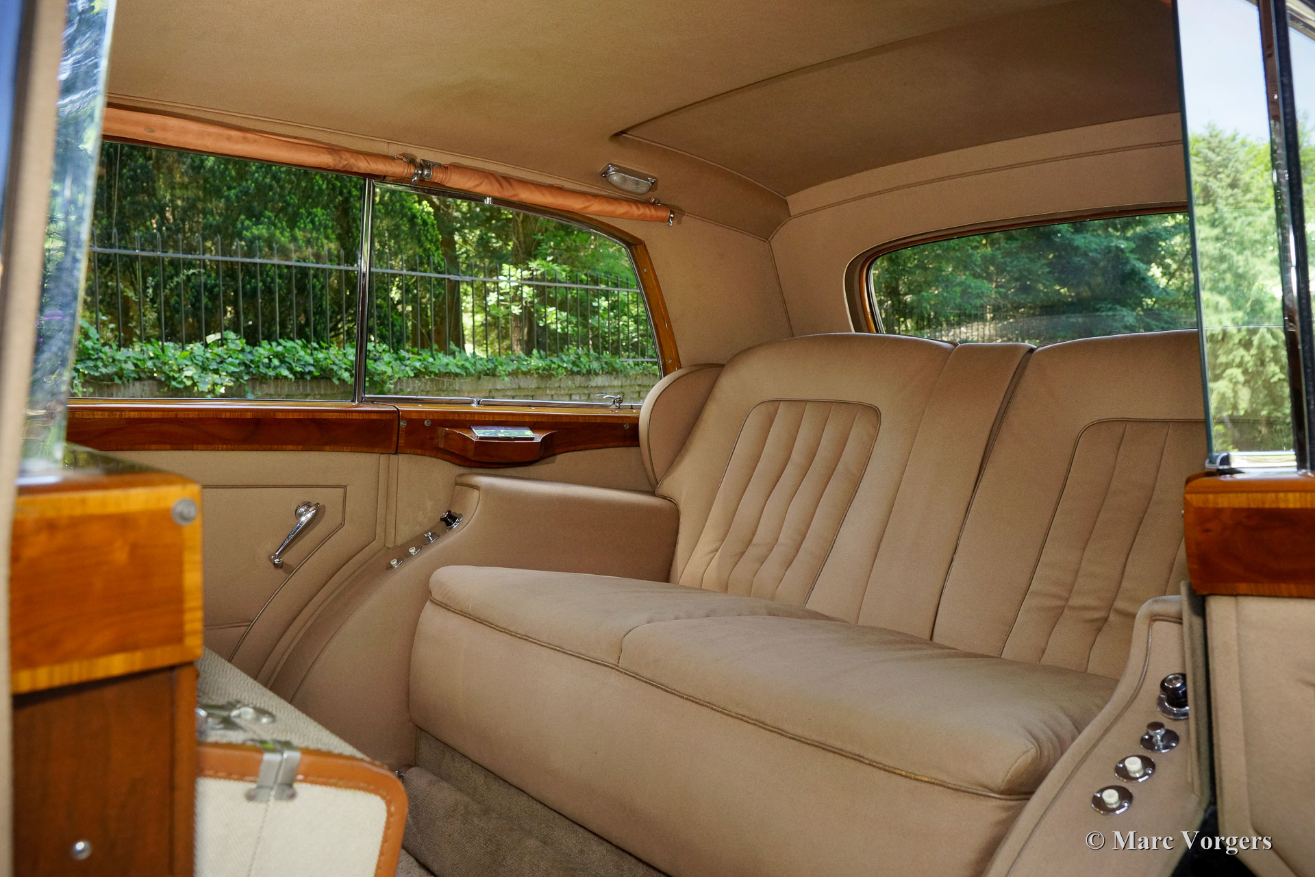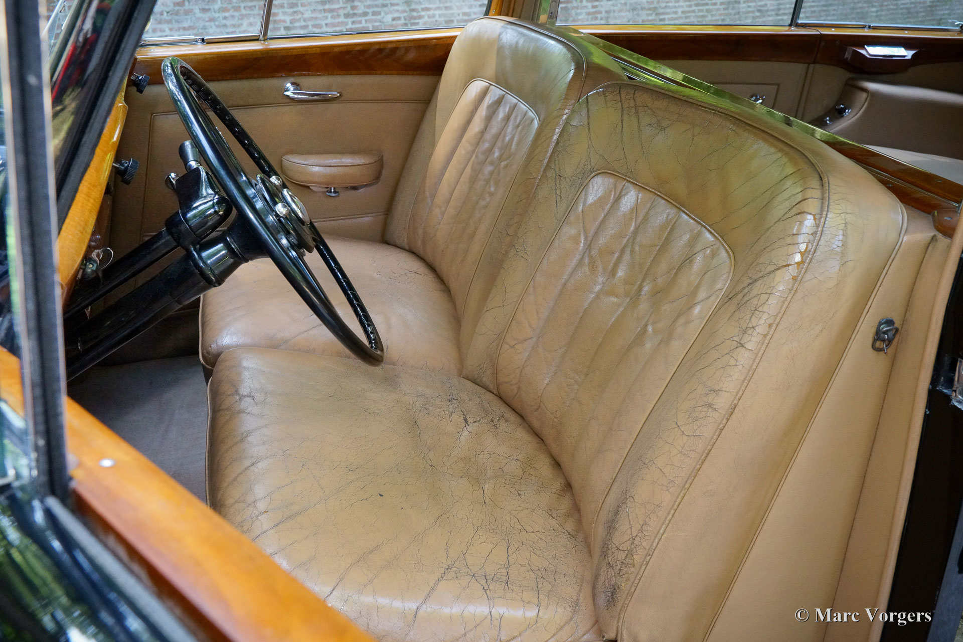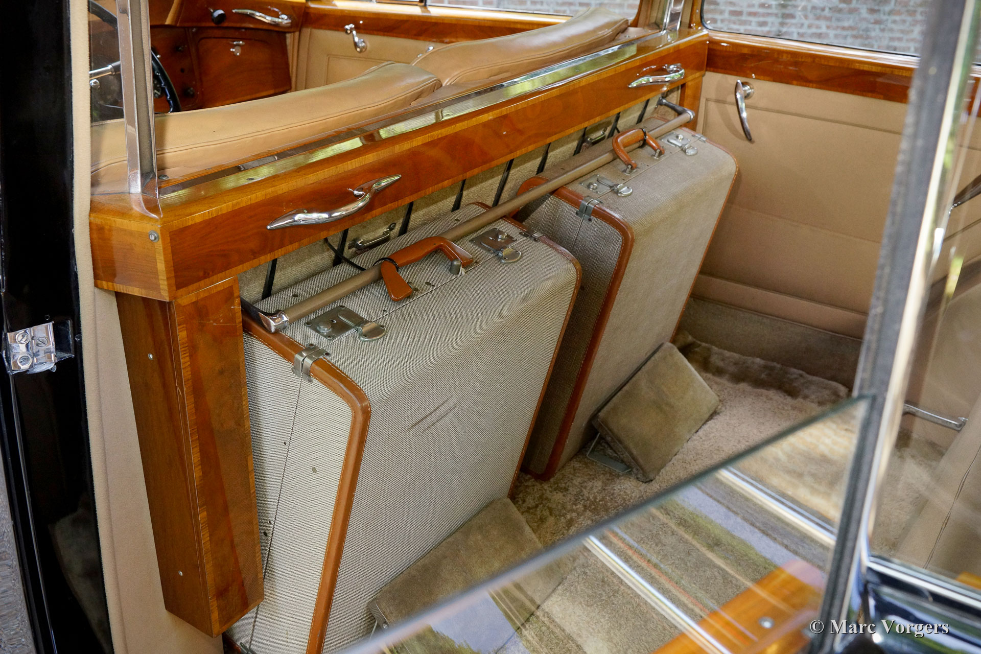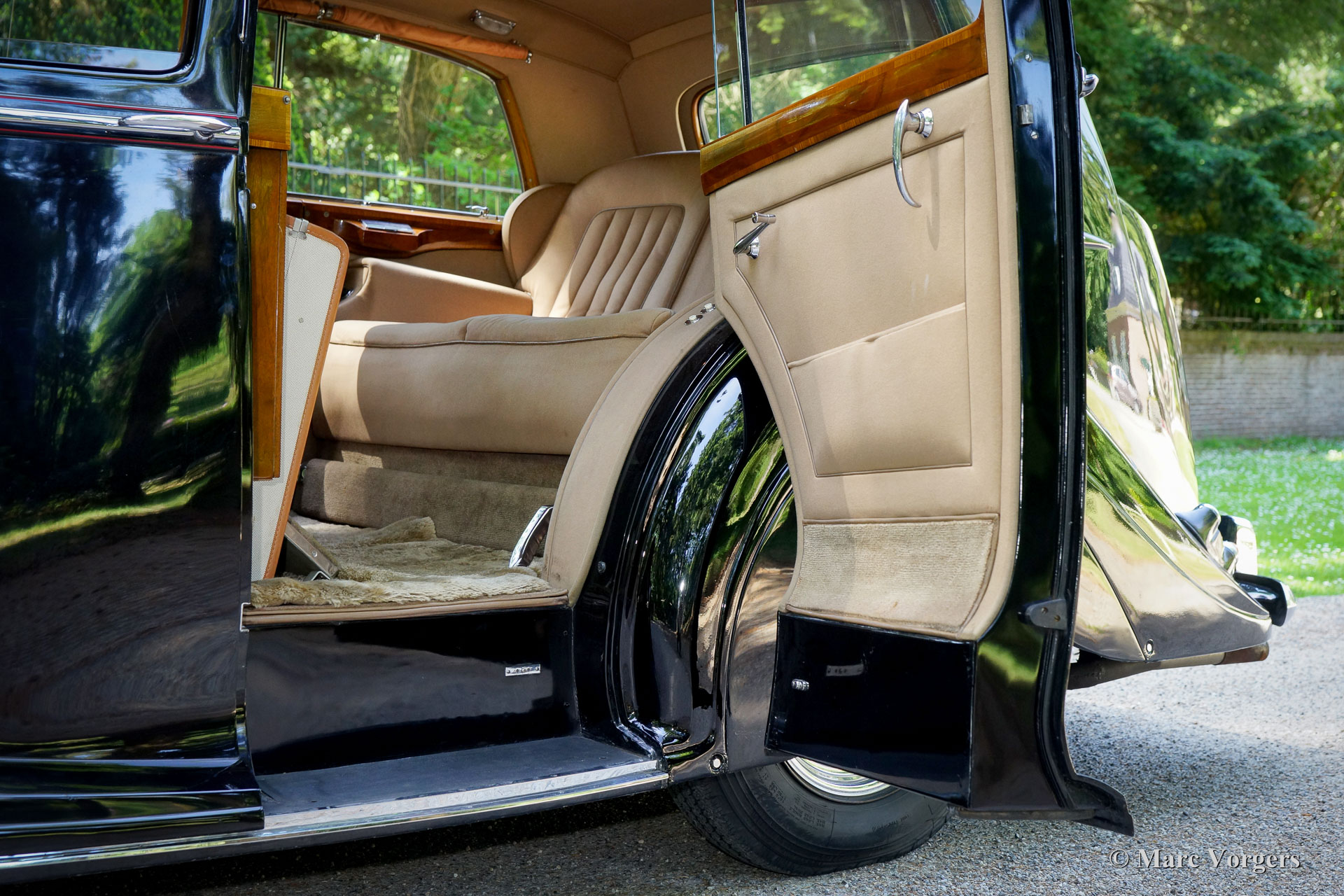 Rolls-Royce Silver Wraith, year 1952. Colour black. In the magnificent interior, the driver and co-driver are seated on beige leather seats. The ultra-luxurious passenger compartment features beige coloured soft cloth upholstery and deep wool carpet in a matching colour. This gorgeous and unique Rolls-Royce was sold new to an Italian Count and it has been in service of the family for many decades. A unique automobile with LHD steering and a very remarkable bodywork by Mulliner. This Rolls-Royce is in very good and in fully original condition: a magnificent time-machine! The driving experience in the front is one of sheer ease of control mastering this big machine. In the rear, the passengers are treated to sheer comfort in their own ‘cocoon’ featuring masterly seats, roll-up curtains, feet rests and much more. Their weekend travel suitcases are located neatly in front of their feet. The driver and passenger compartments can be divided with an electrically operated glass panel. The Rolls-Royce Silver Wraith is the last Rolls-Royce ‘chassis’ which was clad by body builders like Mulliner. This spacious limousine bodywork by Mulliner is a very impressive creation which offers the passengers a magnificent view on and over the countryside. This limousine must have been used for longer trans-European journeys; the car comes with a large original (detachable) roof rack and snow chains!