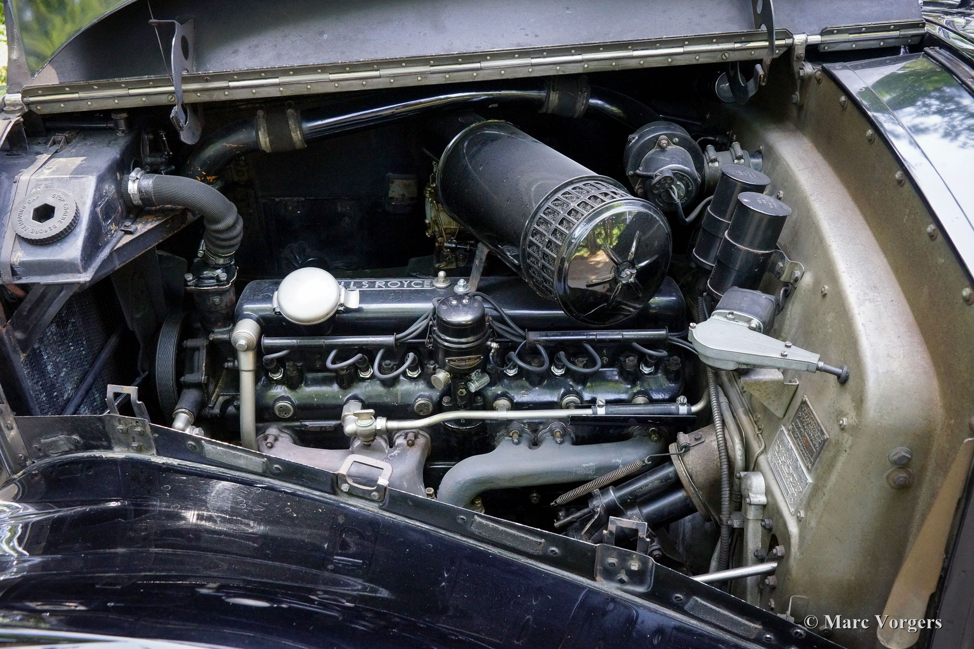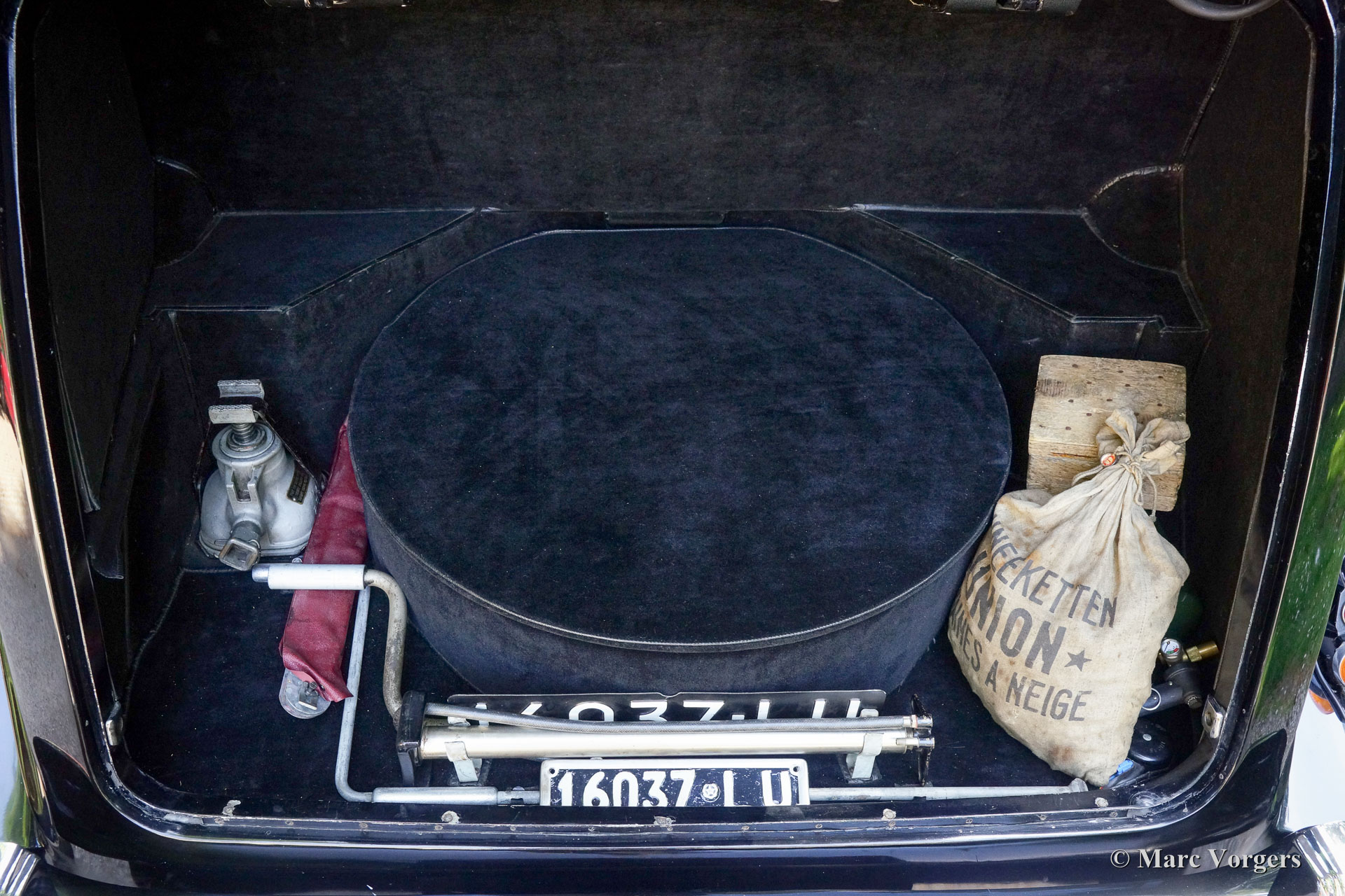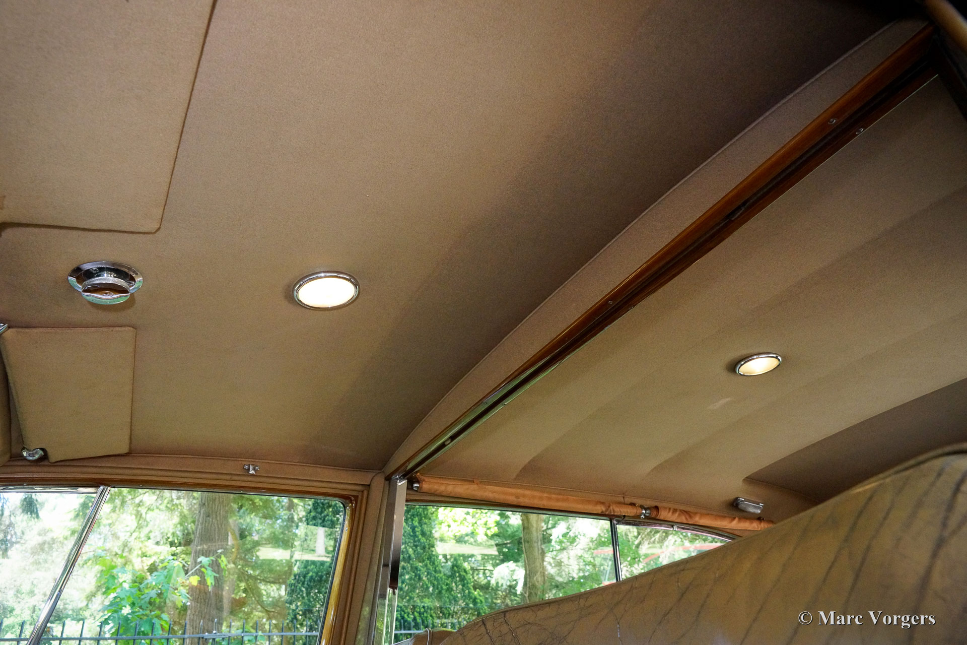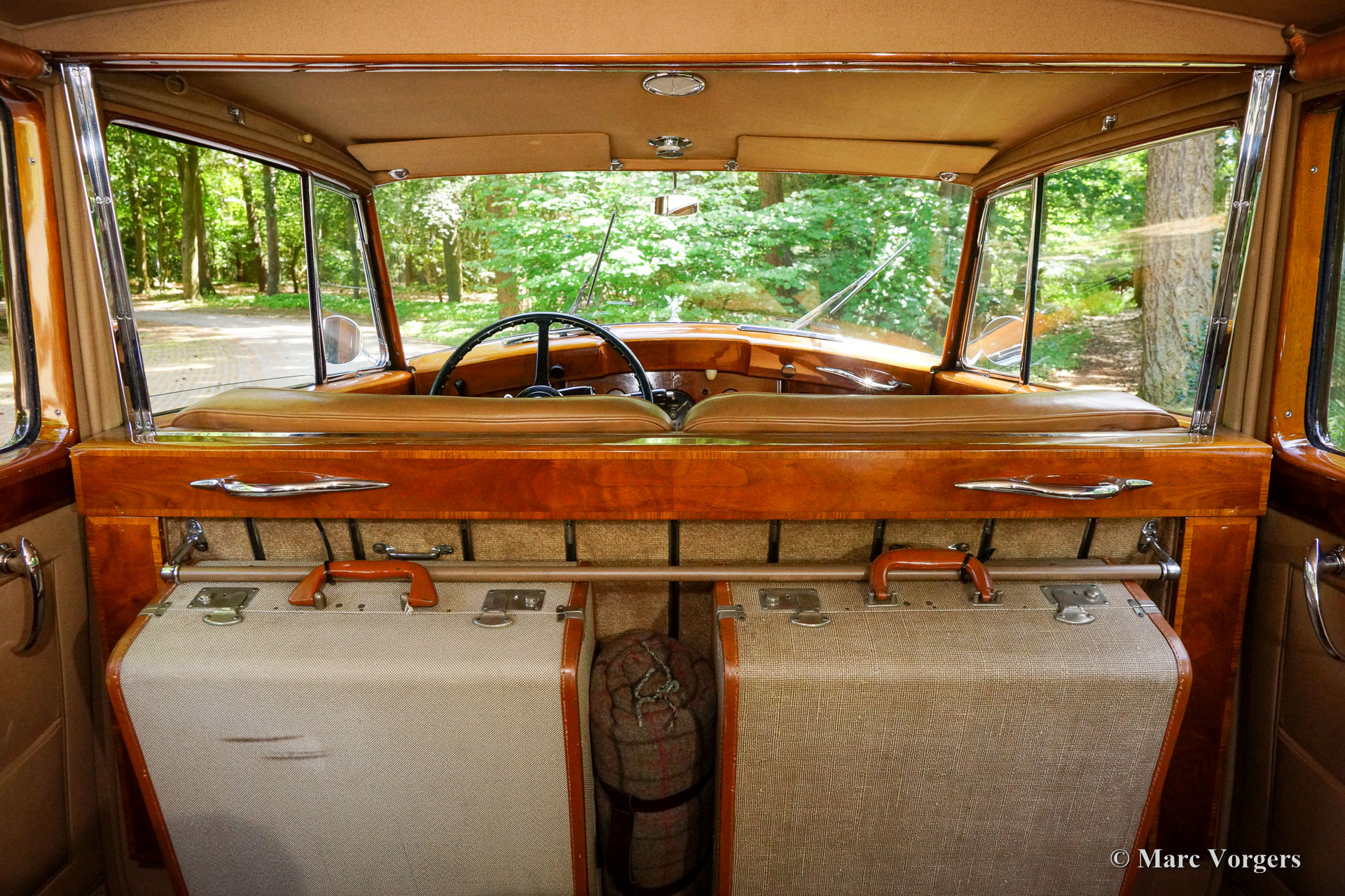 Rolls-Royce Silver Wraith, year 1952. Colour black. In the magnificent interior, the driver and co-driver are seated on beige leather seats. The ultra-luxurious passenger compartment features beige coloured soft cloth upholstery and deep wool carpet in a matching colour. This gorgeous and unique Rolls-Royce was sold new to an Italian Count and it has been in service of the family for many decades. A unique automobile with LHD steering and a very remarkable bodywork by Mulliner. This Rolls-Royce is in very good and in fully original condition: a magnificent time-machine! The driving experience in the front is one of sheer ease of control mastering this big machine. In the rear, the passengers are treated to sheer comfort in their own ‘cocoon’ featuring masterly seats, roll-up curtains, feet rests and much more. Their weekend travel suitcases are located neatly in front of their feet. The driver and passenger compartments can be divided with an electrically operated glass panel. The Rolls-Royce Silver Wraith is the last Rolls-Royce ‘chassis’ which was clad by body builders like Mulliner. This spacious limousine bodywork by Mulliner is a very impressive creation which offers the passengers a magnificent view on and over the countryside. This limousine must have been used for longer trans-European journeys; the car comes with a large original (detachable) roof rack and snow chains!
