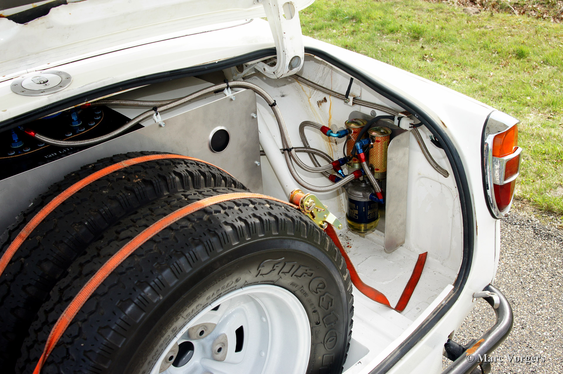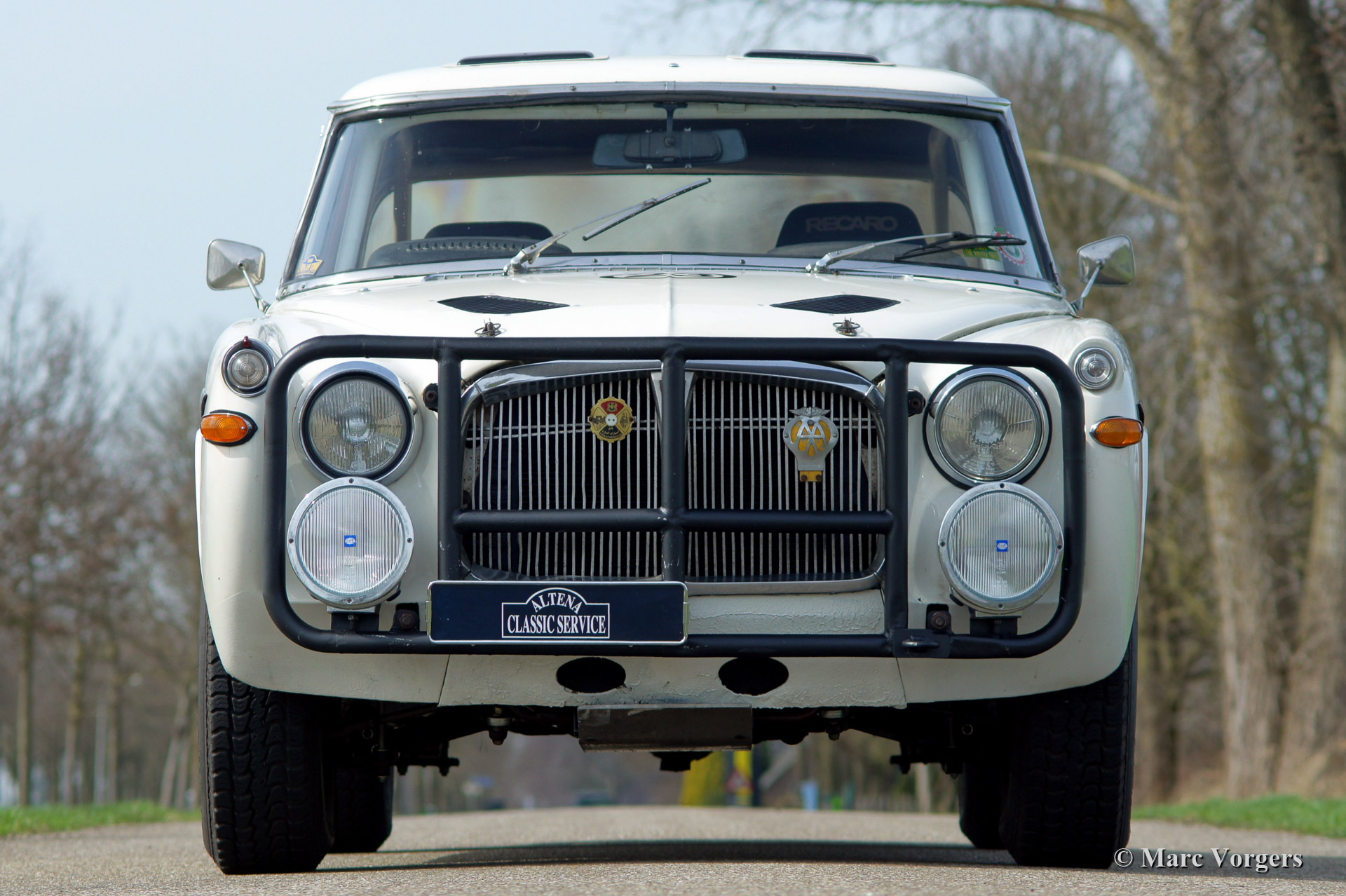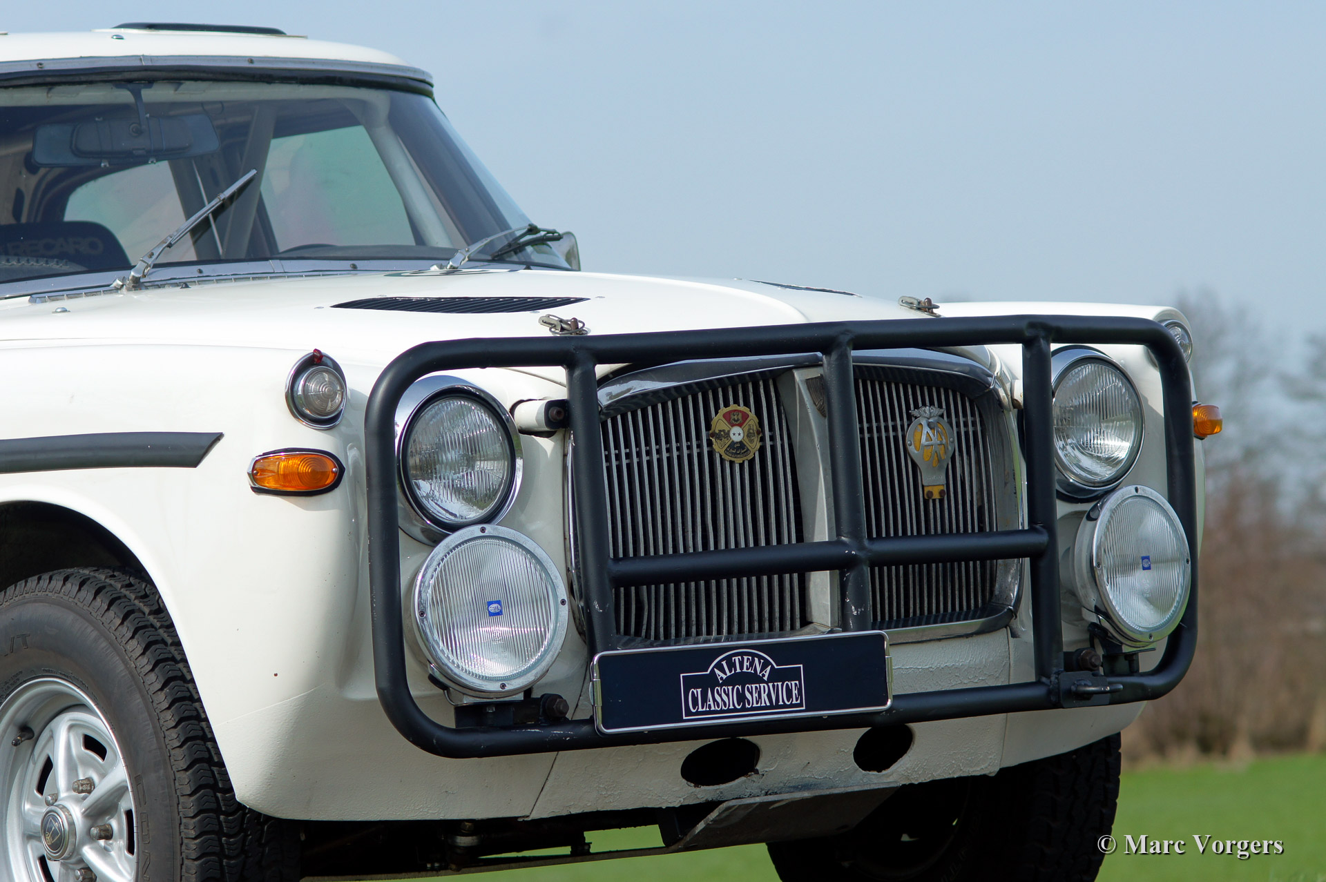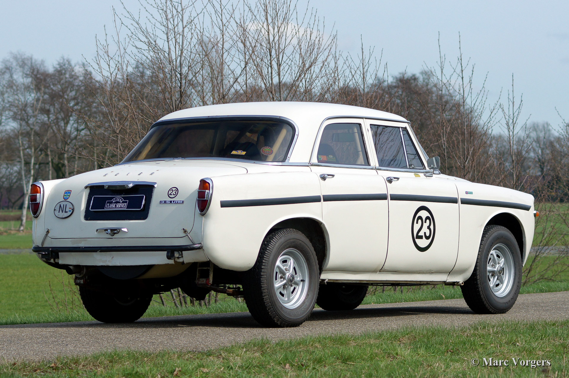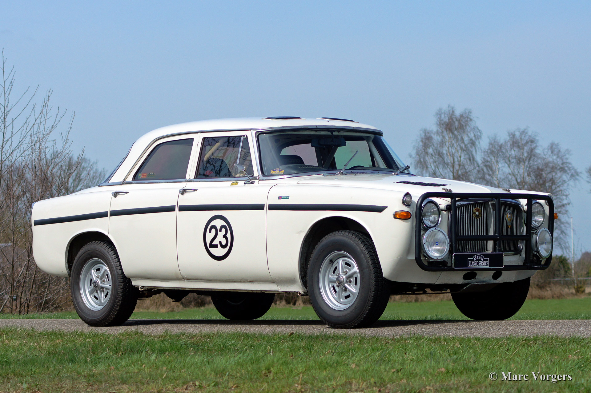 Rover P5B 3500 V8 rally car, year 1968. Colour white with a black rally interior. This car was specially build for the 1993 London to Sydney trail. The car is a Rover P5B Mark 3 from the year 1968, fitted with a Rover 3.5 liter V8 engine and 5-speed manual gearbox. The automobile is fitted with a full CRMO roll cage and protected engine compartment, 120 Litre fuel tank, Koni shock dampers, heavy duty spring leaves and large AP295 brakes. A new Quaife LSD differential and wiring loom are fitted. In the interior two Recaro sports seats are fitted, 4-point safety harnesses, a mechanical Tripmaster and a hydraulic handbrake. All fuel lines, wiring and brake lines are mounted through the interior. For extra safety the chassis was reinforced, front- and rear bars are fitted. The car competed and finished in many events like: 1993 London - Sydney, 1996 The London - Cape Town, 1998 The Inca Trail (South America), 2003 The Winter Trail.