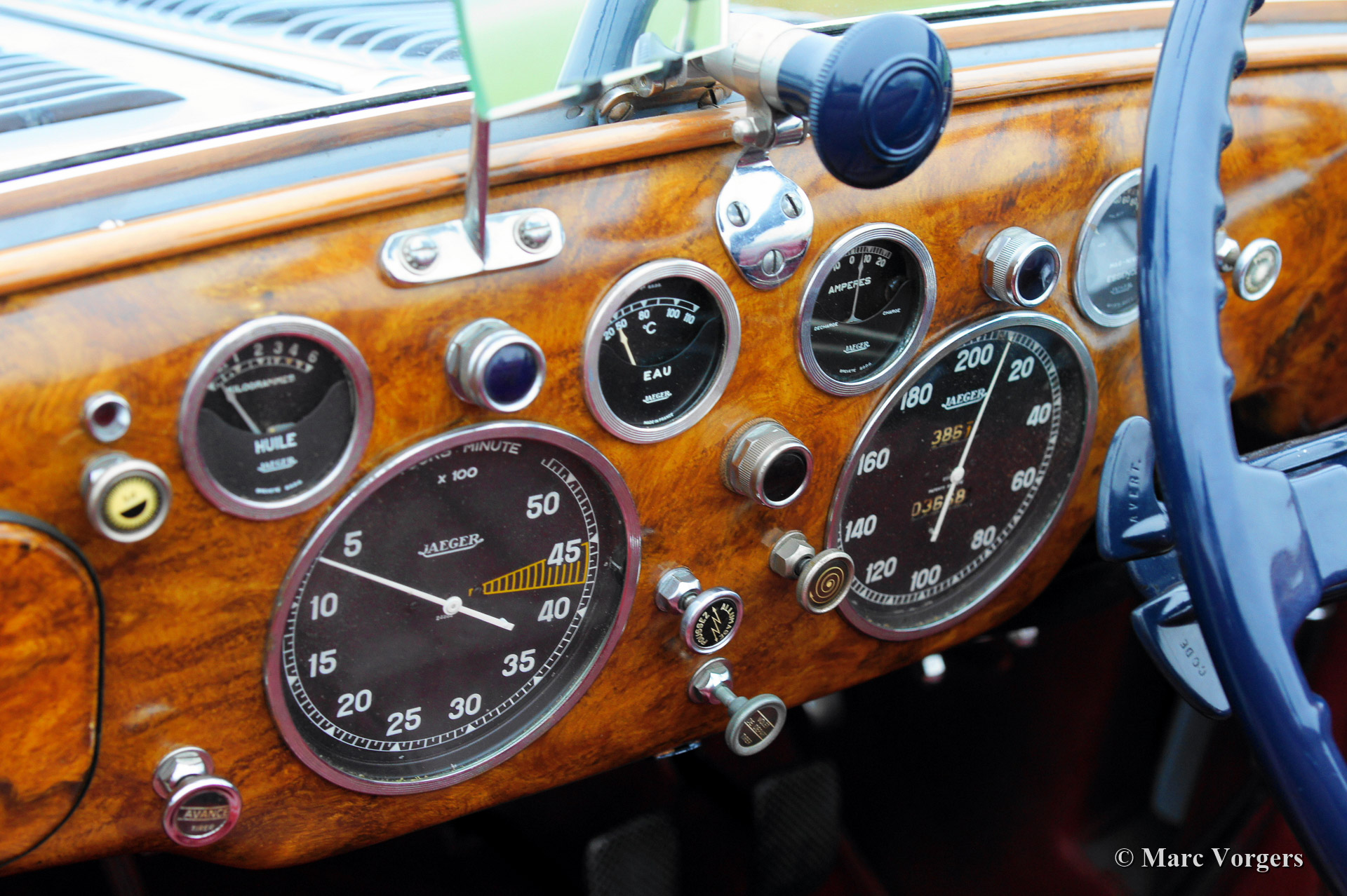 Talbot Lago T23 cabriolet, year 1938. Bodywork design by Figoni and built by Talbot Lago. Colour light blue over dark blue, dark red leather interior and a dark blue convertible hood. This extremely beautiful and scarce Talbot Lago T23 was frame off restored by a specialist over a period of twenty years. It is said that this car was delivered to the renowned French Grand Prix driver Louis Rosier in the year 1938.