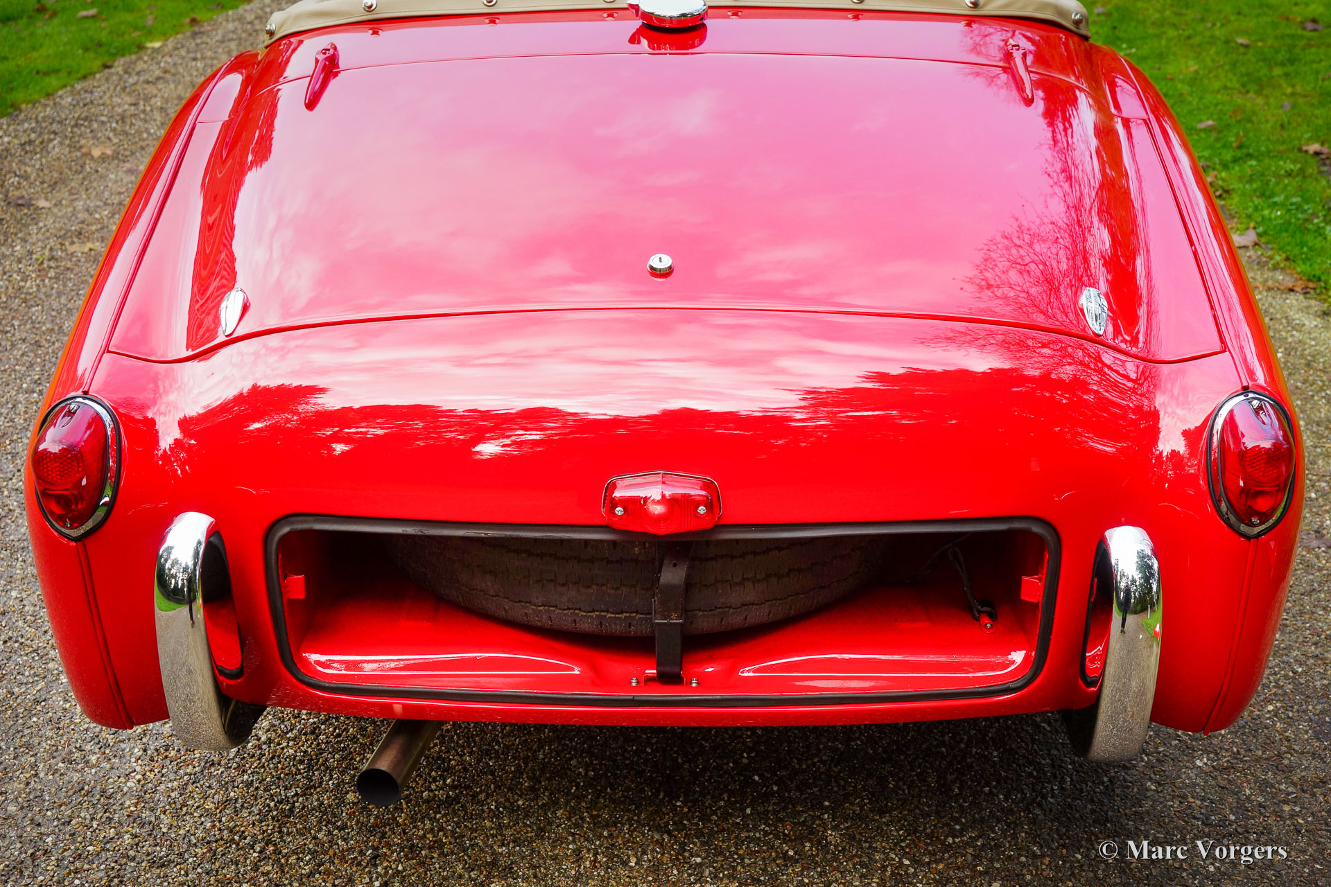 The Triumph TR 2 is a no nonsense sports car; very robust, simple and reliable, a true British sports car all over. The engine was a Standard Vanguard based, cast-iron, long stroke, in-line four cylinder with a displacement of 1991cc. The engine was equipped with two S.U. carburettors giving a power-output of almost 100 bhp.