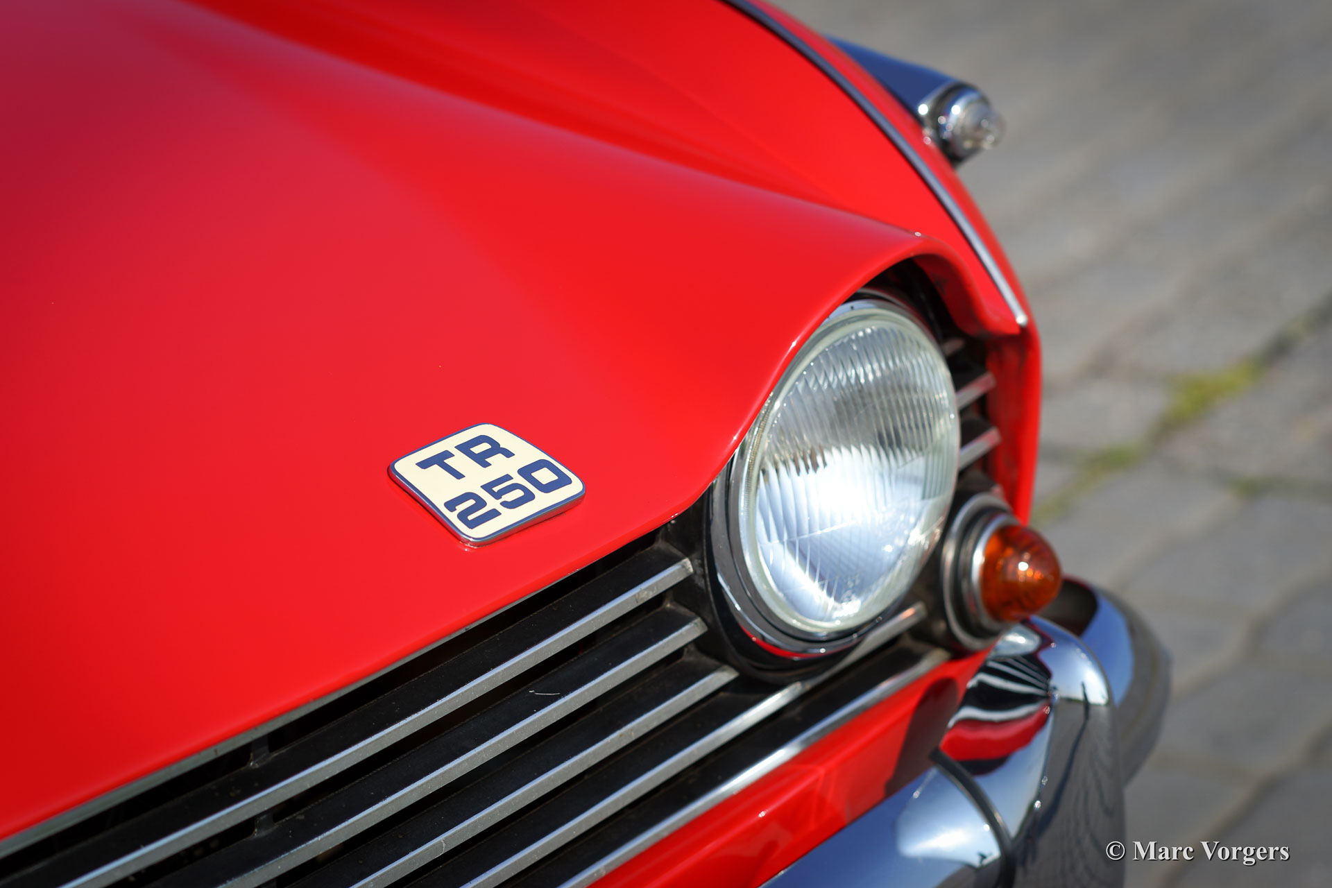 The Triumph TR 5, and the TR 250 for the American market, is the successor of the Triumph TR 4. The car came onto the market in the year 1967. The appearance of the TR 5/ TR 250 was, except for the grille, the same as the last of the TR 4's, the TR 4 A. The improvements to the TR concept could be found under the bonnet; instead of a carbureted four cylinder engine the TR 5 shows a cast iron six cylinder engine with petrol injection and a capacity of 150 SAE hp, the TR 250 shows the same six cylinder engine but fitted with dual Stromberg carburettors and 105 DIN hp. The Triumph TR 5 was the first British production car equipped with petrol injection.