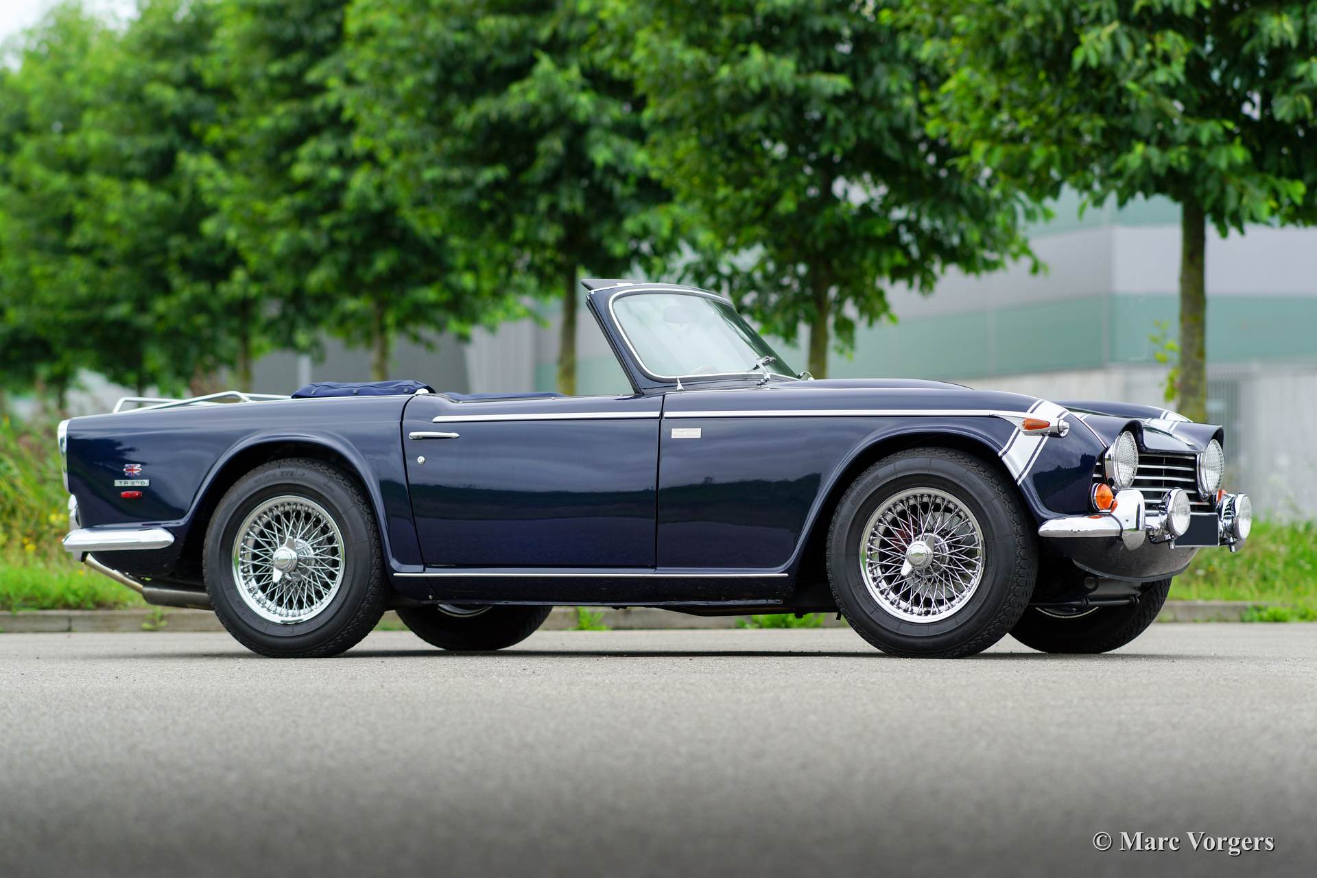 The Triumph TR 5, and the TR 250 for the American market, is the successor of the Triumph TR 4. The car came onto the market in the year 1967. The appearance of the TR 5/ TR 250 was, except for the grille, the same as the last of the TR 4's, the TR 4 A. The improvements to the TR concept could be found under the bonnet; instead of a carbureted four cylinder engine the TR 5 shows a cast iron six cylinder engine with petrol injection and a capacity of 150 SAE hp, the TR 250 shows the same six cylinder engine but fitted with dual Stromberg carburettors and 105 DIN hp. The Triumph TR 5 was the first British production car equipped with petrol injection.