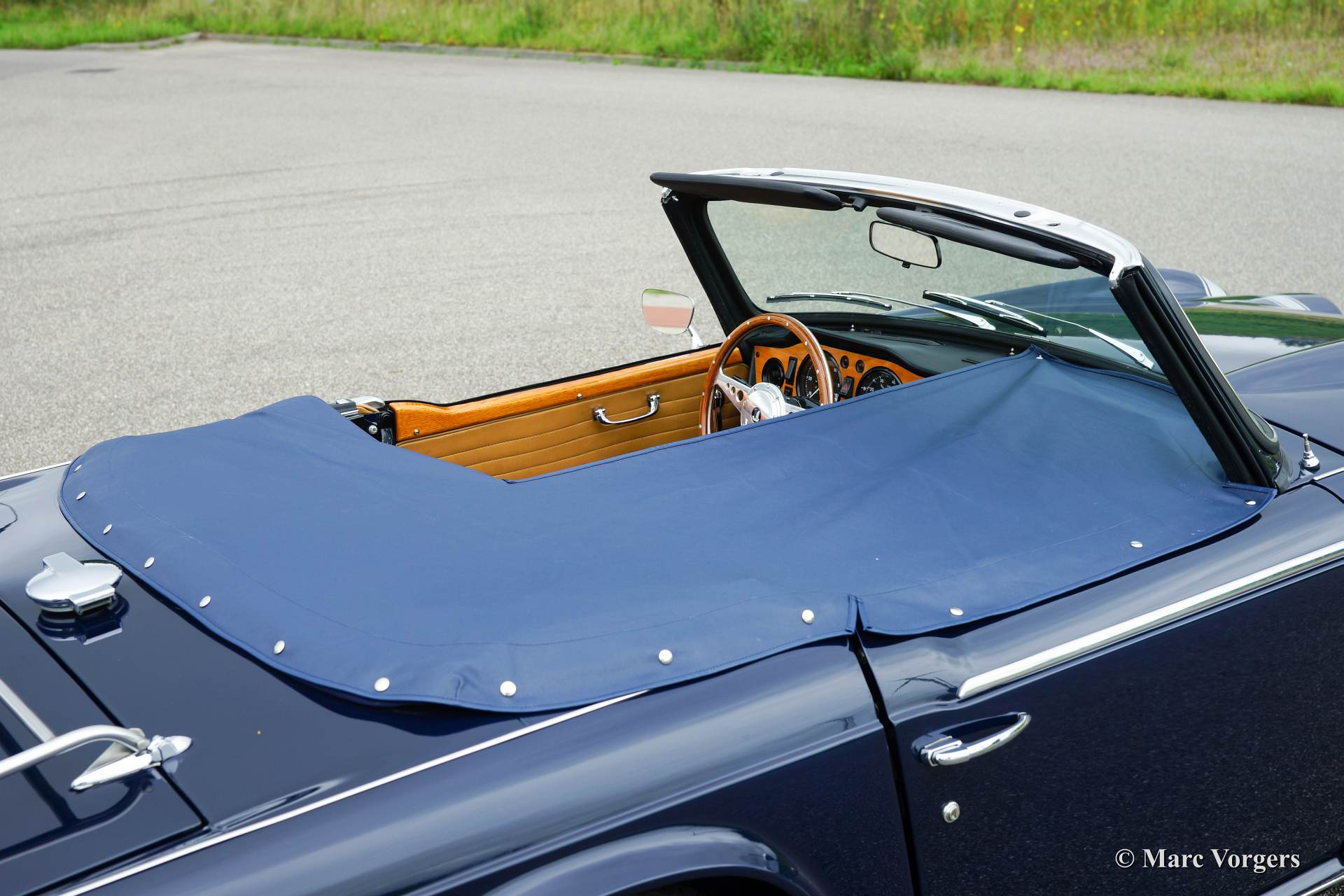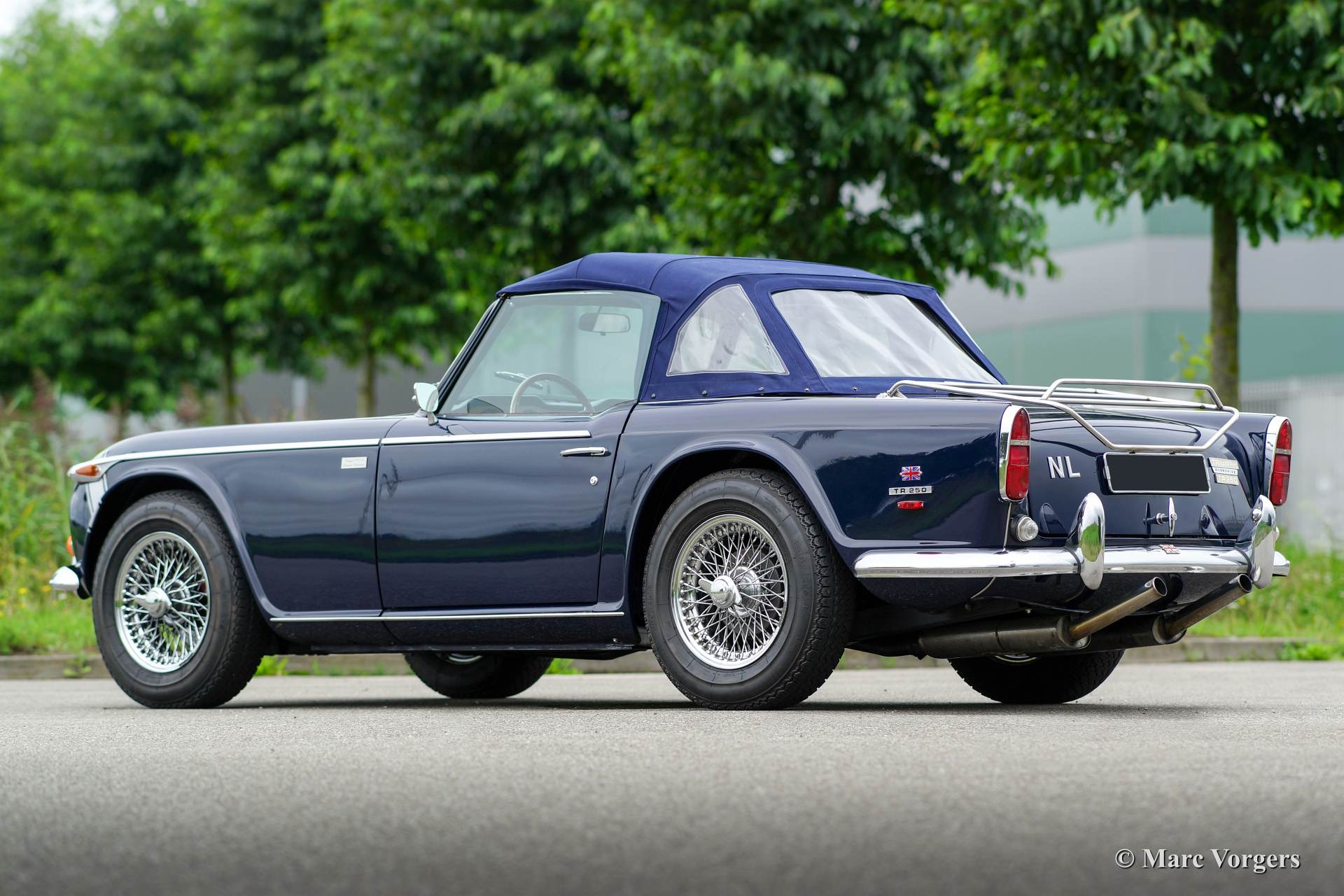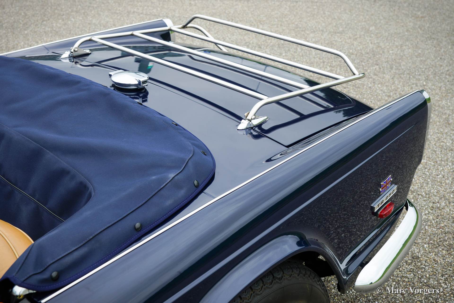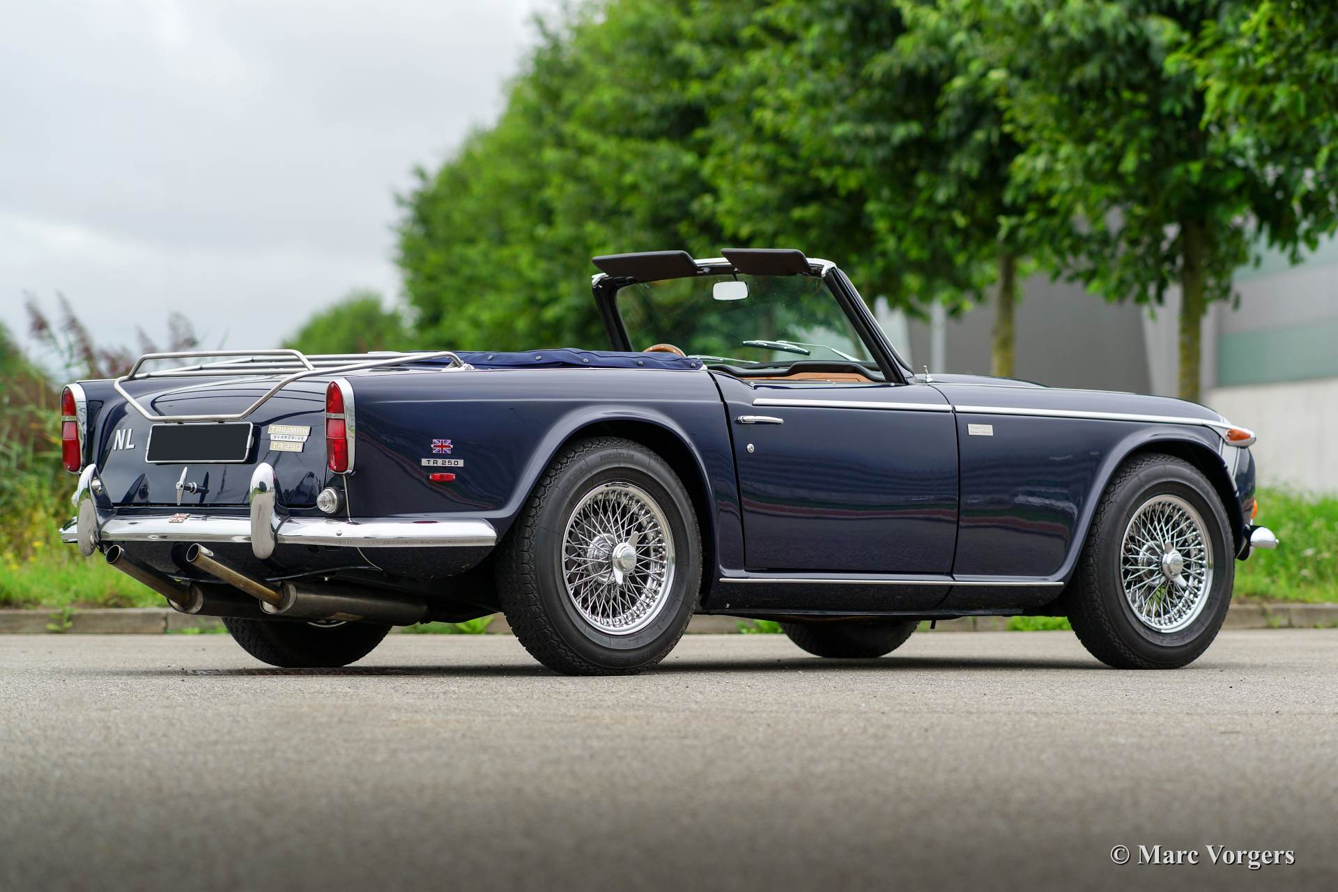 Triumph TR 250, year 1968. Colour dark blue with a beige leather interior and blue carpet. Blue mohair soft top, hood cover and tonneau cover. This beautiful and rather rare Triumph TR 250 was extensively and ‘body off’ restored a few years ago. The car is in excellent condition and the car drives superbly. During overhaul the engine was mildly tuned and the motor was modified to run on lead free petrol. Furthermore SU carburettors, electronic ignition and a Stainless Steel exhaust were fitted. The car was cherished and well taken care of by a TR enthusiast. Service history (invoices) are present. The Triumph TR 250 is a delightful, sporty and practical British roadster offering a magnificent six cylinder engine and a fantastic engine sound!