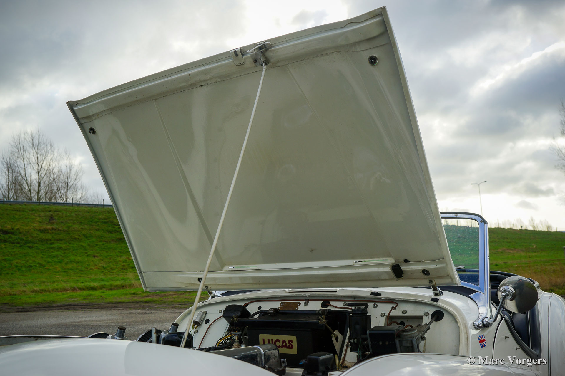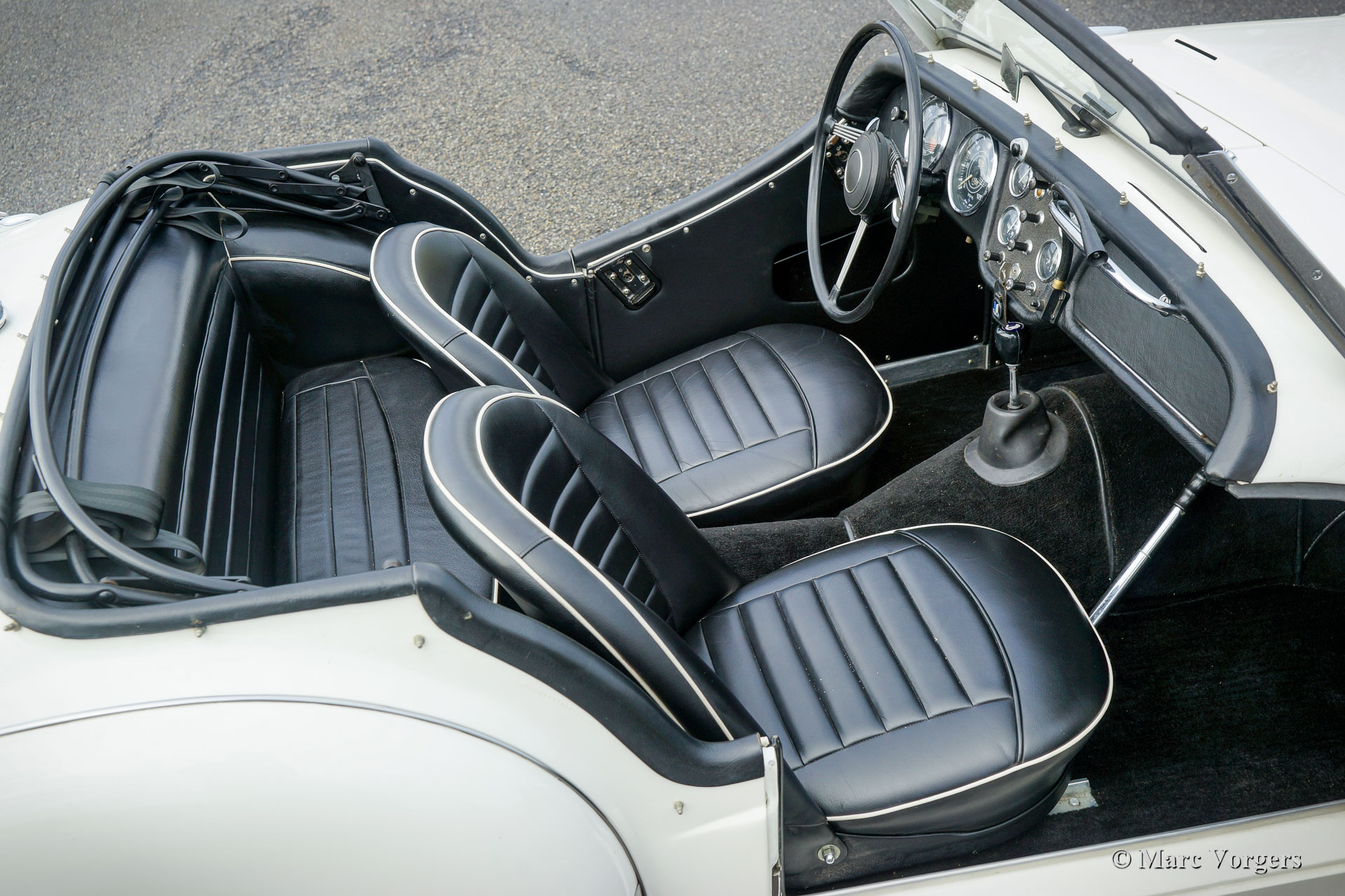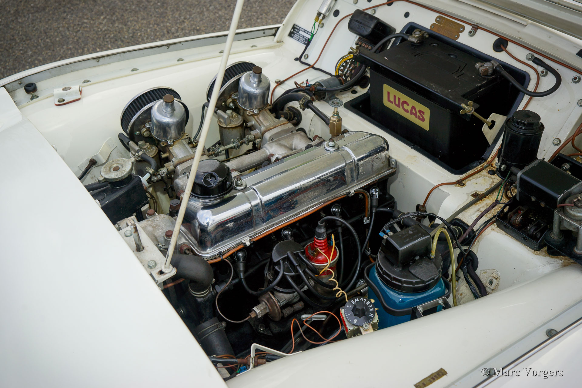 The Triumph TR 3 is a no nonsense sports car; very robust, simple and reliable, a true British sports car all over. The TR 3 was the first production car, off factory, equipped with disc brakes on the front-wheels. The engine was a Standard Vanguard based, cast-iron, long stroke, in-line four cylinder with a displacement of 1991cc. The TR 3 engine was equipped with two carburettors giving a power-output of almost 100 bhp.