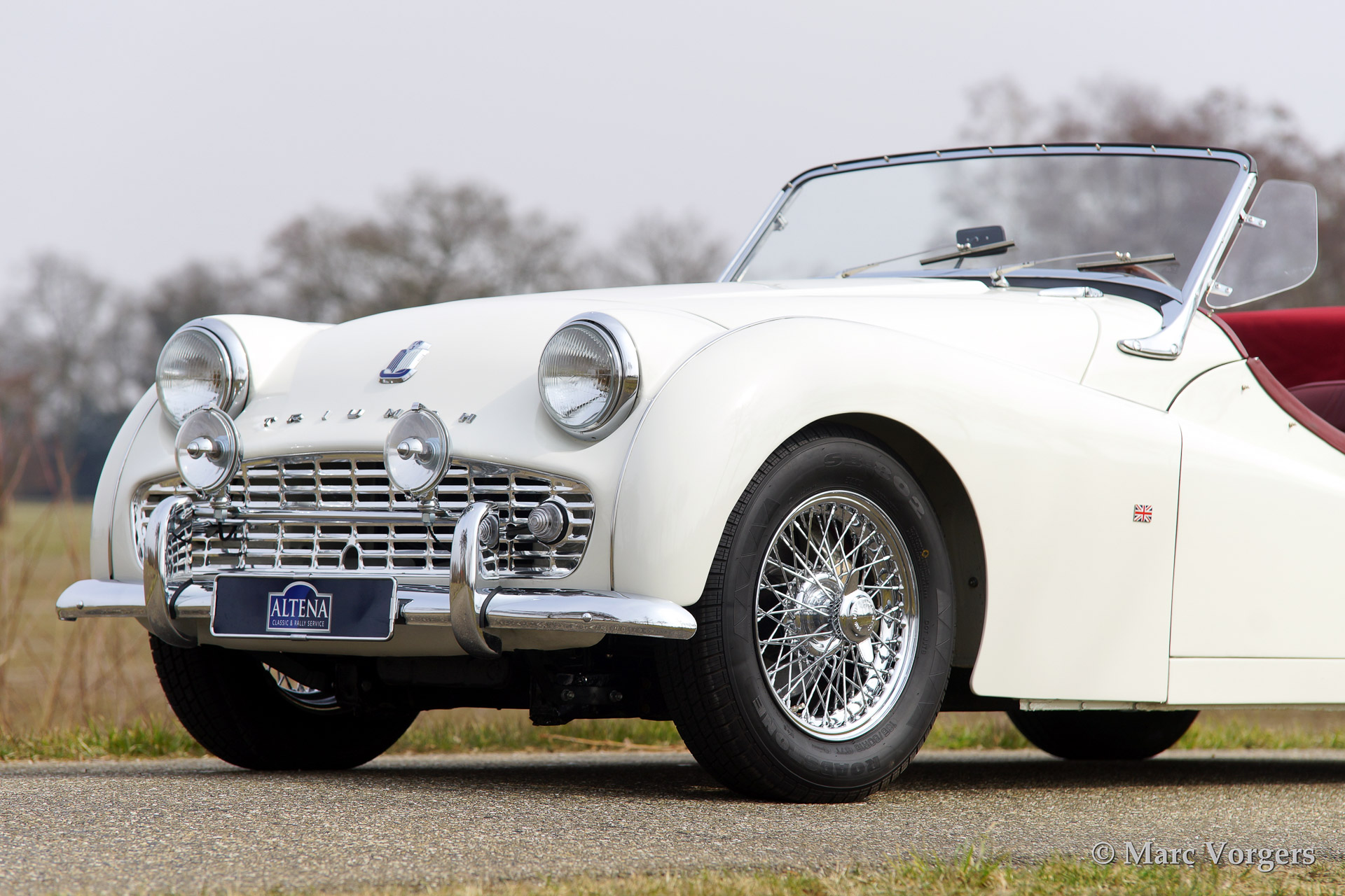 In the year 1957 the Triumph TR3a was presented. Again Triumph changed the grille (wider, covering the entire width of the car). Also the headlamps were placed a little backwards and door handles were fitted. Very short after the introduction of the TR 3a the Triumph TR 3b was introduced, the only change was the larger cylinder capacity of the engine.
