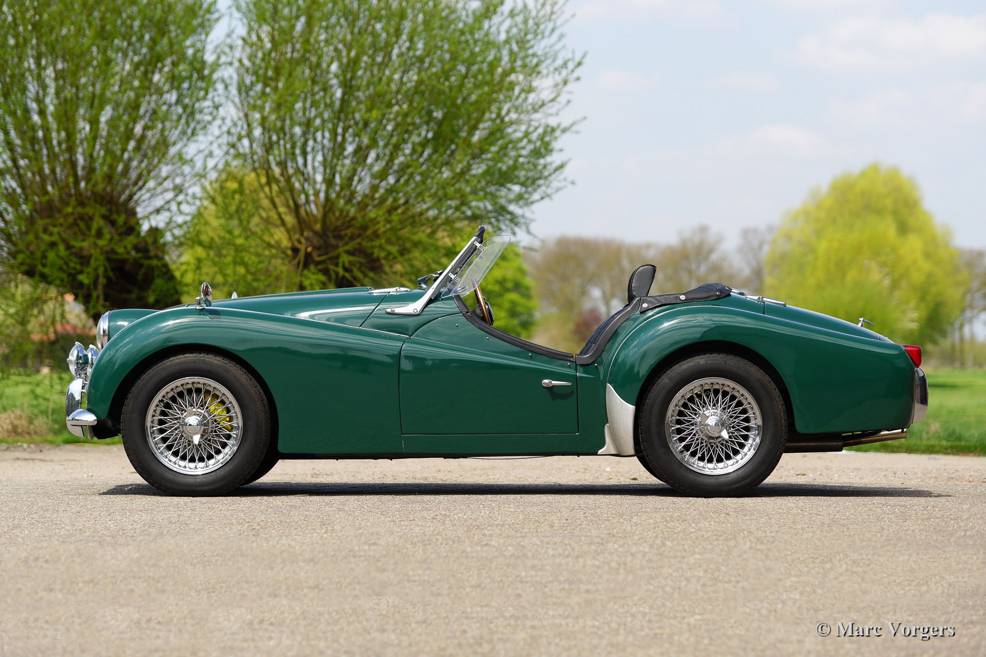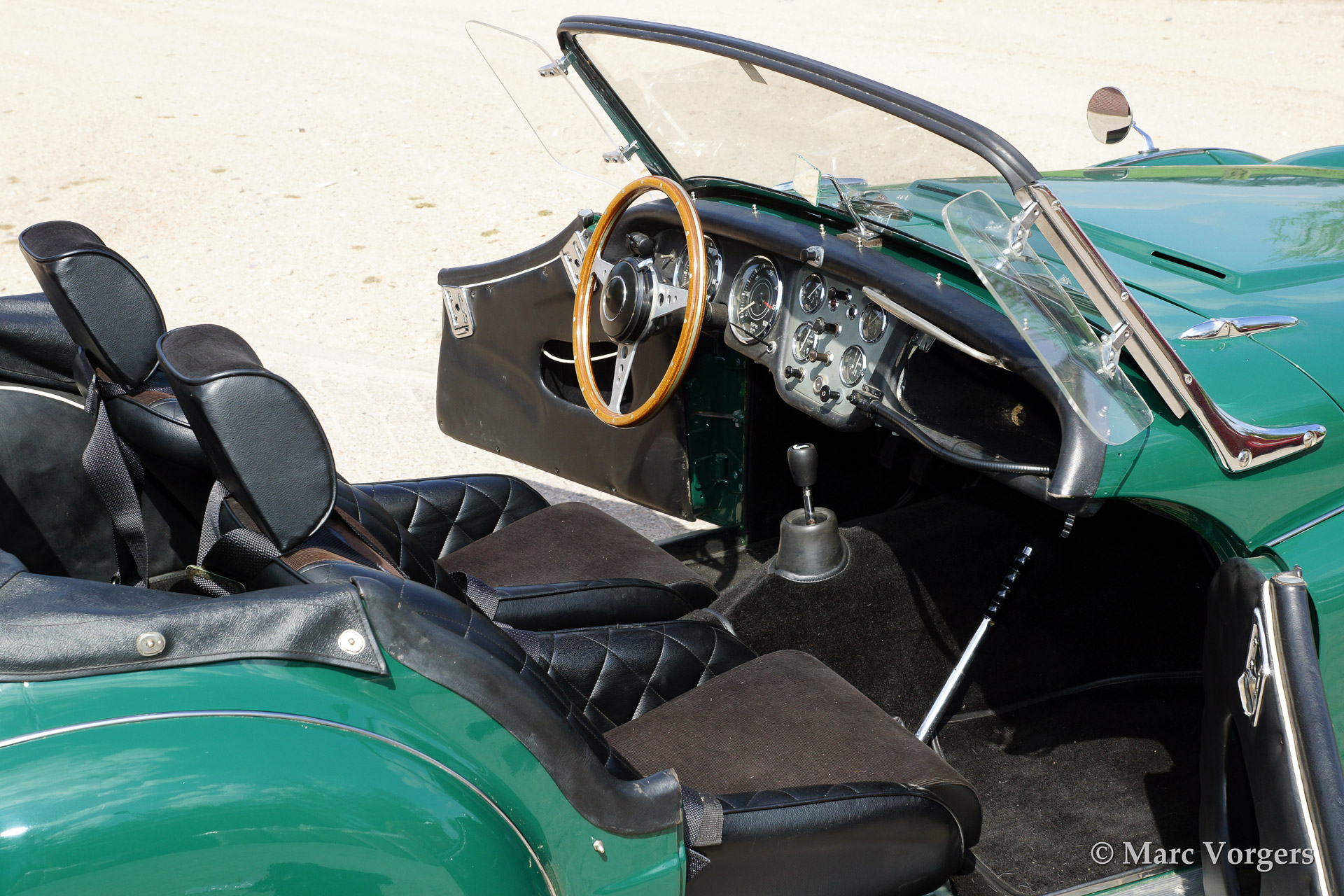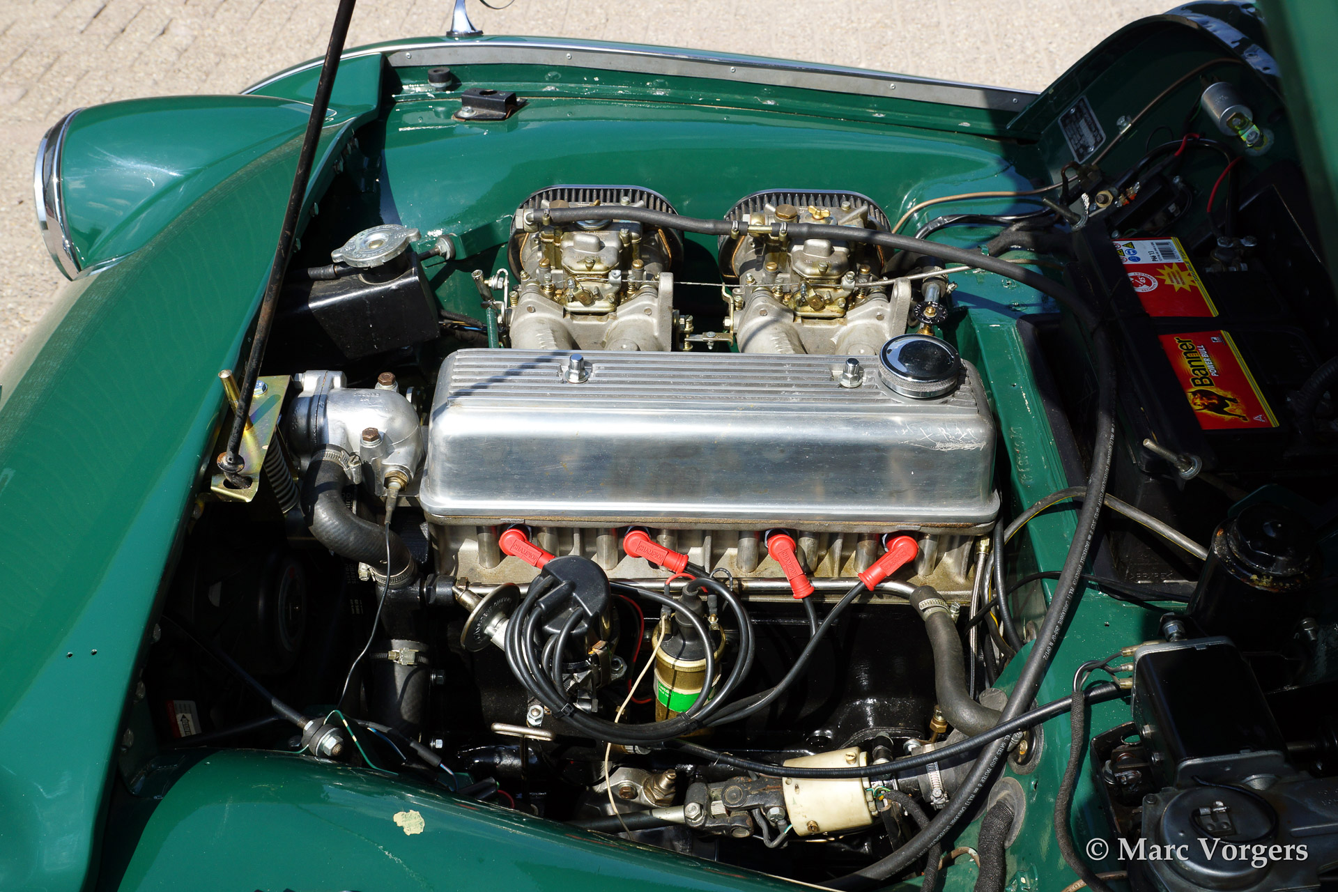 The Triumph TR 3 is a no nonsense sports car; very robust, simple and reliable, a true British sports car all over. The TR 3 was the first production car, off factory, equipped with disc brakes on the front-wheels. The engine was a Standard Vanguard based, cast-iron, long stroke, in-line four cylinder with a displacement of 1991cc. The TR 3 engine was equipped with two carburettors giving a power-output of almost 100 bhp.