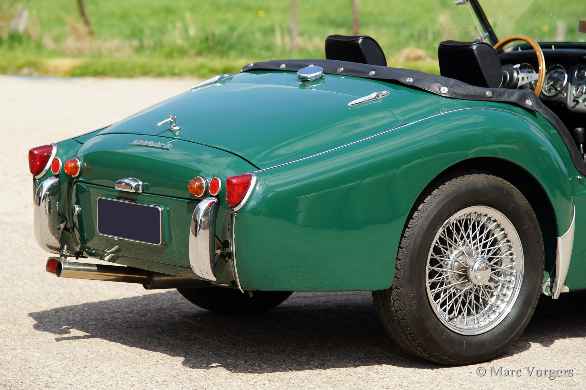 In the year 1957 the Triumph TR3a was presented. Again Triumph changed the grille (wider, covering the entire width of the car). Also the headlamps were placed a little backwards and door handles were fitted. Very short after the introduction of the TR 3a the Triumph TR 3b was introduced, the only change was the larger cylinder capacity of the engine.