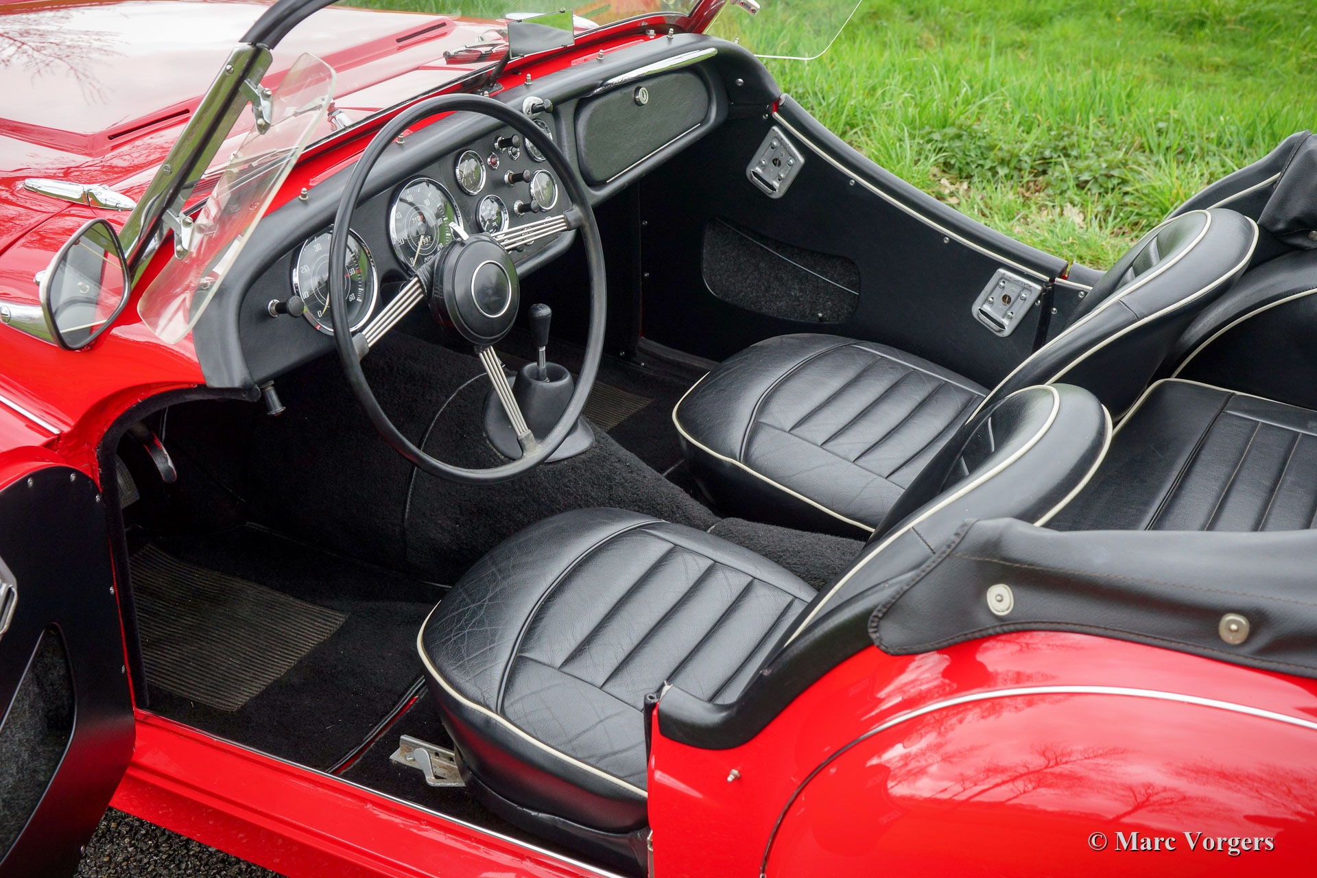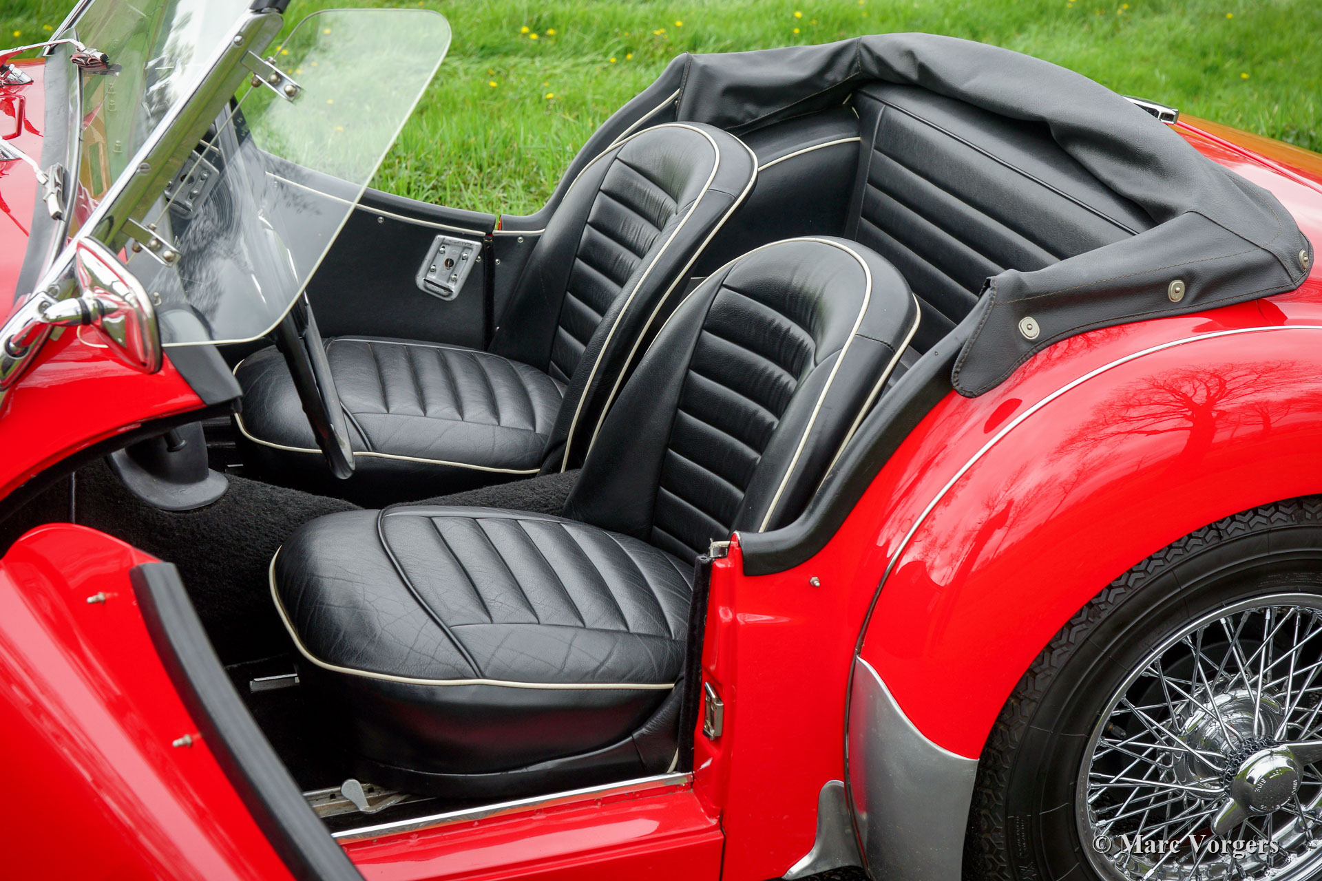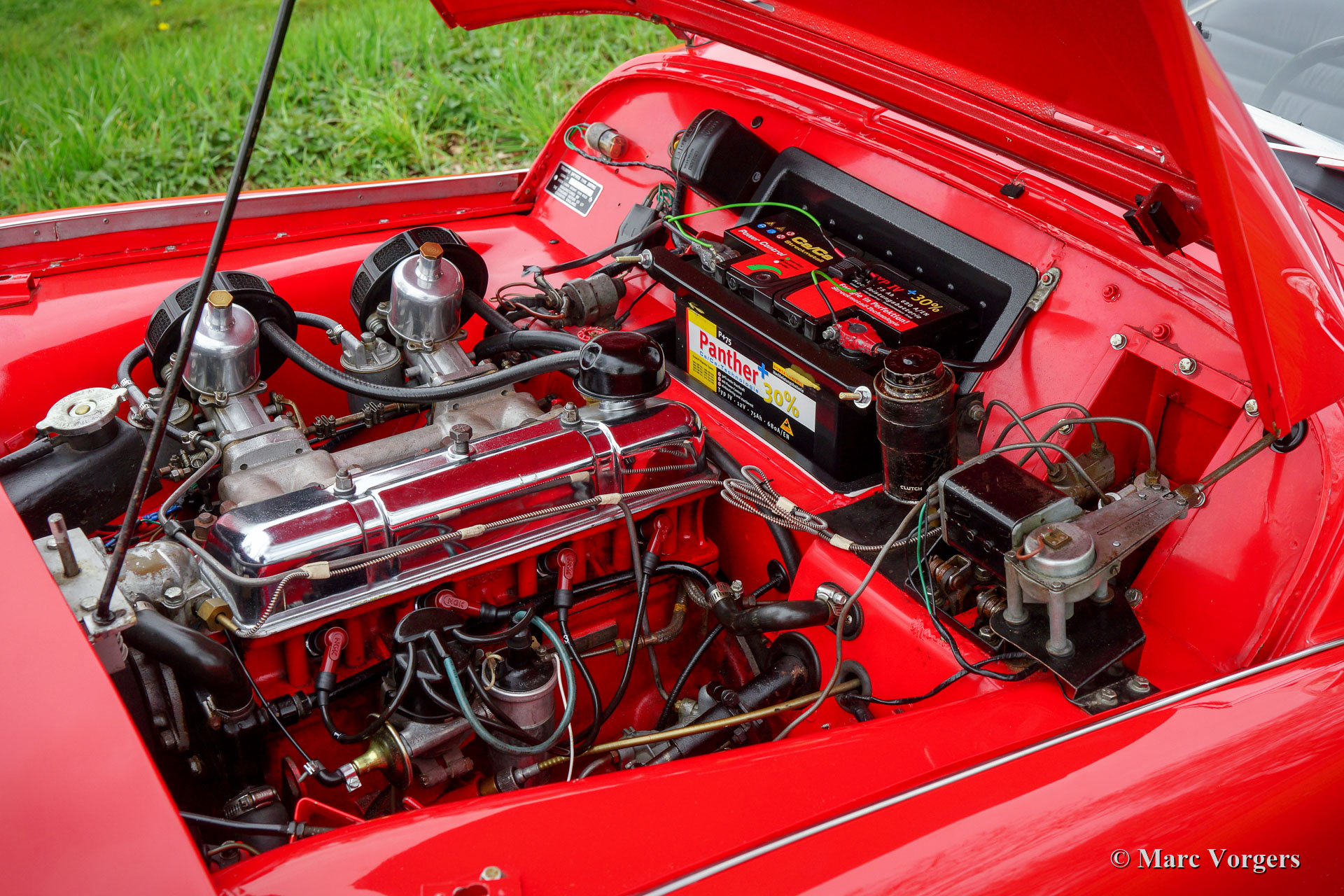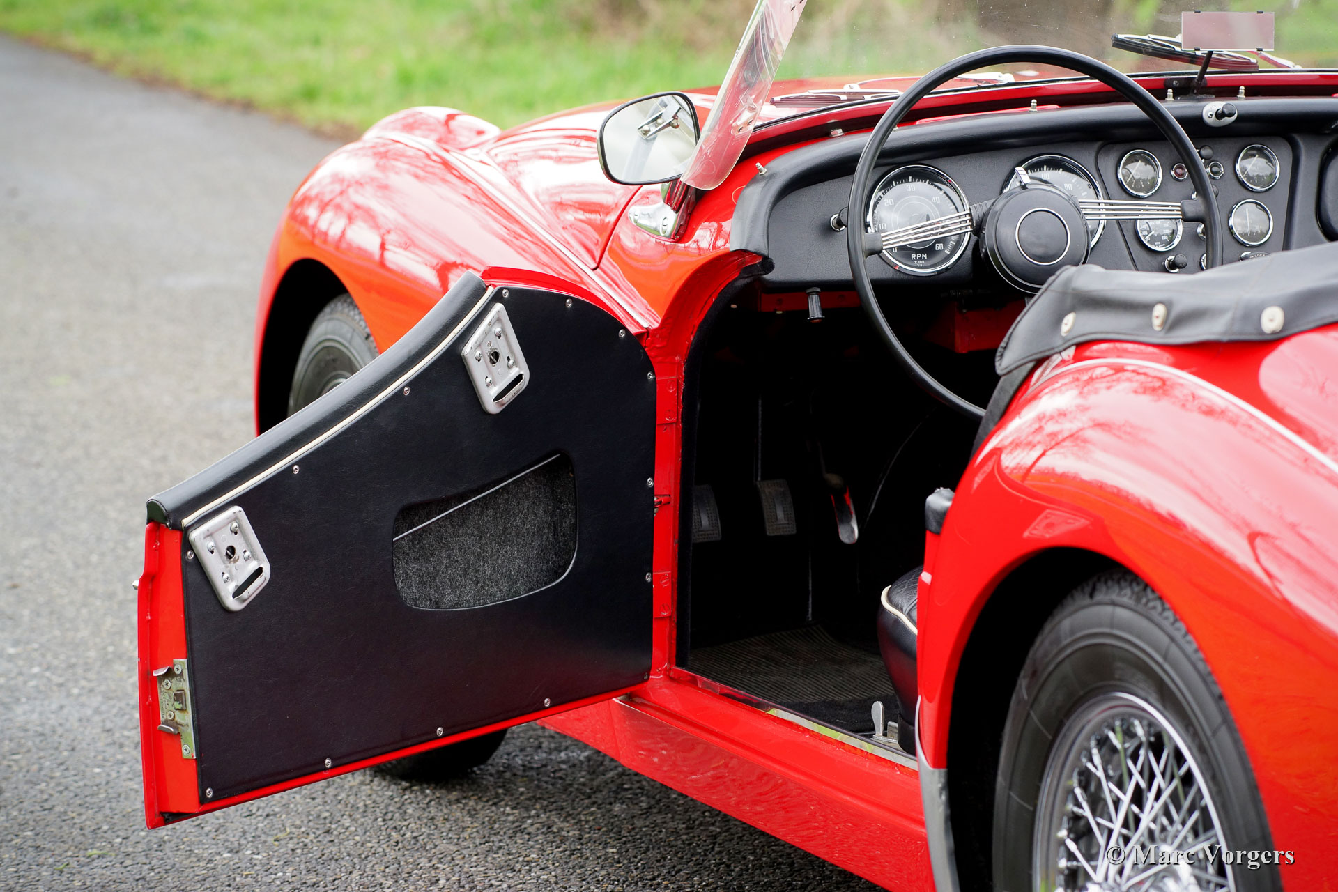 The Triumph TR 3 is a no nonsense sports car; very robust, simple and reliable, a true British sports car all over. The TR 3 was the first production car, off factory, equipped with disc brakes on the front-wheels. The engine was a Standard Vanguard based, cast-iron, long stroke, in-line four cylinder with a displacement of 1991cc. The TR 3 engine was equipped with two carburettors giving a power-output of almost 100 bhp.