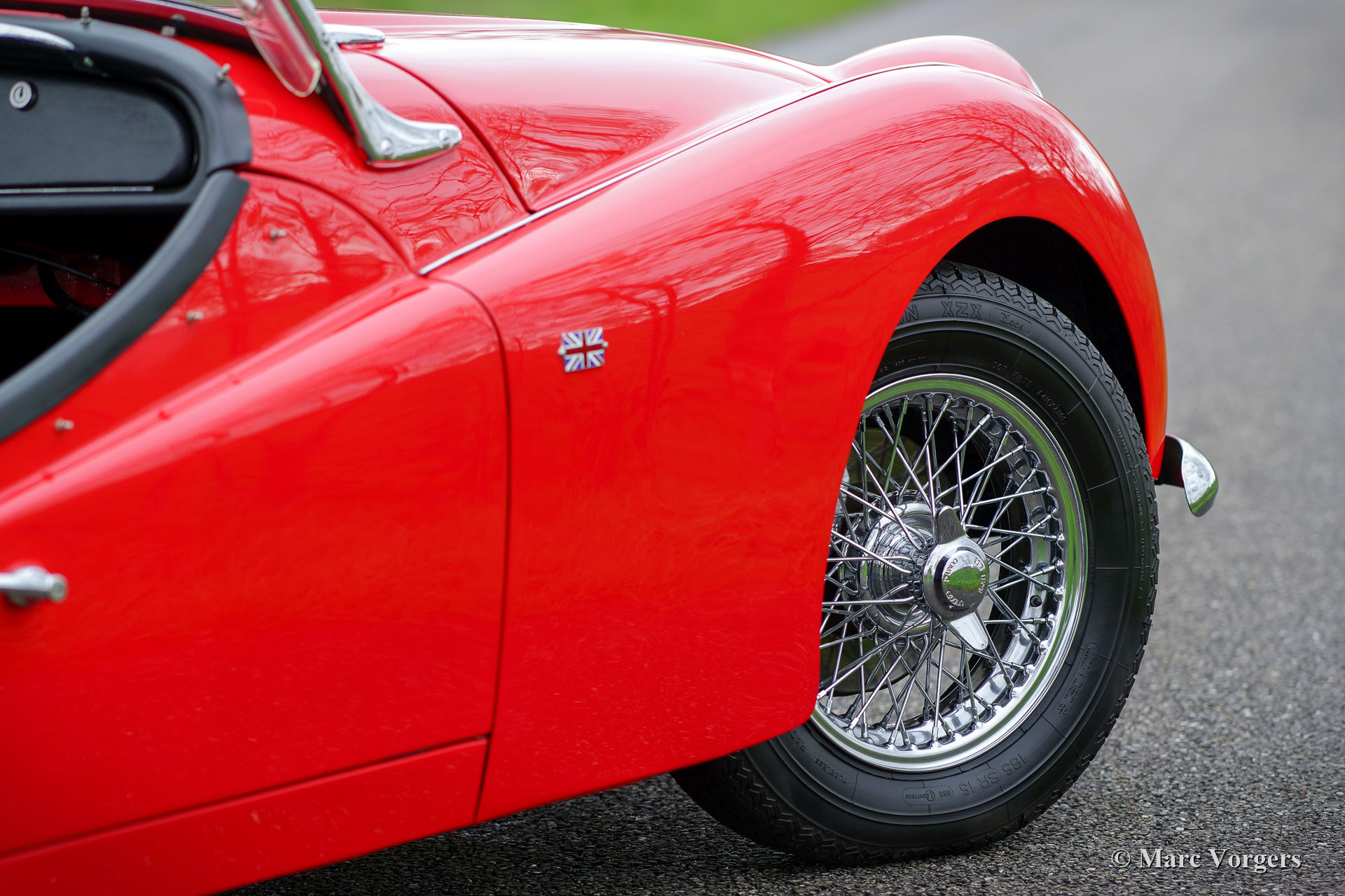 In the year 1948 Jaguar Cars (just like Standard-Triumph located in Coventry) astonished the entire automobile industry with the Jaguar XK 120. This very slick sports car with it's all enveloping body must have been inspired by the prewar BMW racing cars... but the XK 120 was for road use, it topped 120 miles per hour and it was far more affordable than other exotic cars like the Ferrari and Aston Martin.