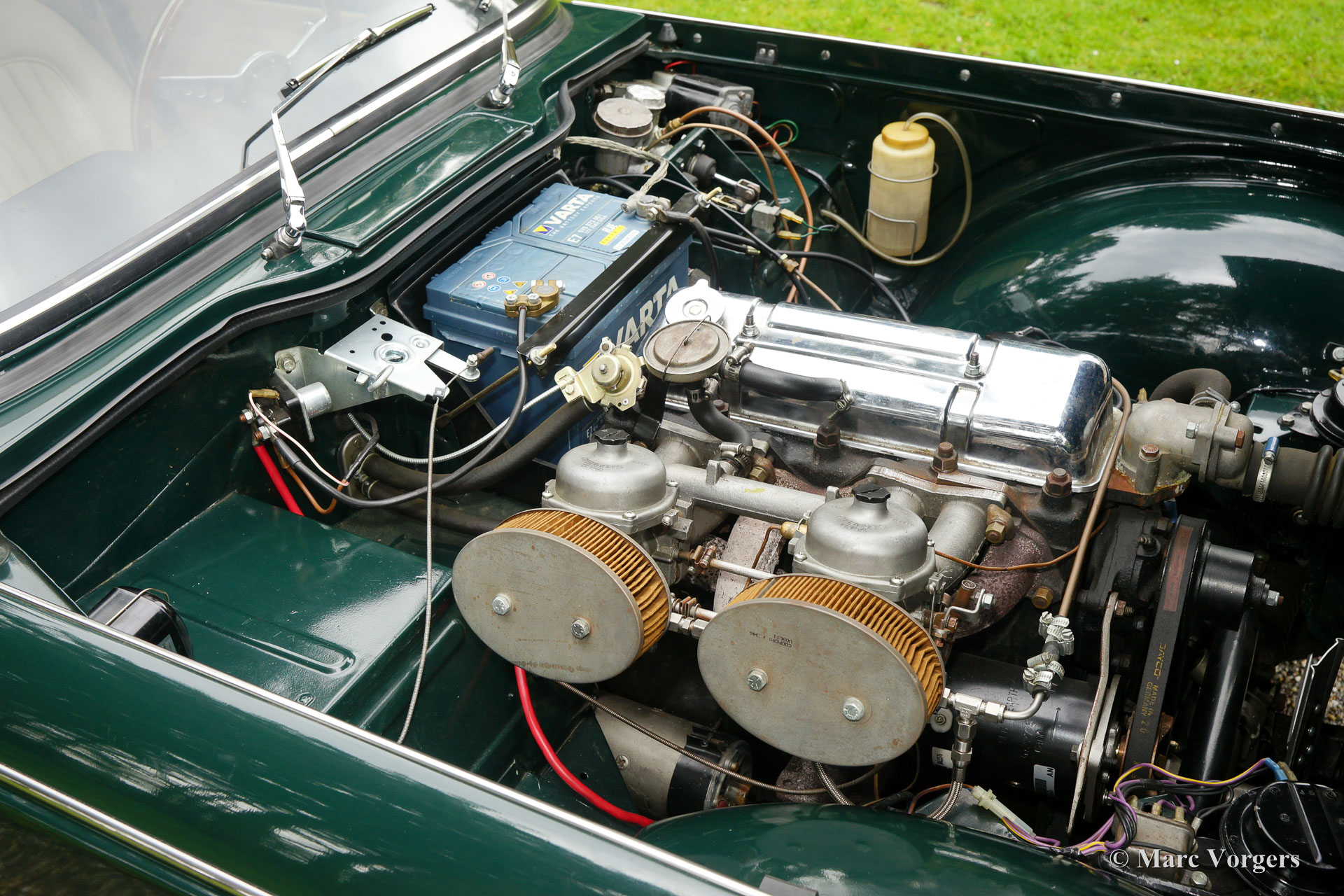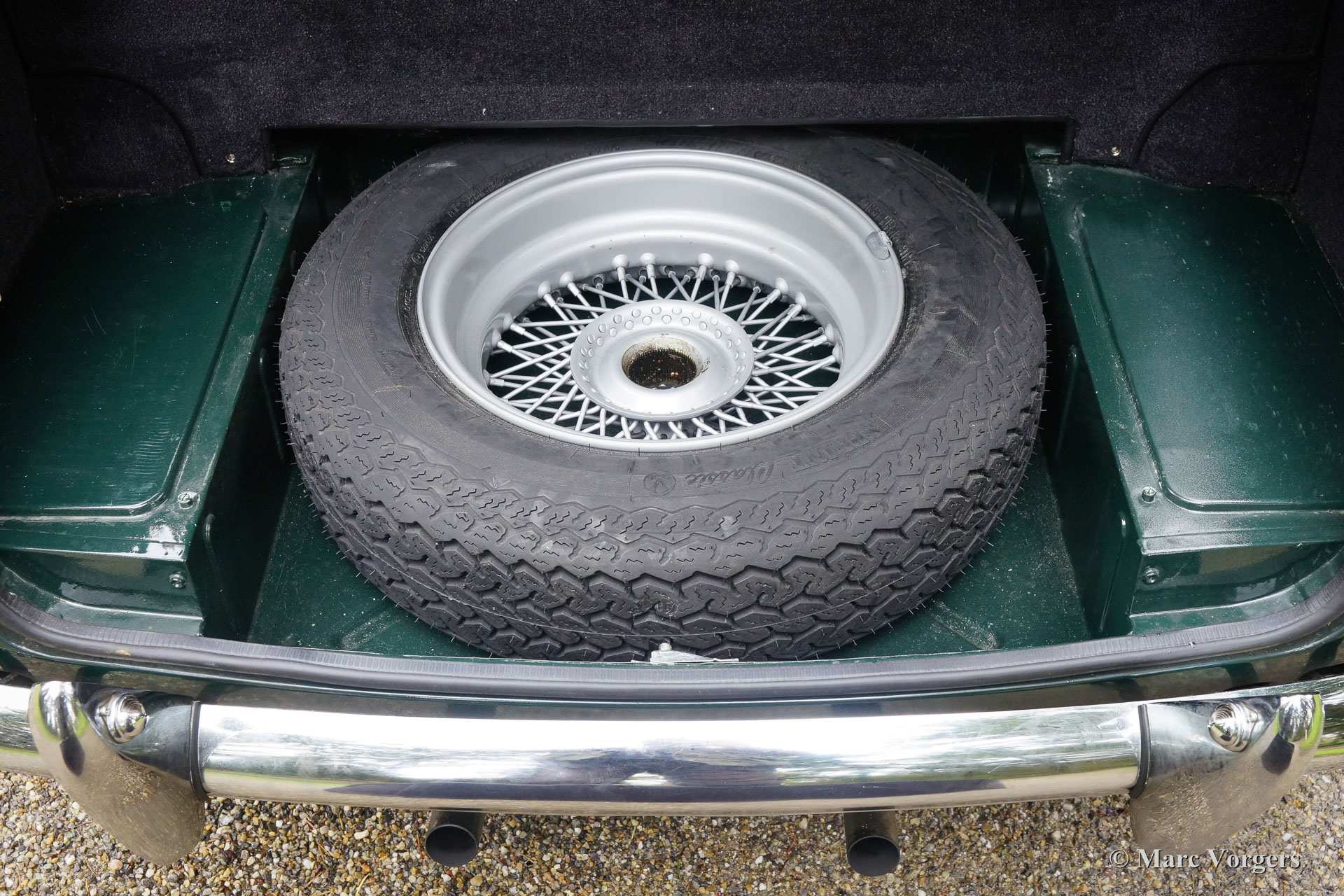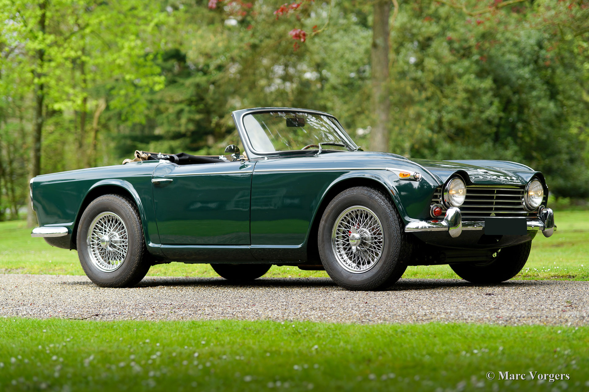 Triumph TR 4A, year 1966. Colour British Racing Green with a beige leather interior trimmed with green piping. Beige carpet and a beige mohair soft-top. This wonderful Triumph TR 4A was extensively and ‘nut & bolt’ restored twelve years ago, photos and a lot of invoices giving insights of the restoration are present. During the restoration, the engine was modified to run on lead-free petrol. This magnificent Triumph TR 4A is in excellent condition with slight signs of use (little hair-scratches in the paint on some spots). The car features chrome wire wheels, a walnut dashboard and a beautiful MotoLita steeringwheel with wood rim. This Triumph TR has been used mainly for holiday trips, the car is ready for sunny adventures with its future owner!