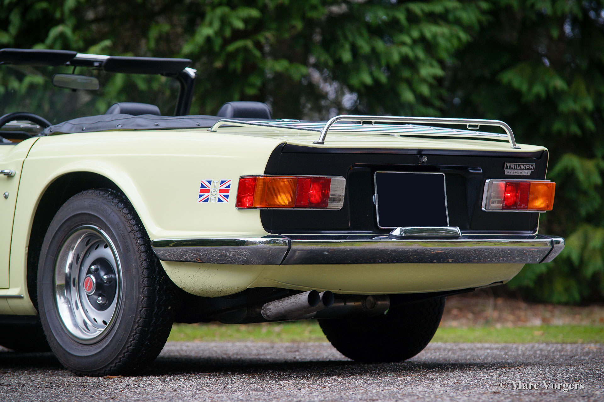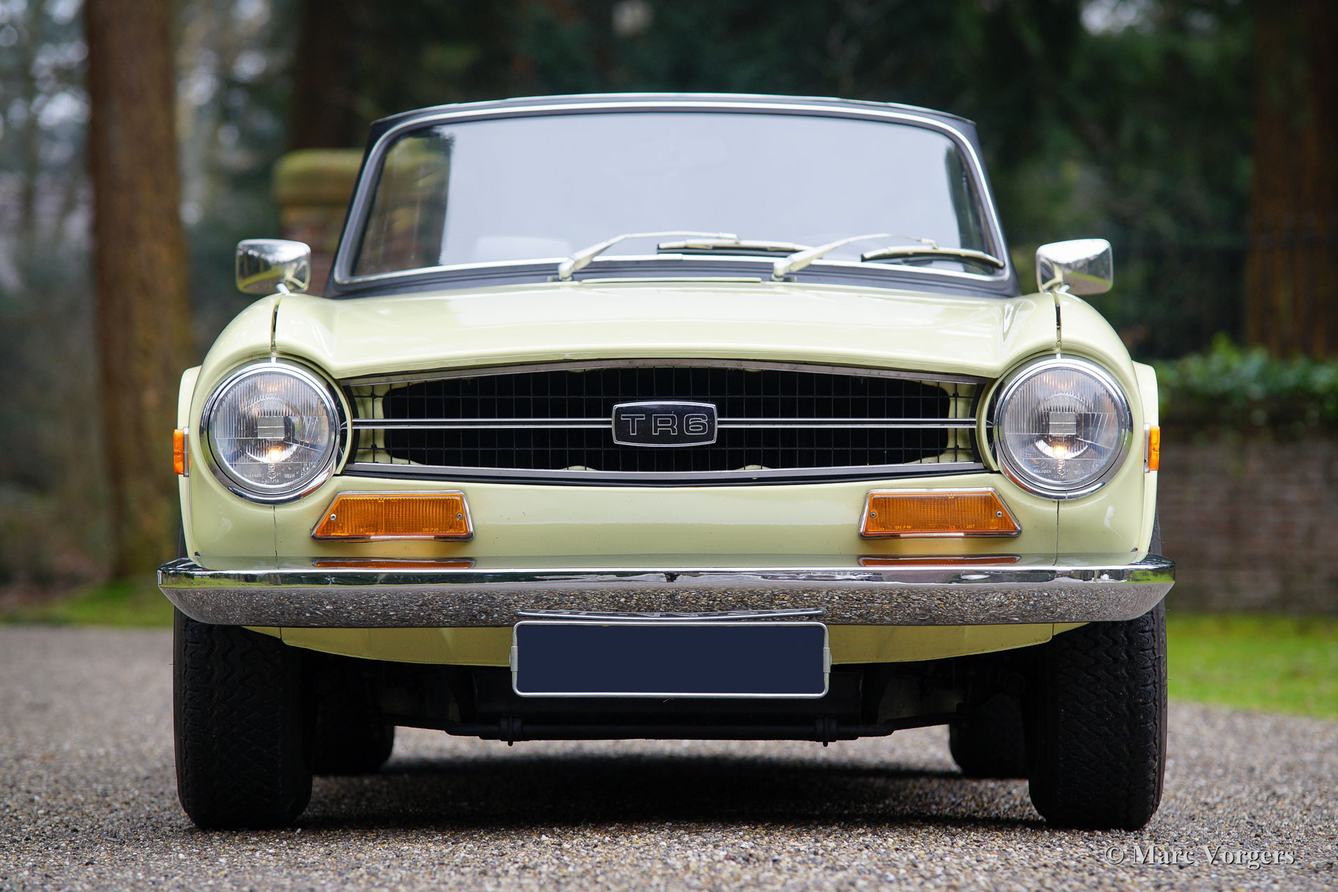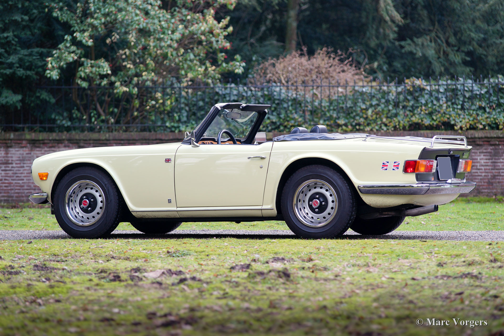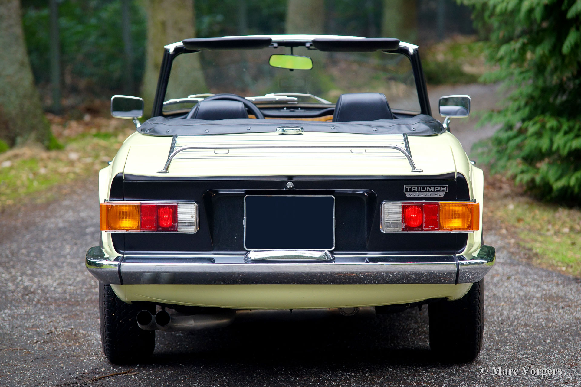 Triumph TR 6, year 1969. Colour pale yellow with a black leatherette interior and black carpet. Black soft-top and hood cover. This fantastic Triumph TR 6 was sold new in the USA. The car was imported to the Netherlands in the year 1995. This TR 6 is in very good condition and the car drives perfectly! The six-cylinder engine sound is wonderful! This early Triumph TR 6 shows all the original details like the cabin light on the floor, the early gauges and the masculine steel wheels with the black hub caps. Furthermore, the car features overdrive (operated from the shift knob), a longer shift stick, a chrome luggage rack and a sports steering wheel with leather covered rim. A very good example at a very interesting price!