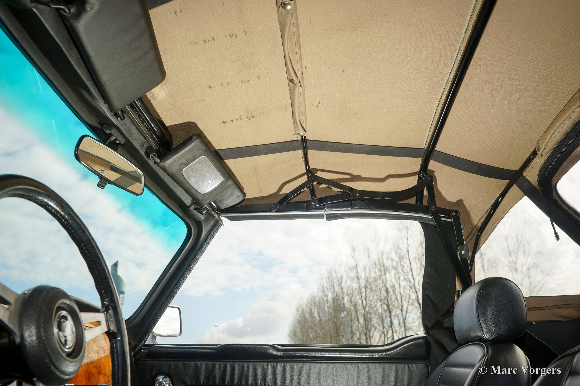 Triumph TR 6, year 1973. Colour British Racing Green with a black interior and black leather seats. Black mohair soft-top and a black hood cover. This fantastic and masculine TR 6 was restored and overhauled in the past. During the overhaul of the engine it was modified to European specifications and it was adapted to run on lead free petrol. The six cylinder in-line engine delivers 135 bhp. This fast and perfectly driving TR 6 is in very good to excellent condition. The car features a Stainless Steel exhaust system (including manifold), electronic ignition, a walnut wood dashboard and wide chrome wire wheels. A tremendous TR 6, classic driving fun guaranteed!