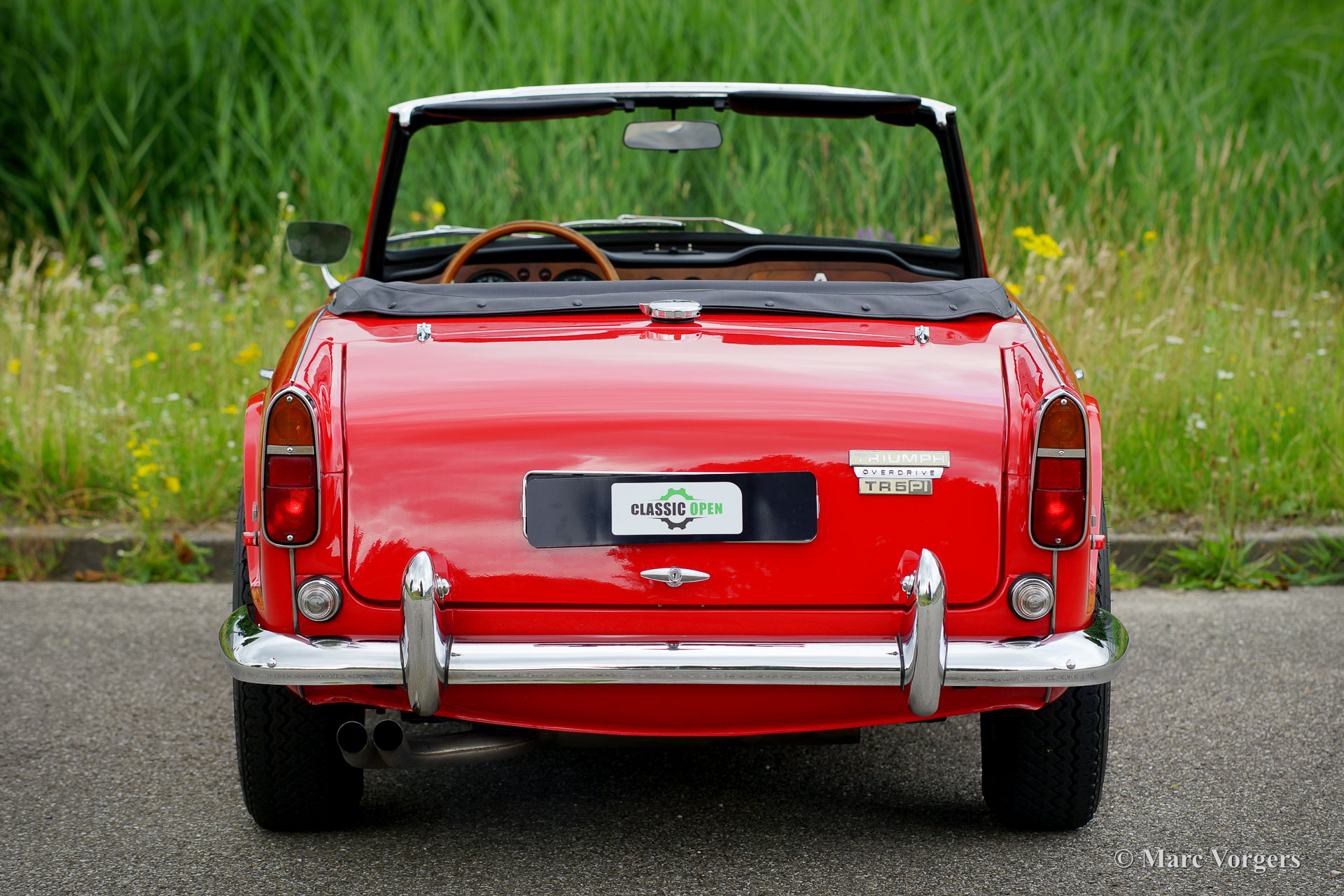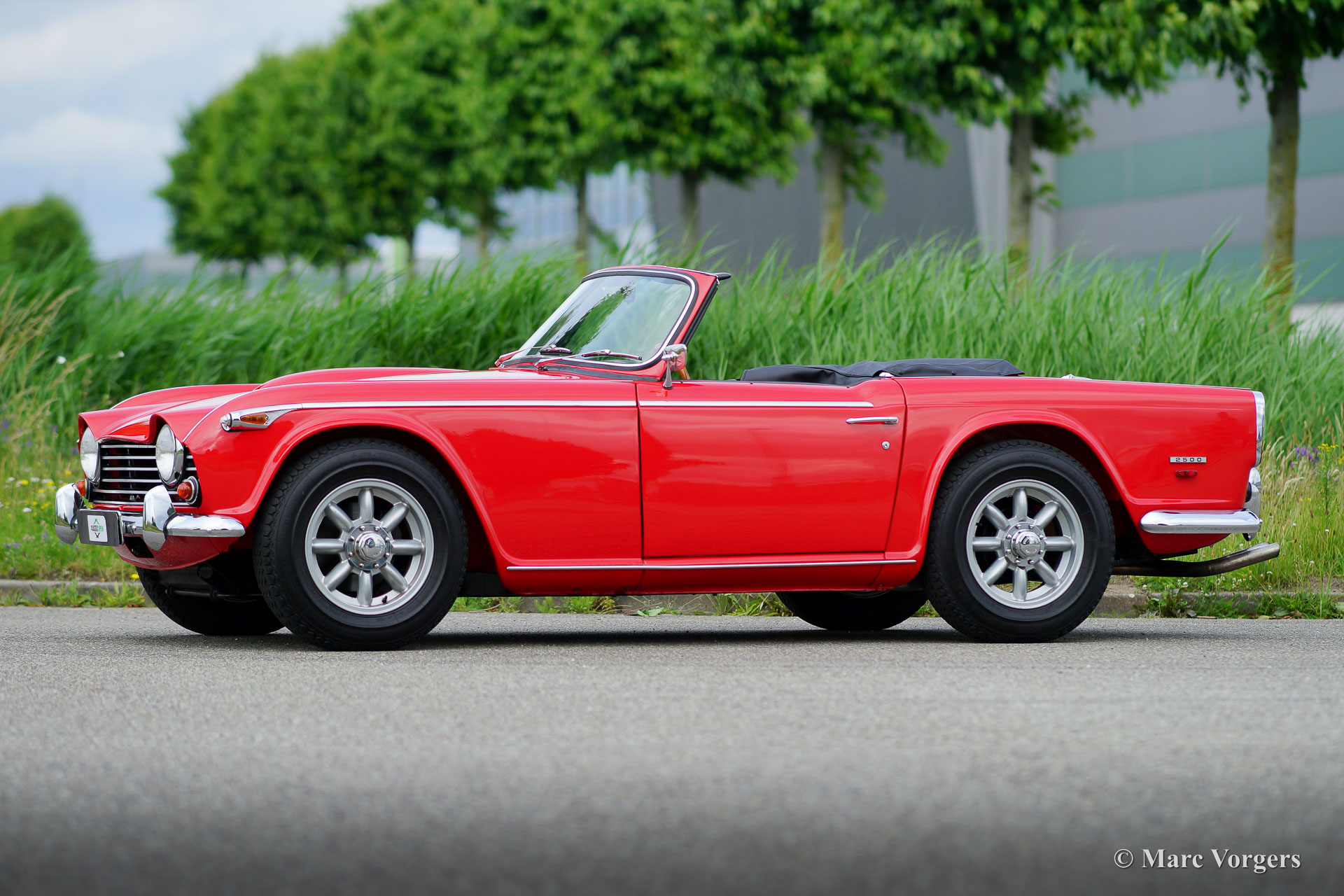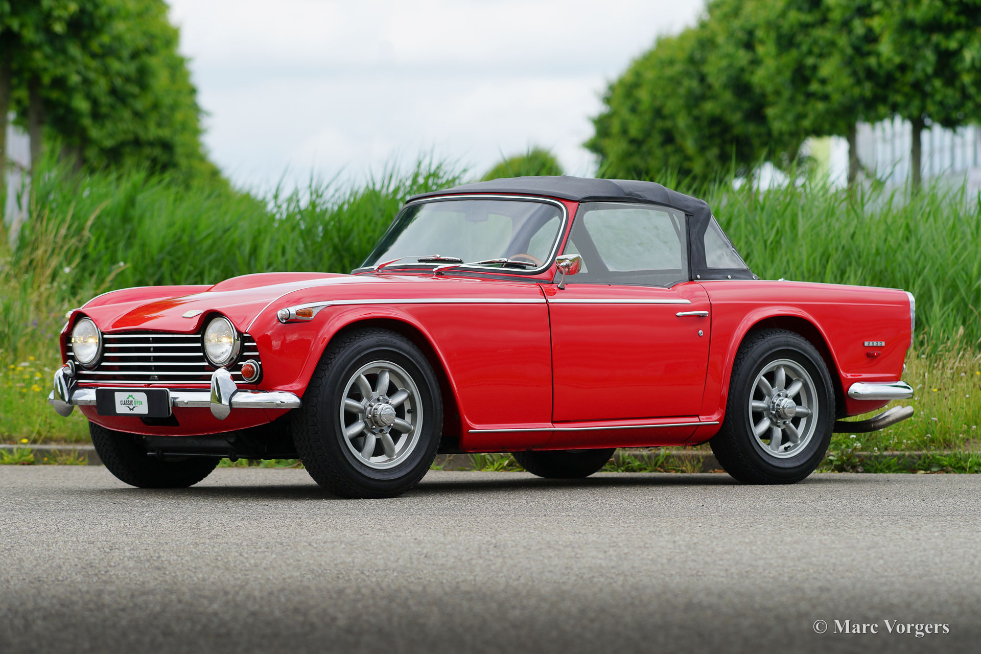 Triumph TR5, year 1968. Colour signal red combined with a black interior trimmed with white piping and black carpet. Black vinyl soft top and hood cover. This rare and wonderful Triumph TR5 with chassis number 1CP166LP was built in Belgium in 1967. This is the first TR5 which was sold in the Netherlands! The car comes with a complete history file. This magnificent Triumph TR5 was extensively and ‘body-off’ restored and overhauled, the work was carried out to original factory specifications. A photo report and invoices of the restoration are present. The car features the powerful (150 SAE bhp) CP engine and overdrive. The rebuilt mechanical Lucas injection system is now fitted with a Bosch fuel pump and fuel filter. The car is fitted with gorgeous Minilite style alloy wheels with ‘knock-on’ wheel nuts, Michelin 185-15 tyres, a Stainless-Steel exhaust, and a wonderful sports steering wheel with wood rim. This is a wonderful and very hard to find original Triumph TR5 in superb condition!