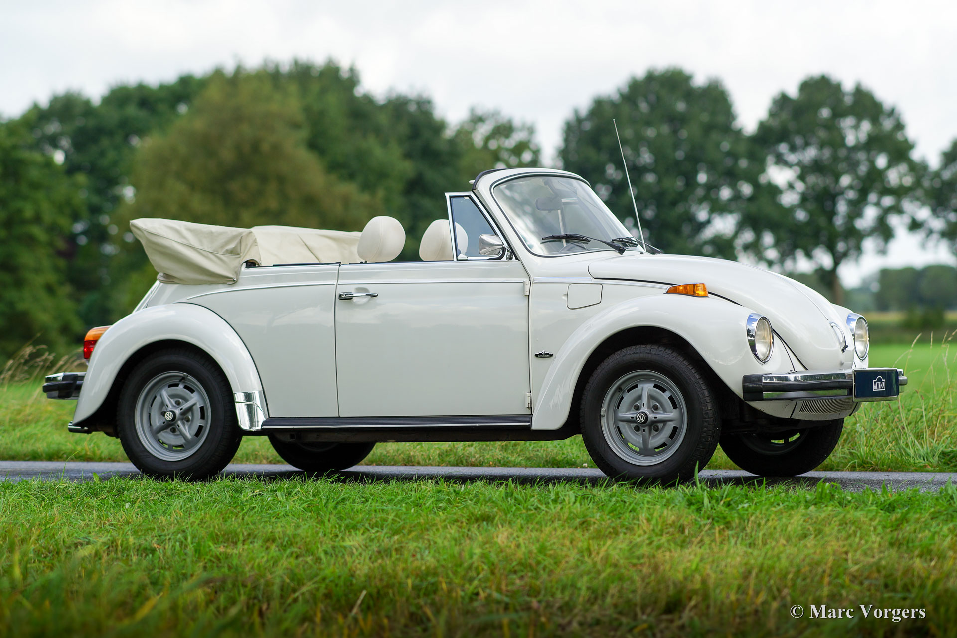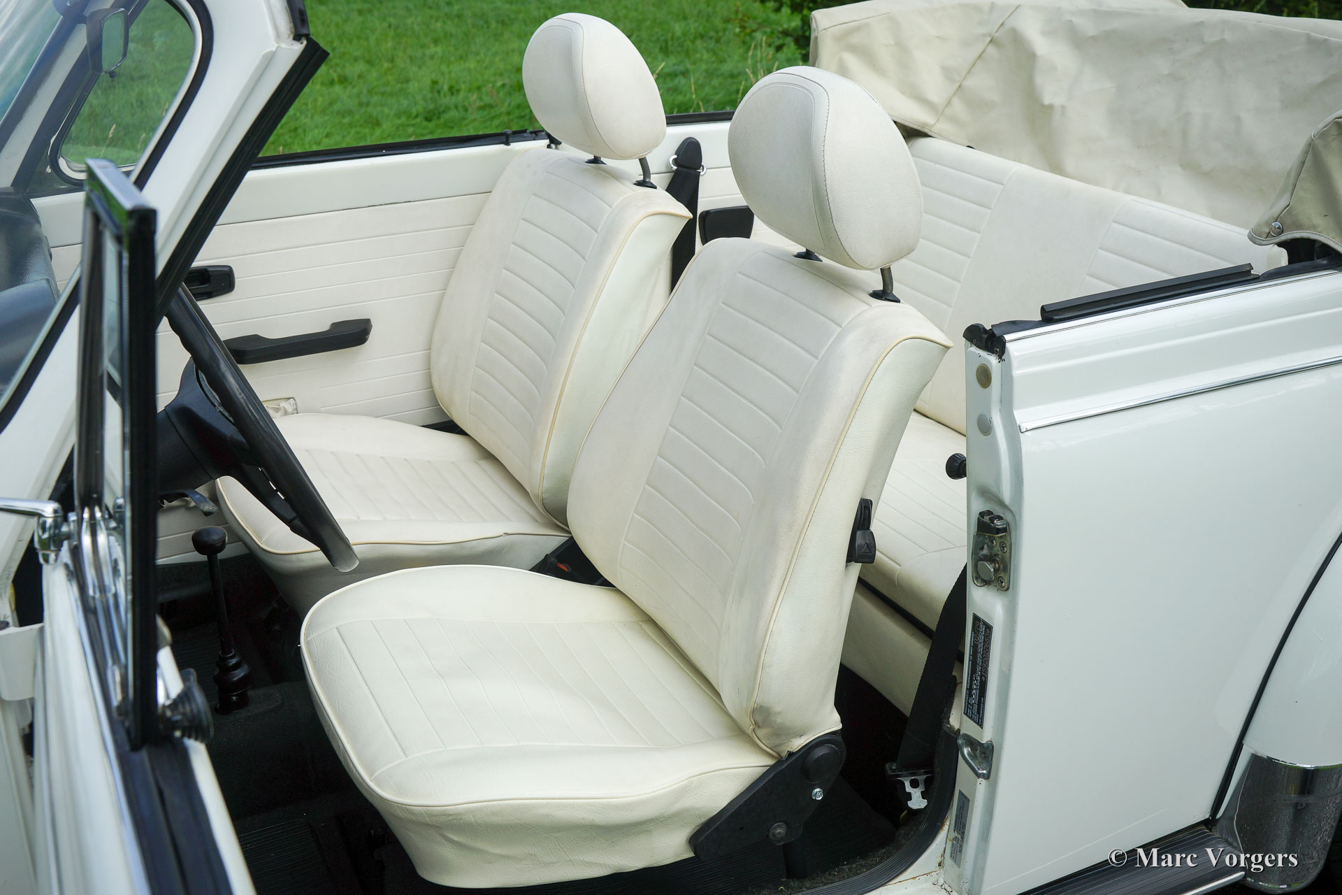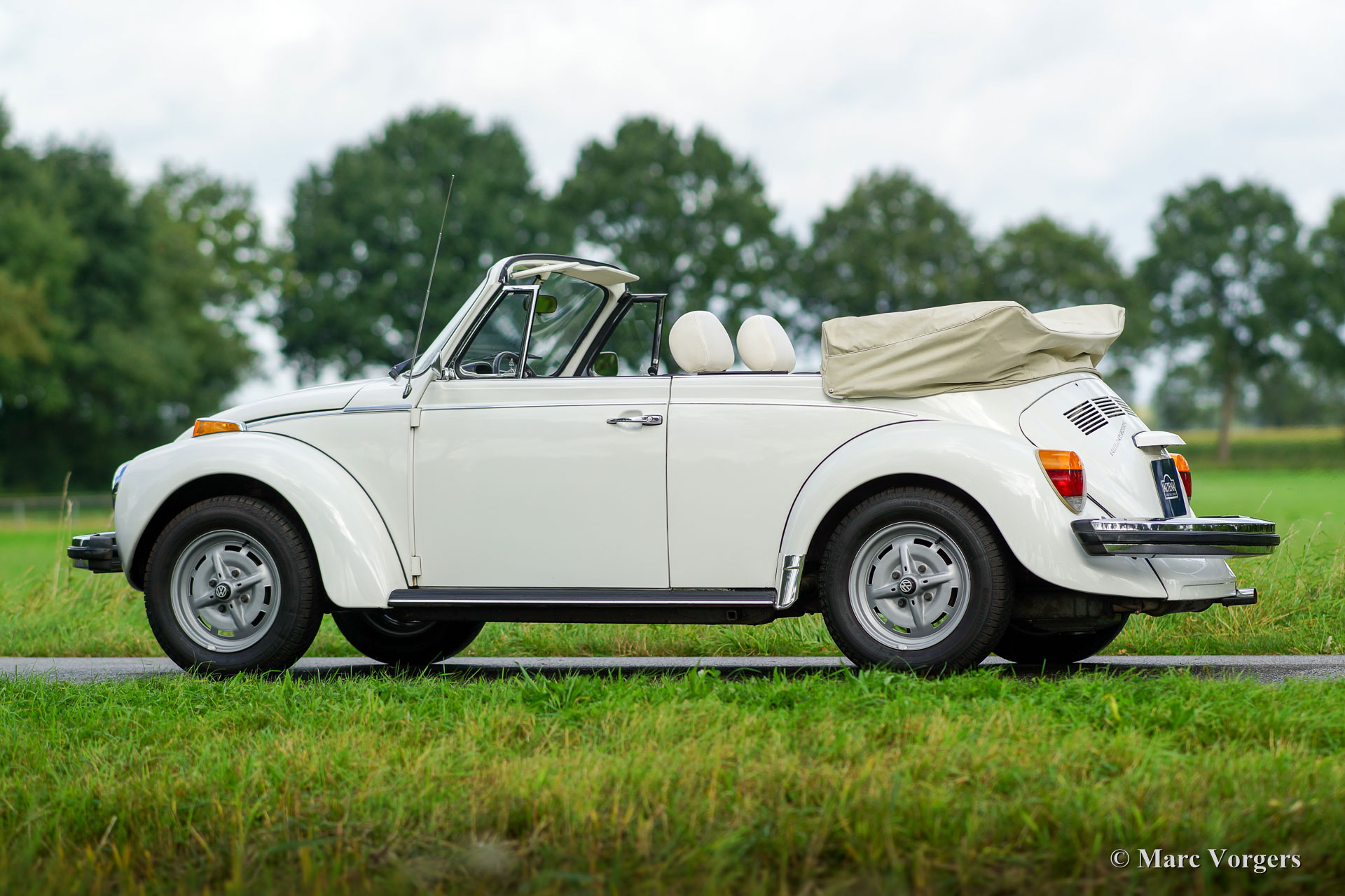 Volkswagen ‘Beetle’ 1303 cabriolet, year 1979. Colour ‘Triple White’: white exterior, white interior (with black carpet) and a white convertible hood. This is a rare ‘Champagne Edition’. This wonderful VW cabriolet was sold new in Oklahoma USA. The car was imported to the Netherlands in the year 2005. This VW Beetle convertible is in very good to excellent condition and the car drives perfectly. The car shows all original details. These VW models feature a petrol injected engine. This VW is complete with the original tool-set and crick. A fantastic four-seater family convertible!