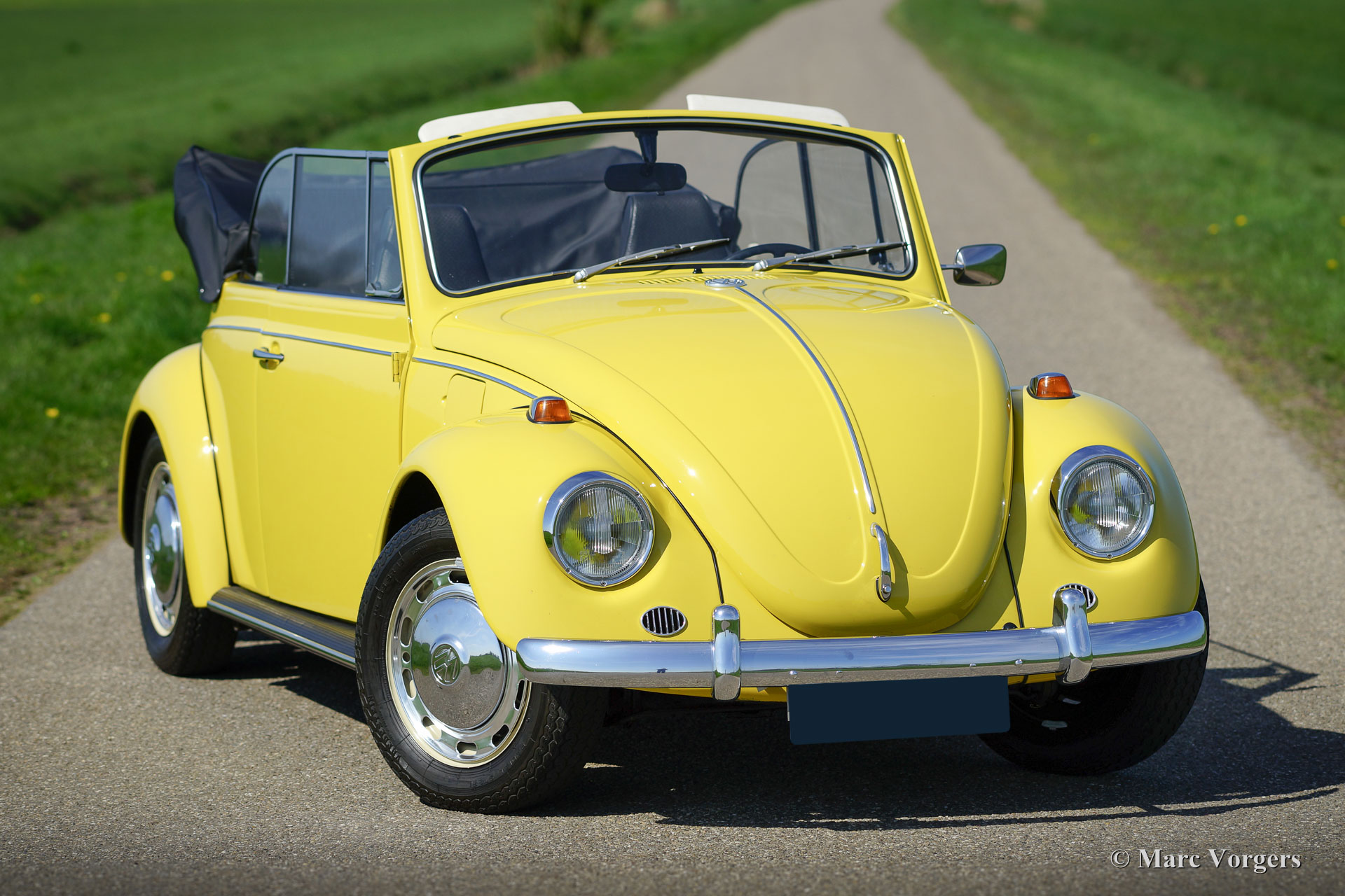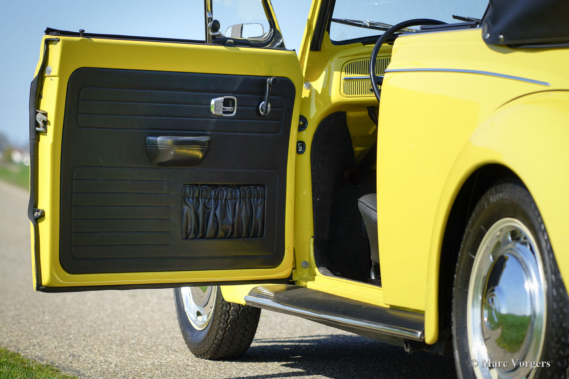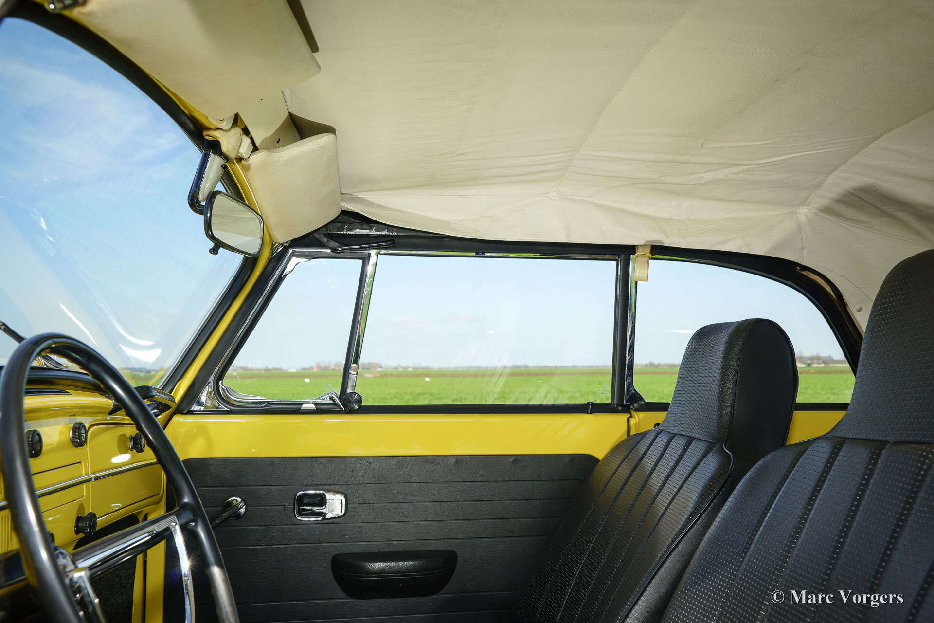 Volkswagen ‘Beetle’ 1300 cabriolet, year 1971. Colour yellow with a black vinyl interior. Black hood and black hood cover. This beautiful VW ‘Beetle’ cabriolet was extensively restored, a few years ago, by a Dutch VW specialist; the automobile is in superb condition and the car drives delightfully! The interior is fully original and in pristine condition! Prepare for a beautiful summer with this magnificent VW Beetle cabriolet!
