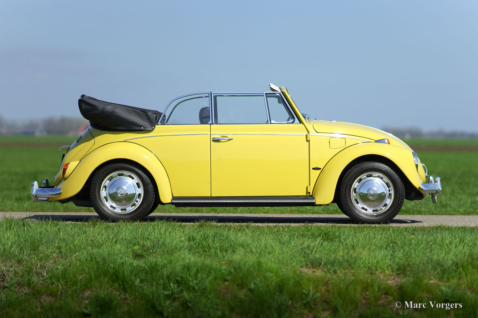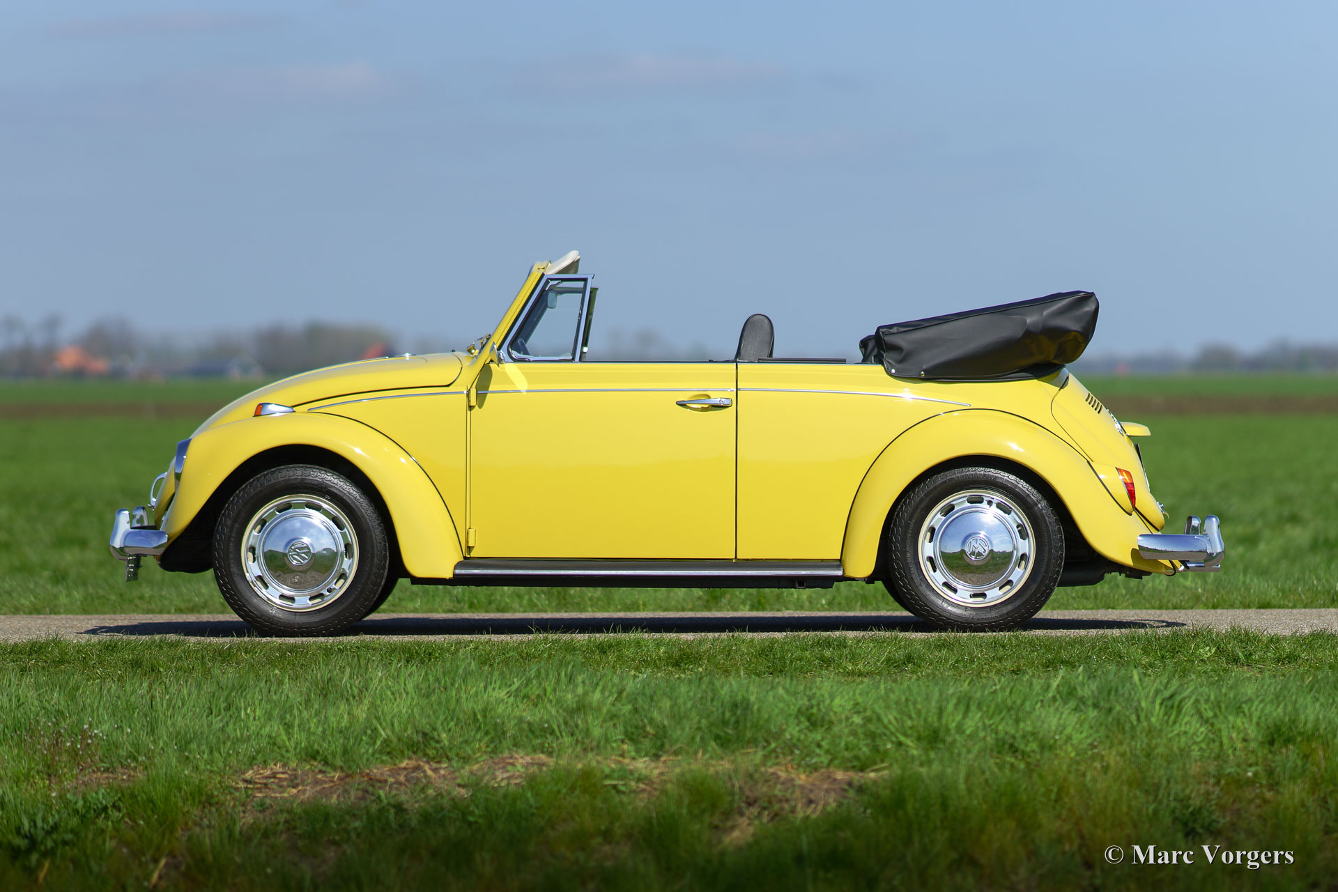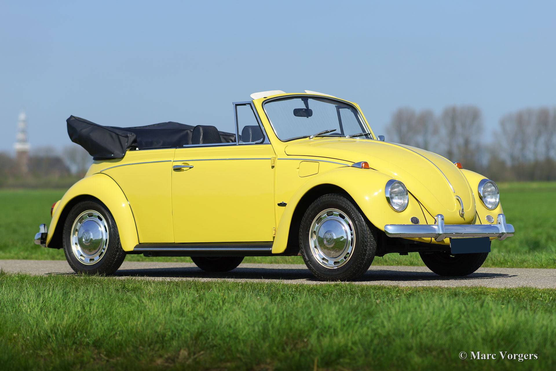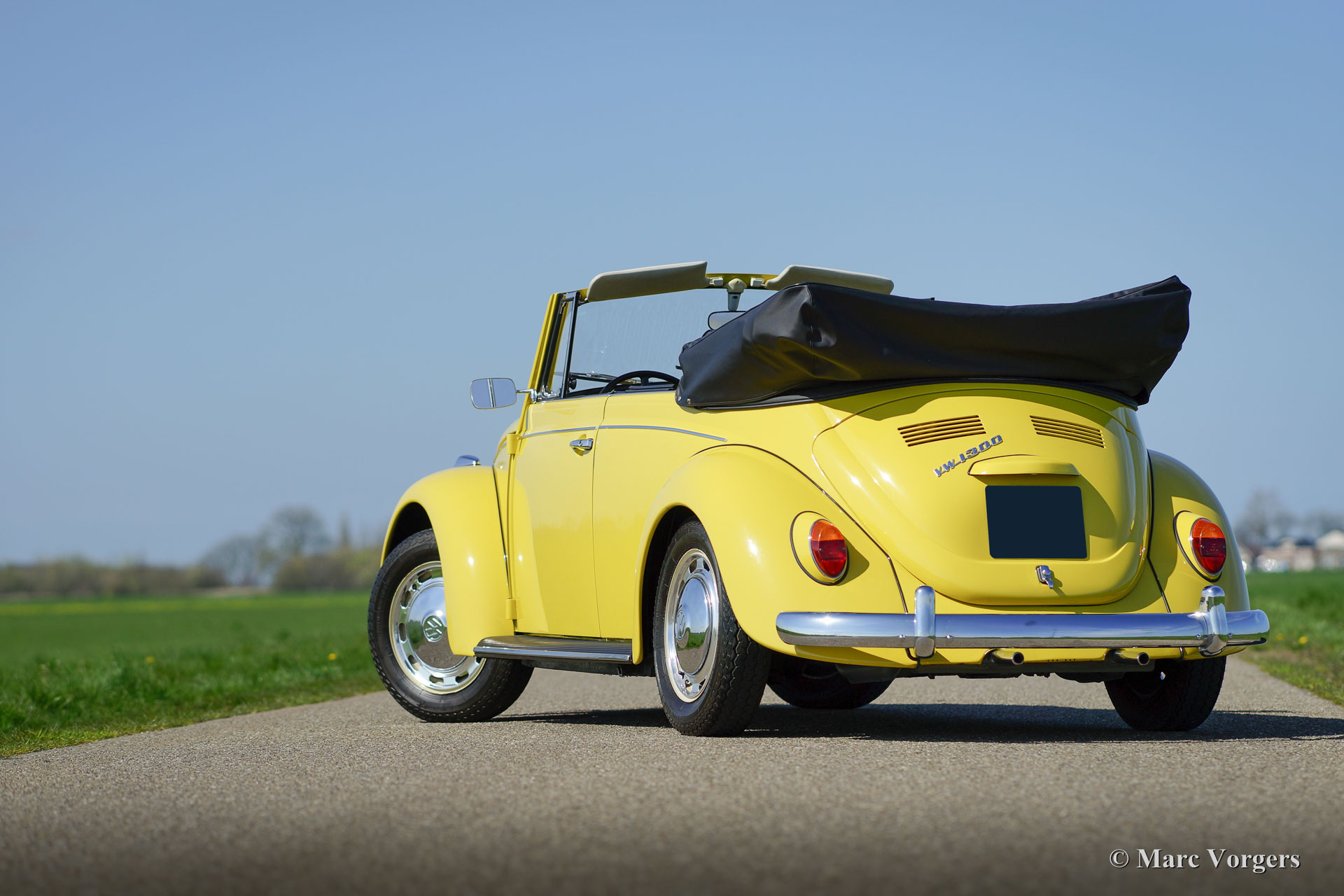 Volkswagen ‘Beetle’ 1300 cabriolet, year 1971. Colour yellow with a black vinyl interior. Black hood and black hood cover. This beautiful VW ‘Beetle’ cabriolet was extensively restored, a few years ago, by a Dutch VW specialist; the automobile is in superb condition and the car drives delightfully! The interior is fully original and in pristine condition! Prepare for a beautiful summer with this magnificent VW Beetle cabriolet!