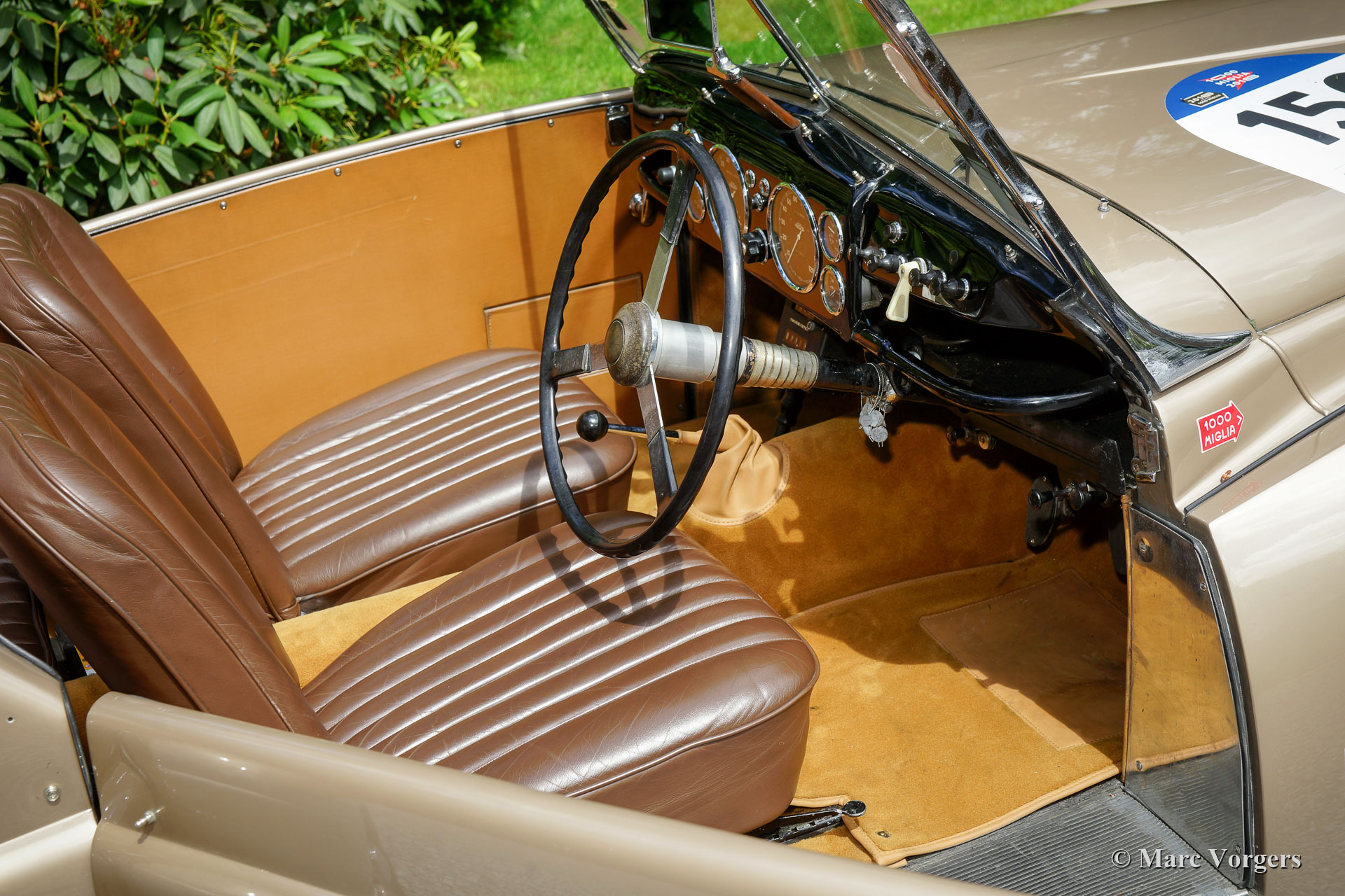Westland Healey Roadster, year 1947 (first registration 28 February 1947). Colour bronze metallic with a brown leather interior. This is a very special and rare British sports car; only 64 examples were built from 1946 until 1950. This magnificent Westland Healey was sold new in California, USA. In the year 1999, the automobile was imported to the Netherlands. From that moment on the car has known just one dedicated owner. This Westland Healey is a renowned participant in the revived Mille Miglia. The automobile has participated in this famous event in the years 2008, 2009, 2011, 2012, 2014 and 2018. All the lead ‘seals’, which were applied by Mille Miglia officials, are still present at the steering column. MM ‘approval’ decals are also still firmly attached to the windscreen as ‘silent witnesses’.