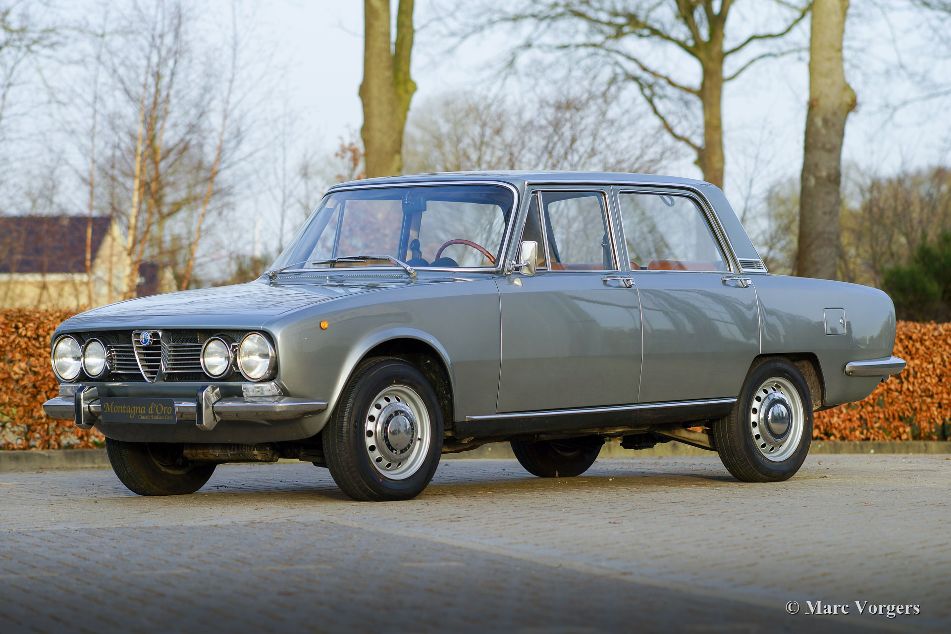 Alfa Romeo 1750 Berlina, year 1970. Colour grey metallic (Grigio Medio Metallizatto AR 728) combined with a cognac brown (wild boar) leatherette interior and dark grey carpet. This stylish Alfa Romeo 1750 Berlina was sold new in Italy. We have imported the car to the Netherlands recently, the car was given a wonderful classic registration number: PM-05-55. This Alfa Romeo 1750 Berlina is a true time travelling machine, the car is in a super original condition, and it shows all the original details! The car shows light signs of use and age, a fantastic vintage patina. You will find more wonderful details every time you have a look at the car. The Berlina 1750 features the same engine, drive train, suspension, and brakes as the sporty 1750 GT Veloce ‘Bertone’ coupé, thus giving the Berlina sports car potential with 120 hp and a top speed of 180 km/h. The 1750 Berlina is one of the desirable ‘power’ sedans of the late 1960s and early 1970s. This stylish vintage Alfa Romeo will give you all the thrills of classic Italian motoring. A great and spacious ‘saloon’ for road trips across Europe, or to visit the Mille Miglia in Italy with partner / friends! This car features with a special article in the Dutch Carros / KNAC Magazine, Issue 1, 2021.