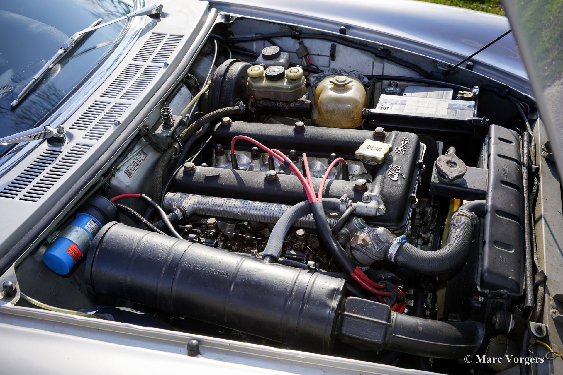 All these Spider engines are of the 105 (Nord) type, a advanced full aluminium four cylinder in-line engine with double overhead camshafts. The power is being transmitted to the rear wheels by a five-speed gearbox. The Spider featured disc brakes all around from the start of production. In contrast to various two passenger roadster and convertible cars of that time, the Spider Veloce has a very handy construction for its drop-head: the top can be opened and closed in less than 10 seconds! Compared with the British "roadsters" from the 1960s and 1970s, the Spider Veloce is not really a sports car but more of a competitive convertible touring car, or an open GT, if you like: practical, spacious, easy to handle, comfortable and fast.