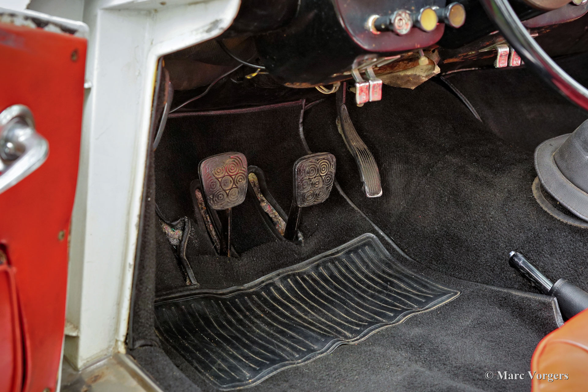 Alfa Romeo 2000 Touring Spider, year 1959. (First registration 28 February 1959.) Colour white combined with a red leathercloth interior and black carpet. This stylish Alfa Romeo 2000 Touring Spider was sold new in the USA to an Italian who lived in Florida. This owner took the Alfa Romeo with him to Italy at a certain point in time. The Italian owned the car for fifty years before it was sold to a Dutchman in 2009. The car was brought to the Netherlands and registered for road use in 2010. The car was kept in an Alfa Romeo collection and yearly driven to the Schloss Dyck Classic Days in the period 2012-2019 (Bedburdyck, in North Rhine-Westphalia, Germany). This Alfa Romeo 2000 Touring Spider is a true survivor. The car is very original and nothing much was done to it over the decades. The car was repainted a long time ago, and in the Netherlands the original engine was exchanged by another motor of the same type. The original engine is now fully overhauled and can be purchased separately (asking € 10.000). This Alfa Romeo Touring 2000 Spider is in a fair overall condition, a driving project car. The car drives and is road legal in the Netherlands. Recently some rips in the seats were repaired (the seats need new foam), the car was made running again, and the brakes were serviced (frozen due to five years of inactivity). This Alfa Romeo Touring 2000 Spider can be modestly uprated and driven as a survivor, or the automobile can be partly/fully restored. The choice is to a new owner and Alfa Romeo enthusiast!