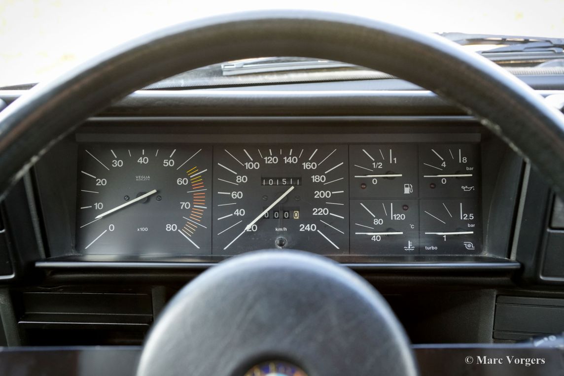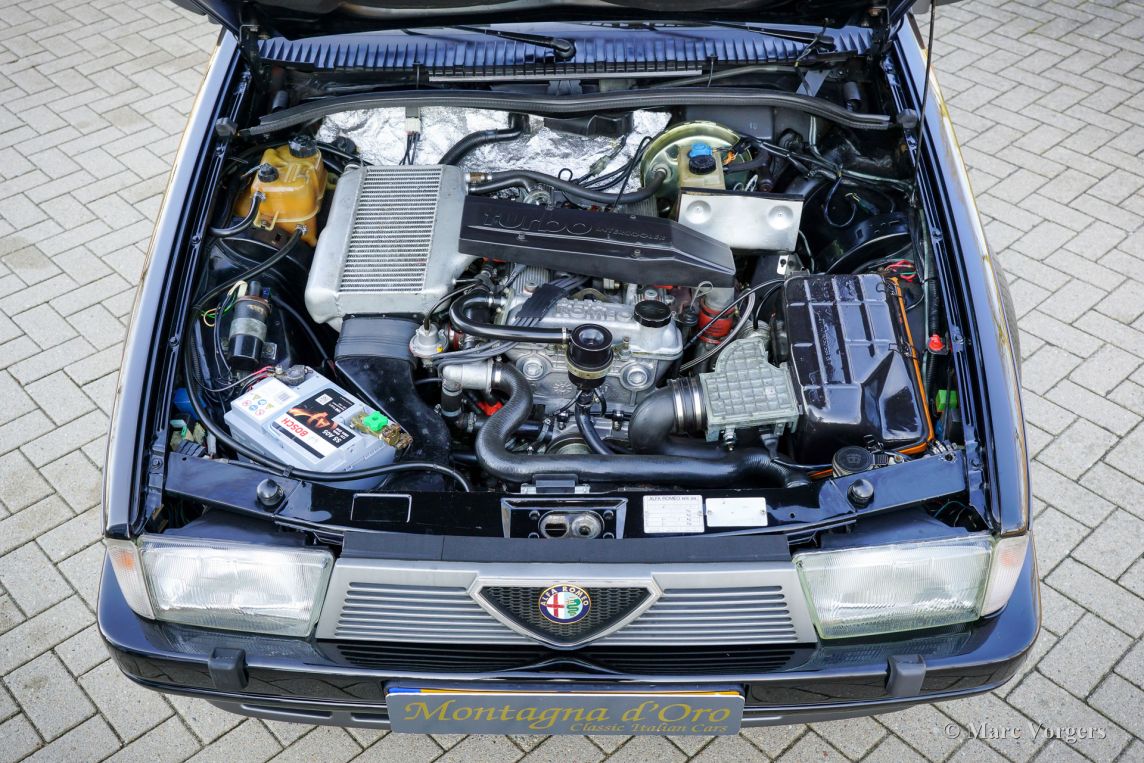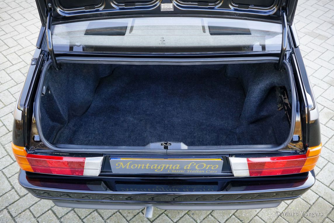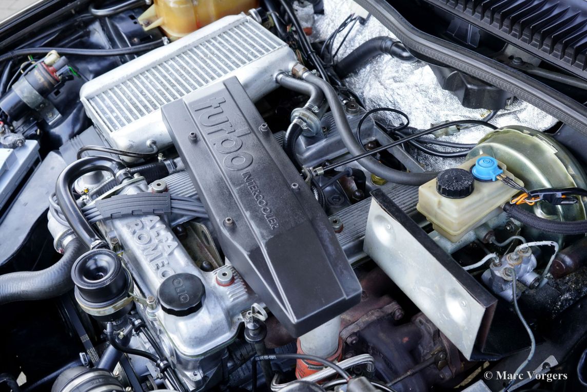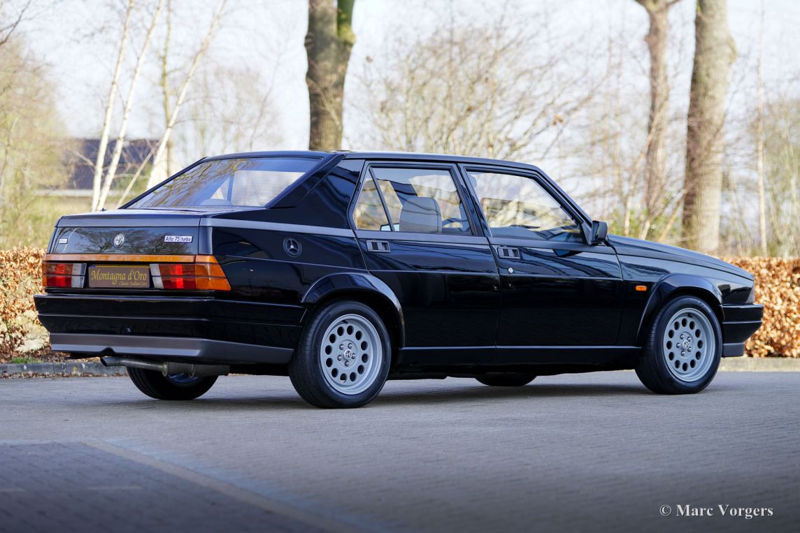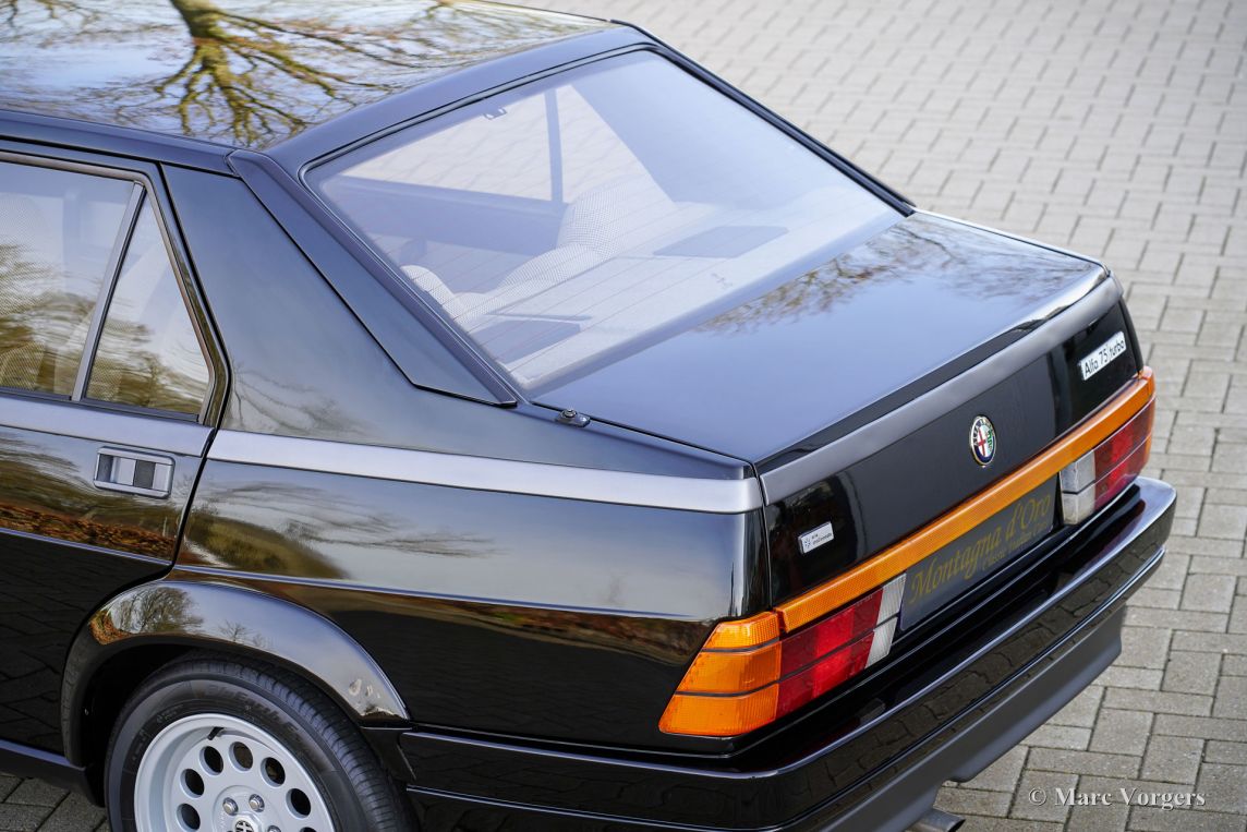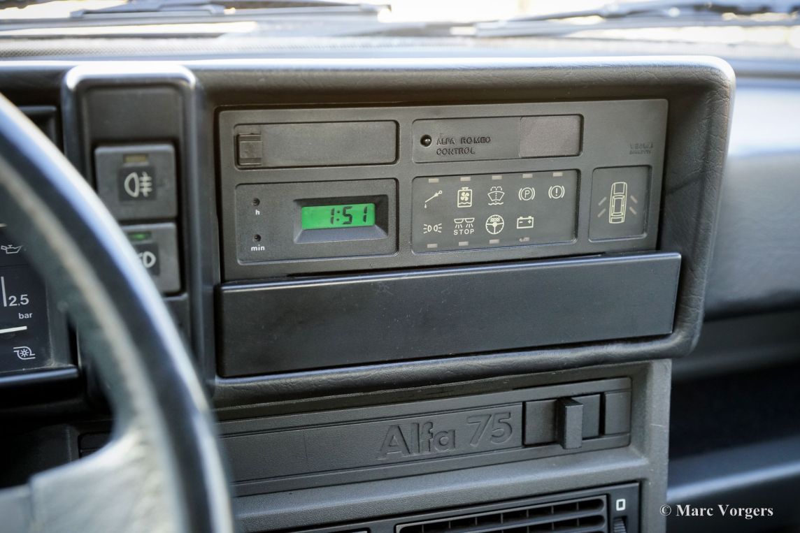 Alfa Romeo 75 1.8 Turbo, year 1986 (first registration 1 January 1986). Chassis (VIN) number ZAR162B1000050918. Exterior finished in black (Nero AR 913) combined with an interior in black, dark grey, and light grey tones. The like new seats are clad in checked fabric (very light grey and dark grey) with dark grey leather patches on the side seat squabs of the front seats. This magnificent Alfa Romeo 75 Turbo was sold new in Italy.  A very special option is factory fitted air-conditioner! Several years ago, this stunning car was refurbished and overhauled by the renowned Museo Fratelli Cozzi from Legnano, a Milan suburb. They have overhauled the engine and the gearbox and fitted a magnificent brand-new interior! In 2024 the car was imported to the Netherlands. Recently the paintwork was perfected and given a Labocosmetica glass coating, and new original Ronal alloy wheels were fitted. Service invoices are present. To further perfect this rare 75 Turbo we have purchased original new rear lights, and a rear reflector bar which will be fitted shortly. This tremendous Alfa Romeo 75 1.8 Turbo has driven 101.511 kilometres from new. The car is in a stunning near perfect condition, and it drives like a new car! You will be hard pressed to find another example in this pristine condition! Exact production figures are not known for the Alfa Romeo 75 1.8 Turbo, but Alfa Romeo had to build at least 5000 cars to meet the FIA homologation for Group A touring cars. Under the bonnet you will find the 1800 cc. inline four-cylinder engine, with a Garrett T3 turbocharger and intercooler, producing 155 hp and 226 Nm of torque. The turbo gave the 75 brisk performance for its time, including a top speed of 210 km/h (130 mph) and acceleration from 0-100 km/h (62 mph) in 7.6 seconds. (That's still very fast with the soft whistle of the Turbo in your ears!) These figures placed the 75 Turbo firmly among the top compact executive cars of its time. This is your chance to acquire an Alfa Romeo 75 1.8 Turbo in near immaculate collector condition coming from the renowned Museo Fratelli Cozzi!