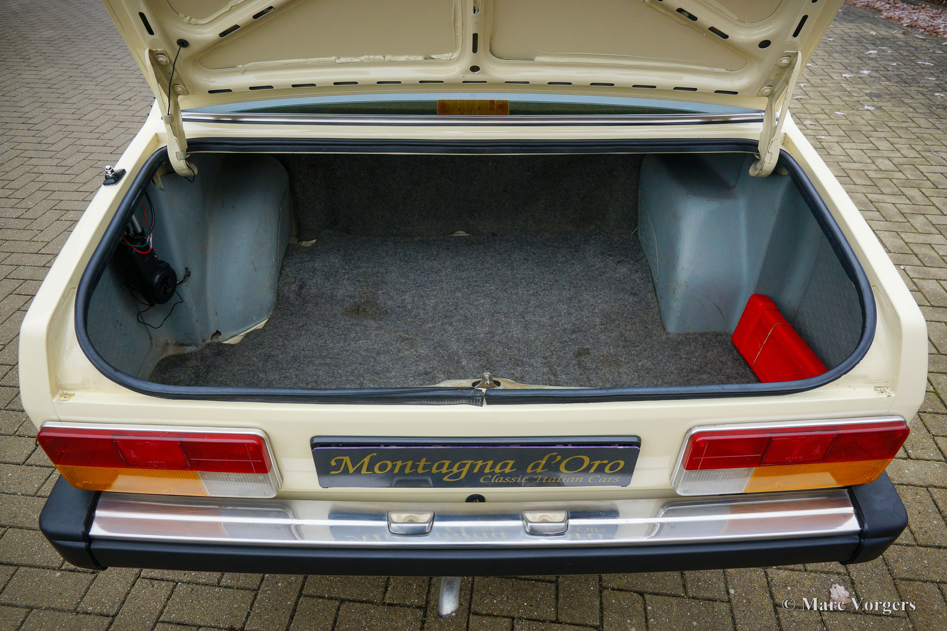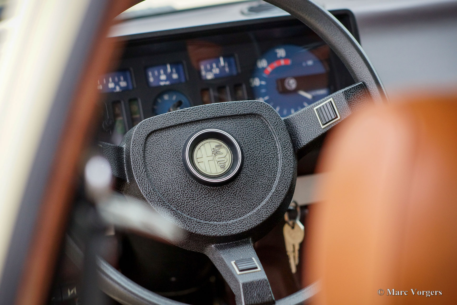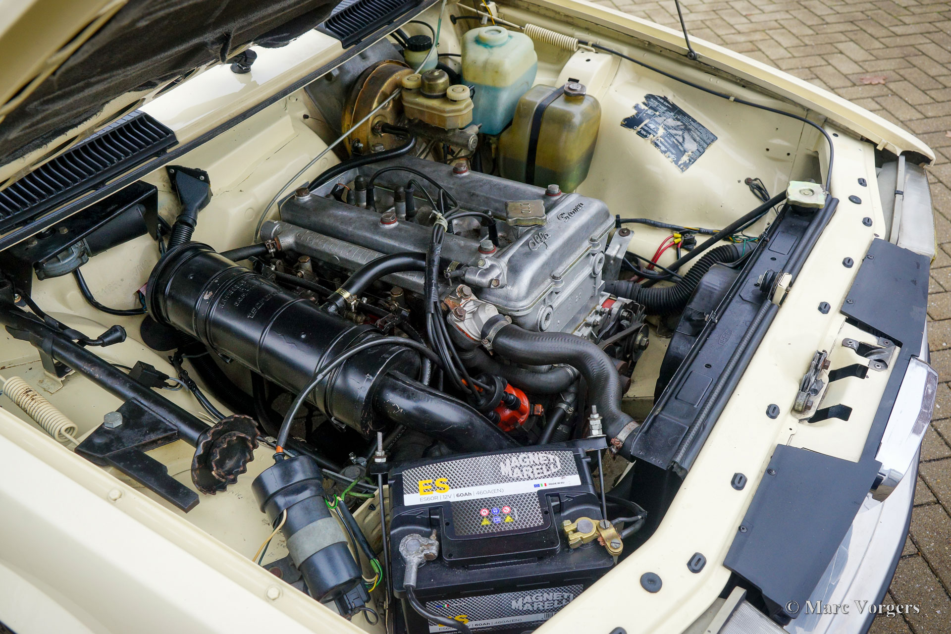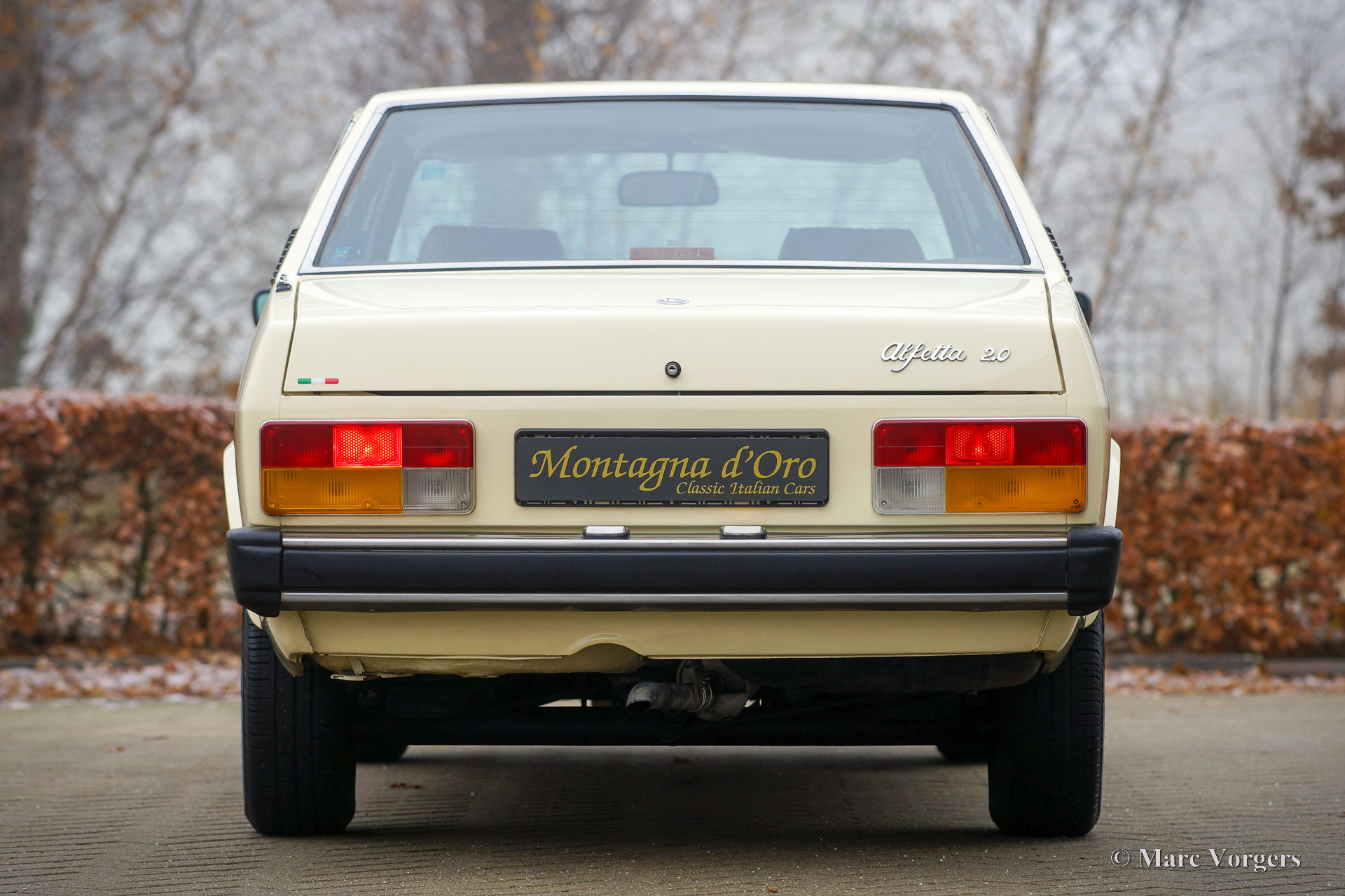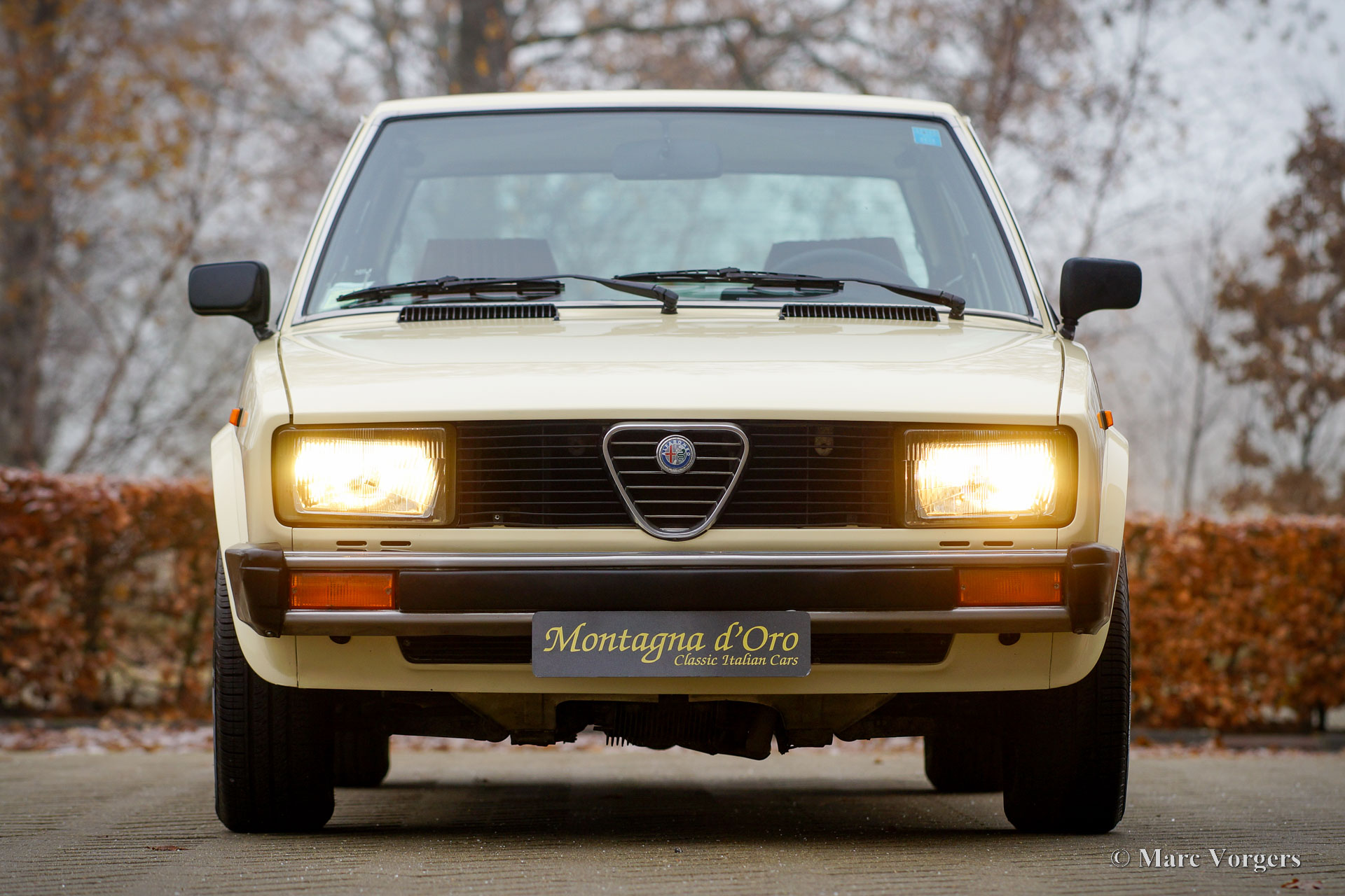Alfa Romeo Alfetta 2.0, year 1977 (First registration 13 December 1977). Colour Ivory (Avorio, AR code 103) combined with a brown/ cognac coloured interior. This fantastic Alfa Romeo Alfetta was sold new in Campegine (RE), Italy to Mr. D. Attolini. This is the first series Alfetta 2.0 which was introduced on the Geneva motor Show in 1977. The new Alfetta 4-door saloon model differed from the 1800 and 1600 with a completely redesigned nose, rectangular head lamps, and a fully redesigned modern interior with better materials. Only the 1977 cars featured a dashboard with horizontal aluminium strip and ‘2000’ in the centre. In 1978 this was changed to a plastic ‘wood’ strip without the 2000 marking. The Alfa Romeo Alfetta is one of the best-balanced, and best driving, sporty 4-door saloon cars of the period. The layout with front engine and transaxle gearbox located near the rear axle makes that the Alfetta has a near ideal weight distribution. The full aluminium engine with twin overhead camshafts, the five-speed gearbox, and the De Dion rear axle, complete the sporty background of the Alfetta. This wonderful and fully original example is in an excellent condition inside and out! The odometer shows 93.177 kilometres. The car comes complete with the original service book and instruction book. Also included is a ‘log-book’ in which the previous owner(s) have kept track of important updates. The history is documented from day 1, service invoices are also present. Recent work was carried out perfectly by the last owner; At 86,880 km (February 2022) fluids were changed, engine oil (including filter) and gearbox oil. At 87,680 km (June 2022) the air filter was replaced. At 87,850 km (October 2022) the valve cover gasket was replaced, both track rods were renewed, and the wheels/ steering was aligned. New original Brembo disc brakes were fitted, new brake pads, and the brake oil was changed (DOT 4). This Alfa Romeo Alfetta with the ‘1977 only’ dashboard style is a true time capsule in excellent condition, a fantastic find for the Alfa Romeo collector and enthusiast.