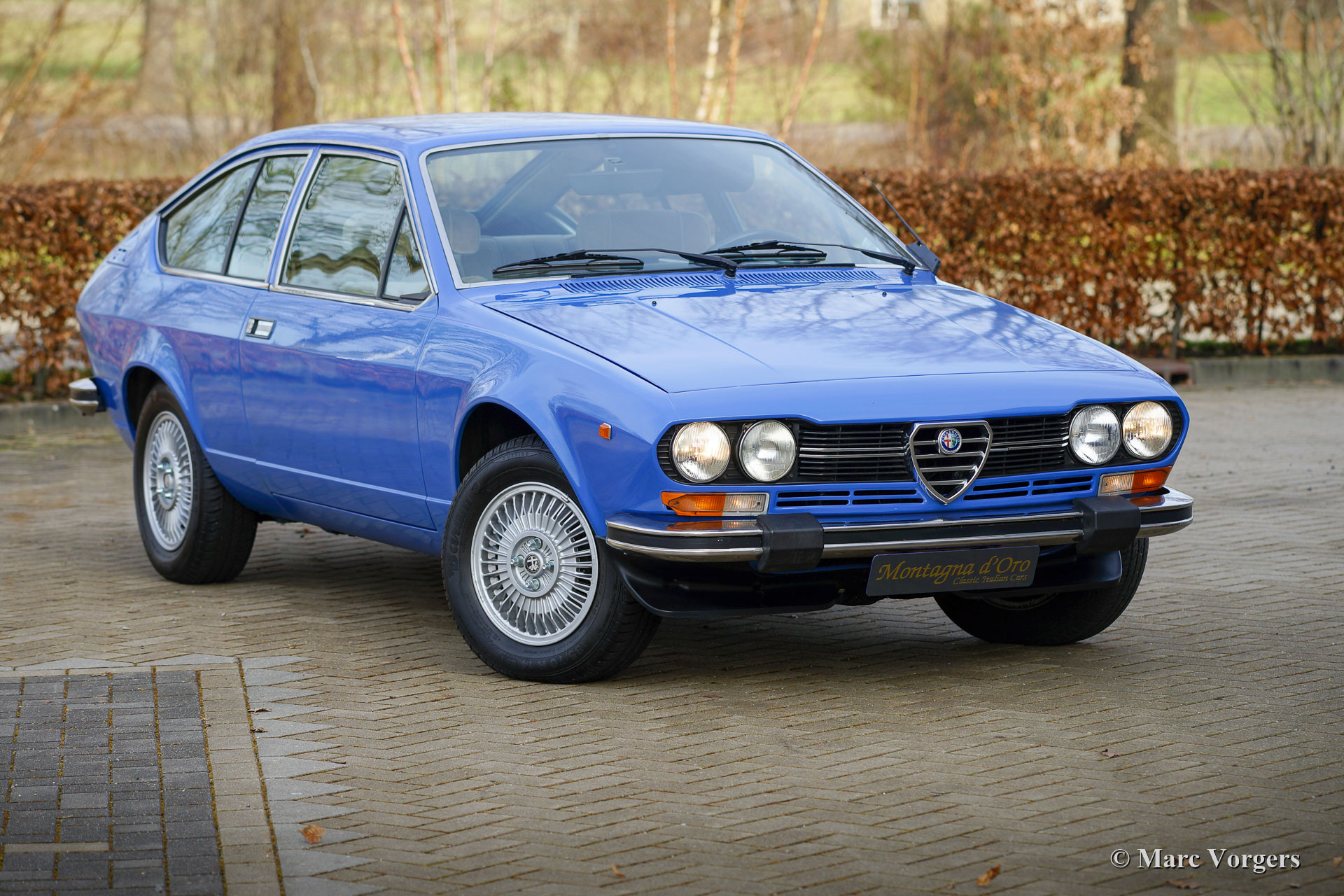 Alfa Romeo Alfetta GTV 2000, year 1976. Chassis number AR11636*000225X*, engine number AR01623*000212X*. Colour blue (Azurro Le Mans AR 348) combined with a light beige cloth interior and brown carpet. This gorgeous Alfa Romeo GTV 2000 was sold new in Italy, the first owner was Pietro Gallettie from Raguso. Incredibly special is the fact that the car was factory fitted with air-conditioning. We have imported the car from Italy recently, the car still has an Italian registration. From new the car has driven only 71.290 kilometres, and it is in an exceptionally good and super original condition throughout! Only minimal signs of use and age can be found. The interior is fully original, the carpet somewhat discoloured by the sun. The engine room is super clean and is shows all the original details. The bodywork presents a wonderful panel fit and very good paintwork. The underside is clean and dry and it shows a good exhaust and fresh shocks absorbers around. The car has recently received full service in Italy, and it comes well documented. The service booklet and the original warranty card are present. This Alfa Romeo Alfetta GTV 2000 drives and handles perfectly. The GTV 2000 was a boyhood dream of many, this wonderful example is a true time travelling machine that will bring back the deeply felt car passion of the 1970s!