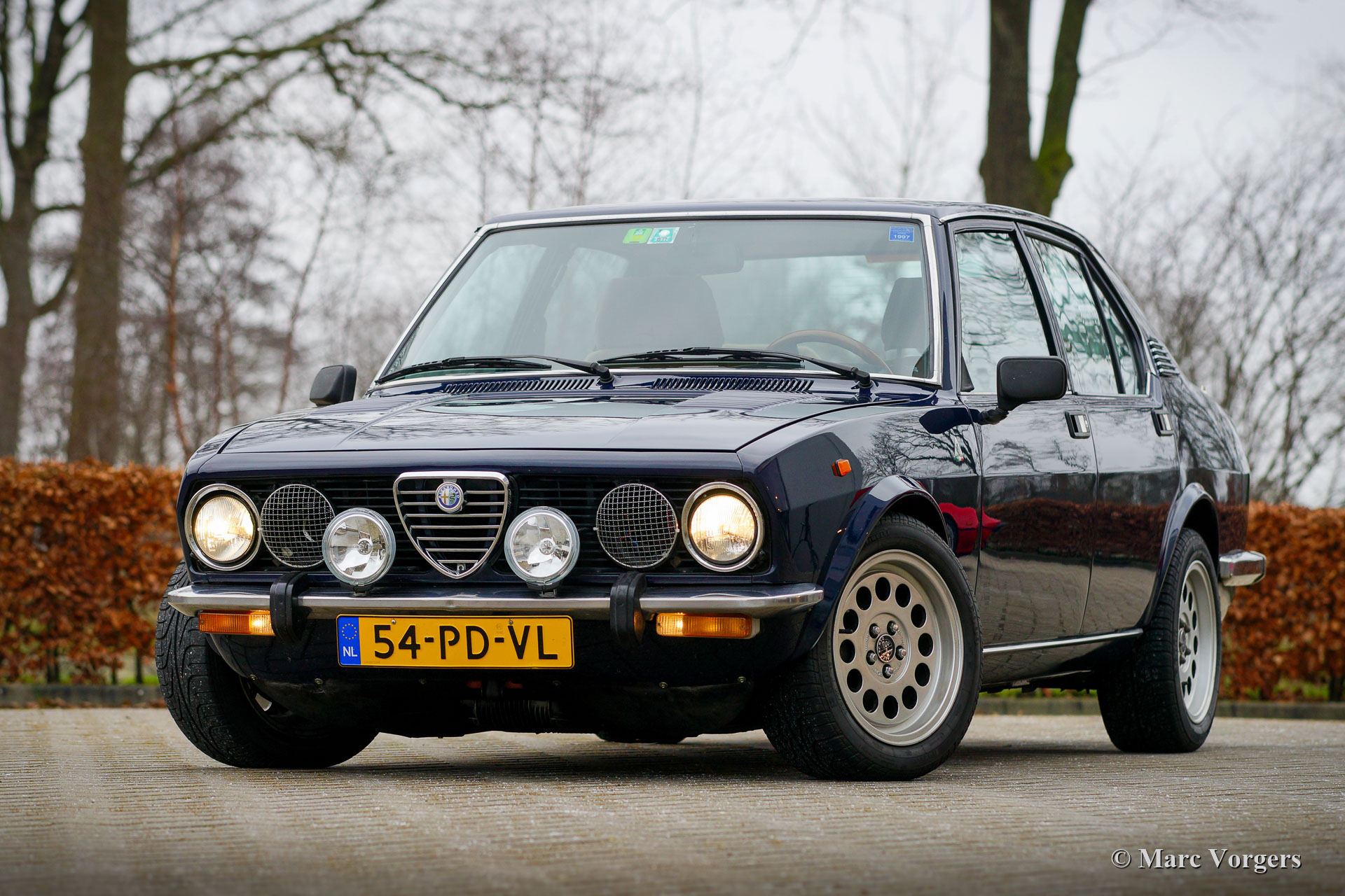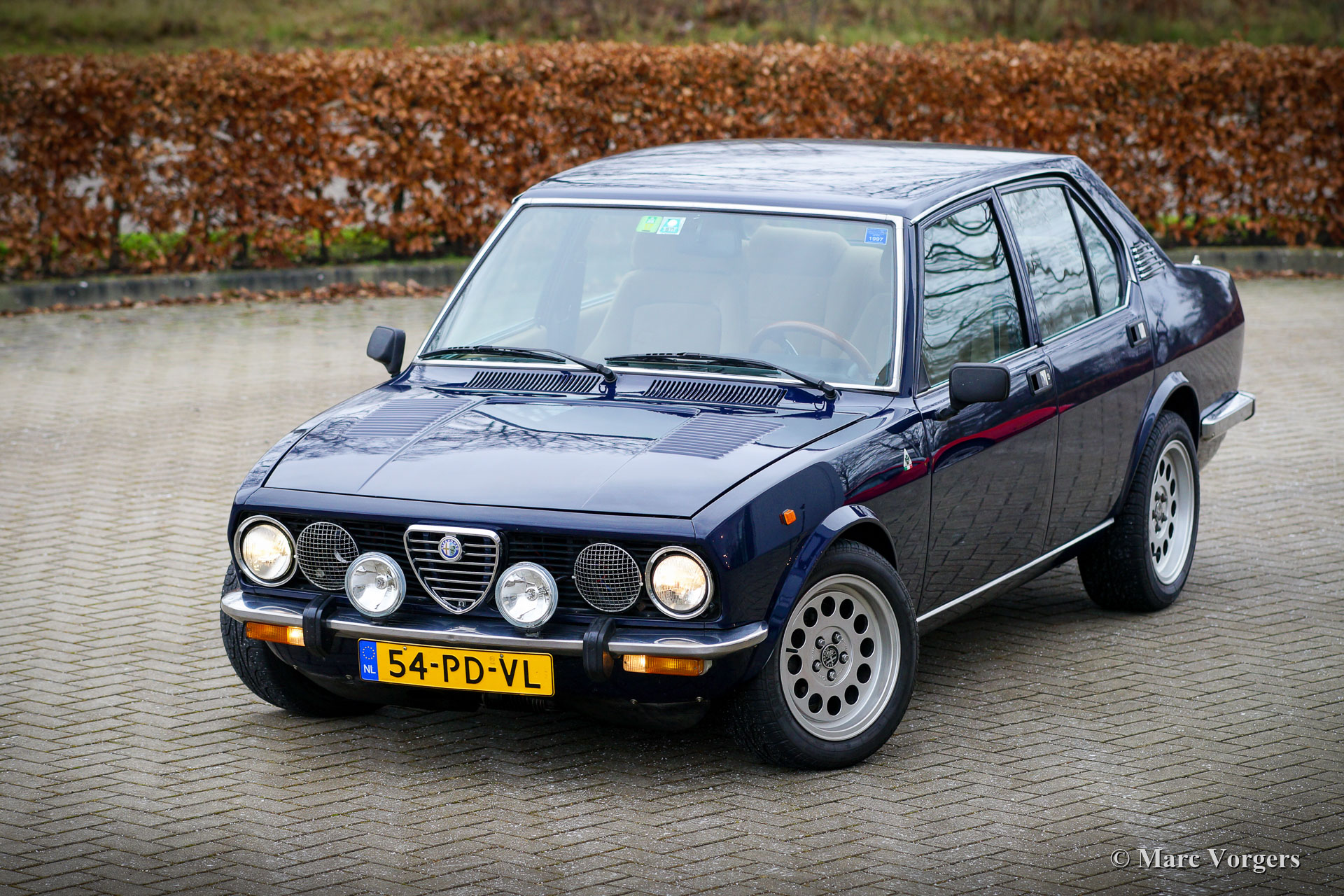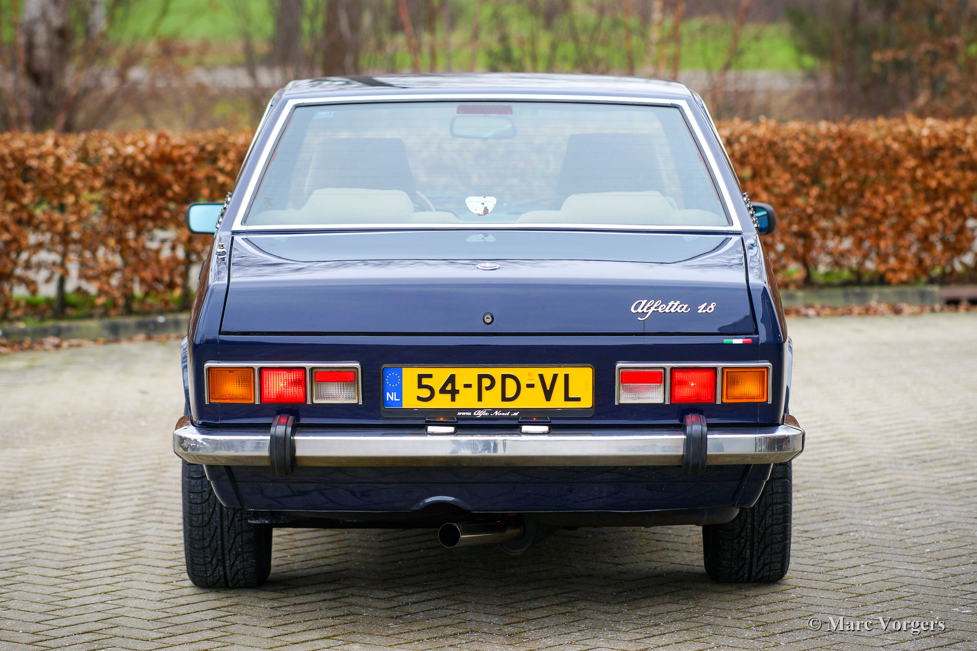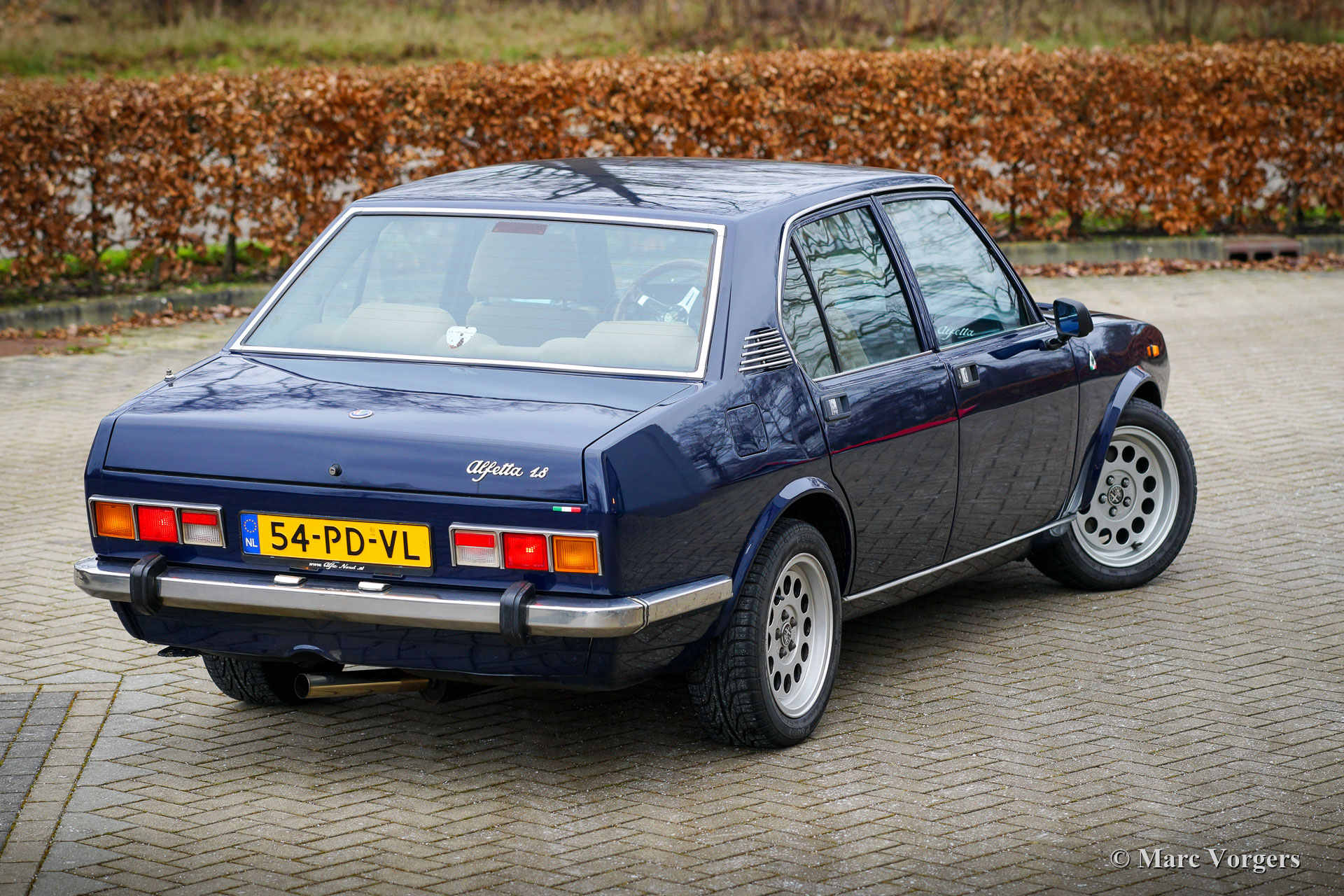 Alfa Romeo Alfetta Twin Spark, 1980. Colour dark blue “Blu Olandese” (AR343) combined with a beige cloth Recaro interior and black carpet. This purposeful Alfa Romeo Alfetta was imported to the Netherlands in 2004. In recent years, the Alfetta was given a sheet metal body restoration in which many original parts were used (all doors and left front wing). After that the car was given a wonderful paintjob in the original colour. The interior was fitted with the special Alfa 75 “Numerata” Recaro seats, and the back seats and the door cards were given new upholstery. Also, the car was extensively upgraded, and mechanically rebuilt, the Alfetta 1.8 Twin spark is now an impressively fast 2.0 Twin Spark with 180 bhp and 202 Nm torque. Below you will find a list of all the special (tuning) upgrades. This purposeful Alfetta Twin Spark is in exceptionally good condition and the car drives very sporty! The odometer reads 63.972 kilometres, the newly overhauled engine, gearbox, and drivetrain have driven 6000 kilometres. This Alfa Romeo Alfetta is a magnificent driving machine for road or track!