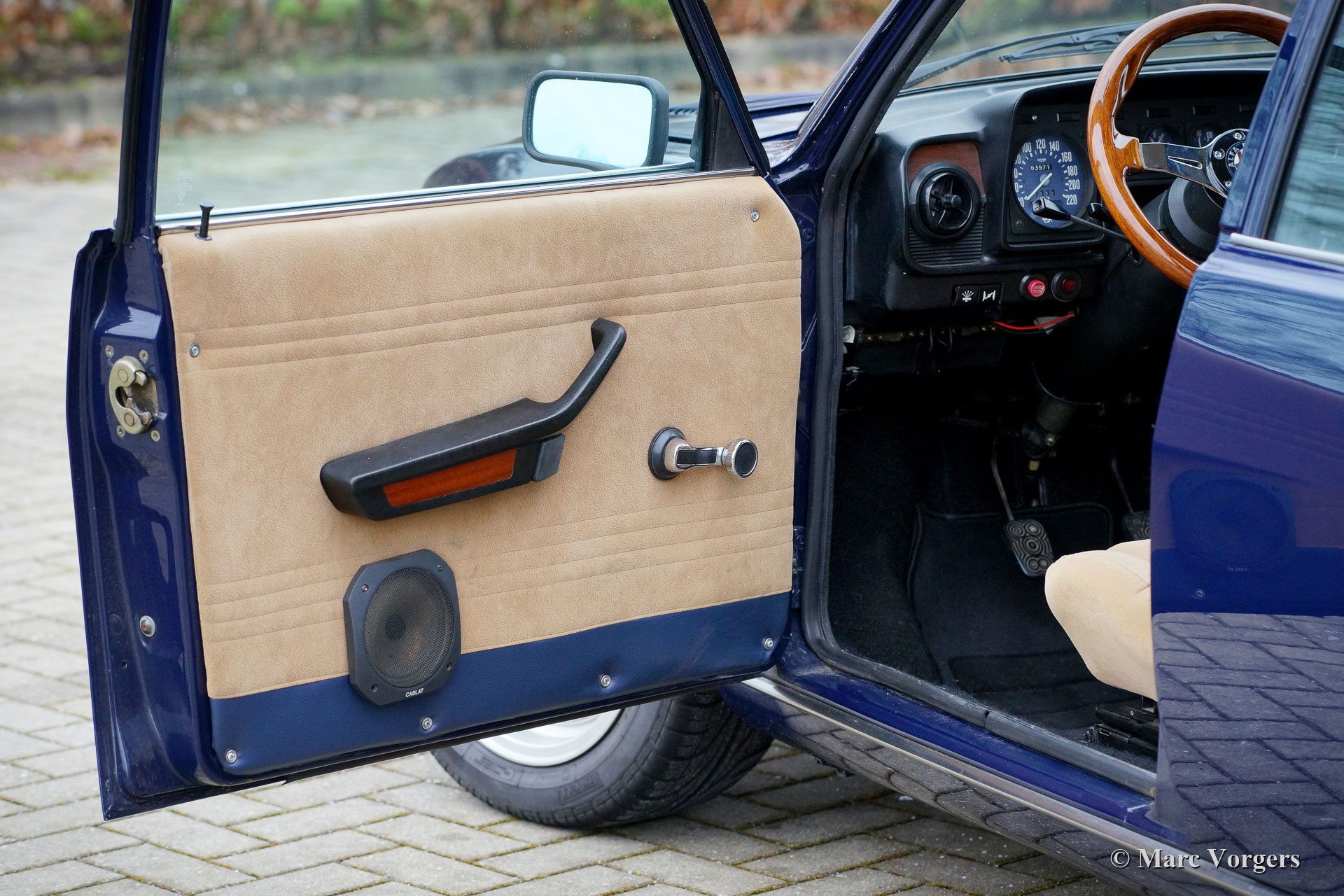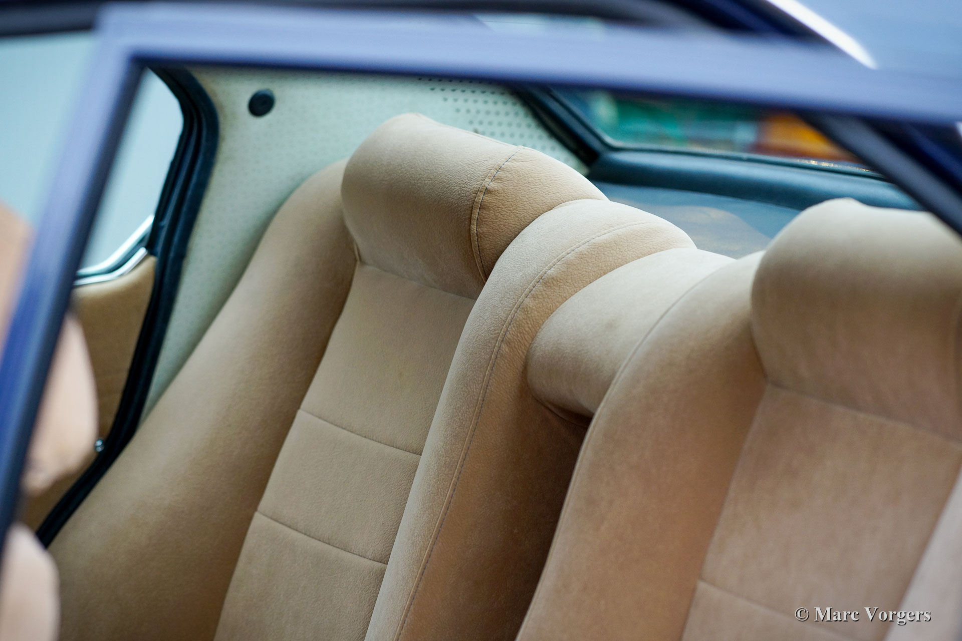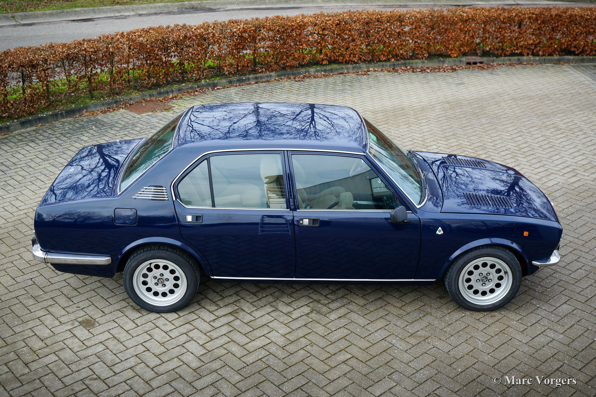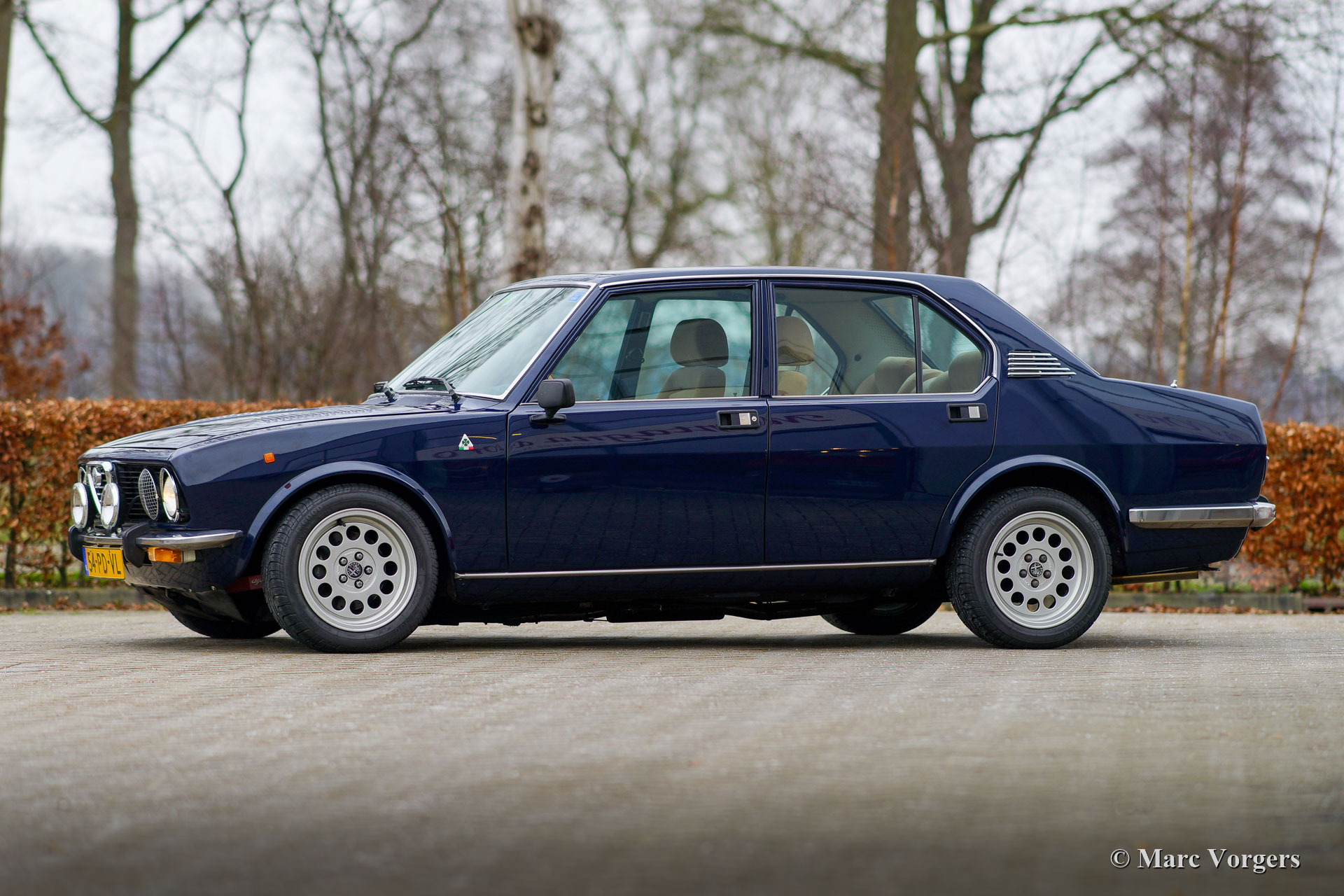 Alfa Romeo Alfetta Twin Spark, 1980. Colour dark blue “Blu Olandese” (AR343) combined with a beige cloth Recaro interior and black carpet. This purposeful Alfa Romeo Alfetta was imported to the Netherlands in 2004. In recent years, the Alfetta was given a sheet metal body restoration in which many original parts were used (all doors and left front wing). After that the car was given a wonderful paintjob in the original colour. The interior was fitted with the special Alfa 75 “Numerata” Recaro seats, and the back seats and the door cards were given new upholstery. Also, the car was extensively upgraded, and mechanically rebuilt, the Alfetta 1.8 Twin spark is now an impressively fast 2.0 Twin Spark with 180 bhp and 202 Nm torque. Below you will find a list of all the special (tuning) upgrades. This purposeful Alfetta Twin Spark is in exceptionally good condition and the car drives very sporty! The odometer reads 63.972 kilometres, the newly overhauled engine, gearbox, and drivetrain have driven 6000 kilometres. This Alfa Romeo Alfetta is a magnificent driving machine for road or track!