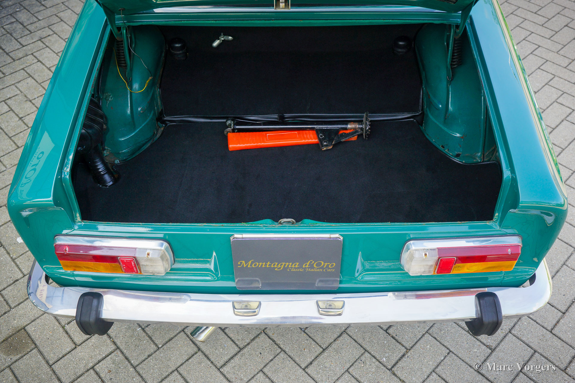 Alfa Romeo Giulia Nuova 1300 Super, year 1975 (first registration 15 May 1975). Colour ‘pine green’ with leatherette/cloth two-tone brown/ochre interior and black carpet. This magnificent Alfa Romeo Giulia was imported to the Netherlands in December 2017, the car is being cherished by its current owner since 2018. This gorgeous Alfa Romeo Giulia Nuova is in a wonderful, very original, and very good condition! The odometer reads 37.740 kilometres, and the car was very well serviced and maintained. The bodywork is very sound, and the panel fit is beautiful! The only spot of minor corrosion can be found on the bottom centre edge of the front valance under the front bumper. The suspension was slightly lowered, the ‘stance’ is great, and the driving experience is excellent! The original interior is in a pristine condition, giving the passengers a glorious step back in time! The car is fitted with the original 14-inch steel wheels shod with Firestone 185/70 radial tyres, two door mounted rear-view mirrors, original jack, spare wheel, and a very rare compact Voxson Tanga FM radio with anti-theft sled of which the functionality could not be confirmed. This is a fantastic Alfa Romeo Giulia Nuova in very good condition. This wonderful Alfa Romeo classic is ready for any adventure in the hands of a new owner!