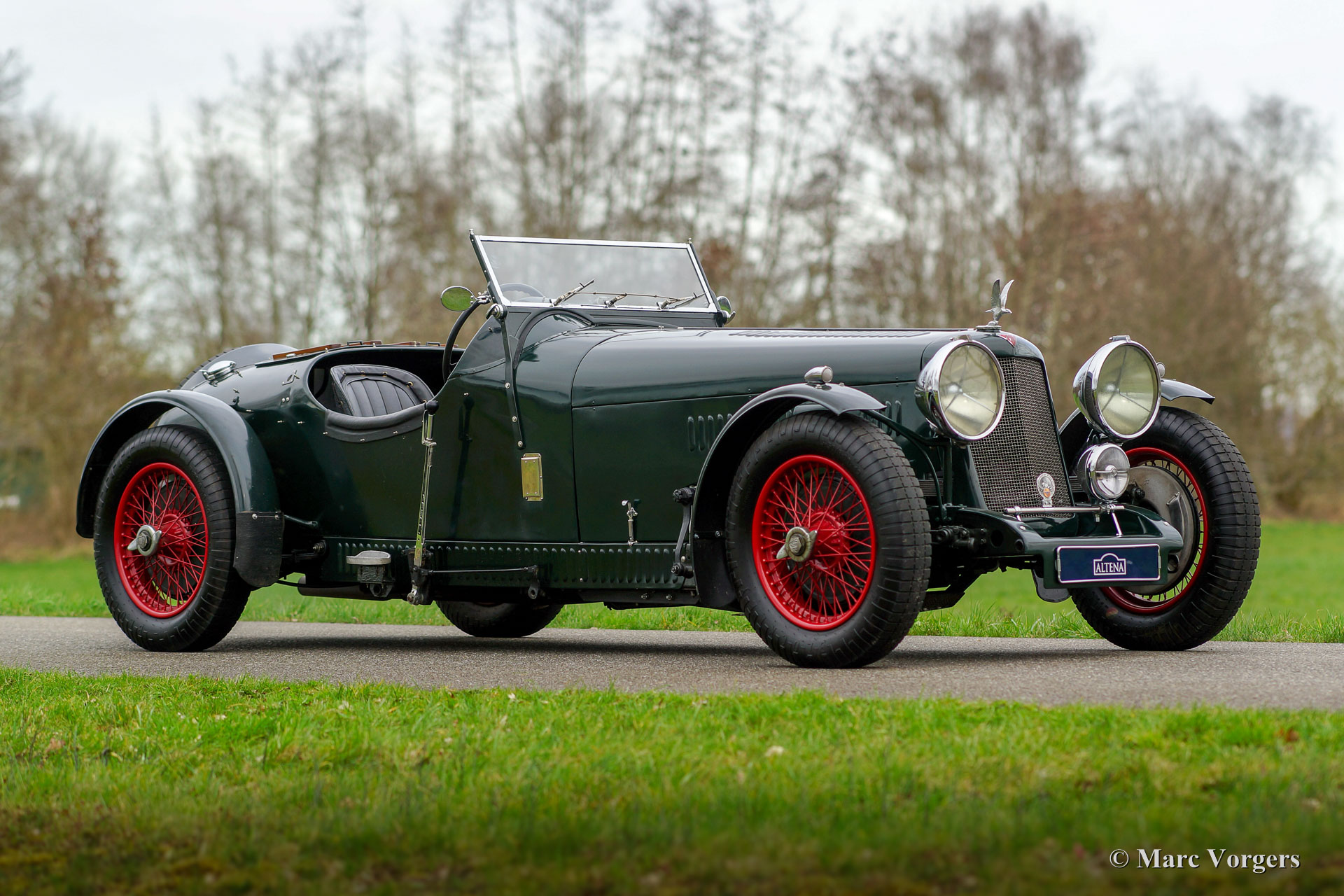 Alvis 4.3 Litre Special, year 1939. Chassis number: 14833X. Colour dark British Racing Green with a black leather interior. Black soft-top and tonneau-cover This fabulous Alvis Special was built fifteen years ago by an Alvis specialist in the United Kingdom. The build was based upon a rare original 4.3 Litre Alvis chassis and with the use of a rare Alvis 4.3 Litre straight-six engine fitted with three S.U. carburettors. Photos of the build are present as is a complete documentation file. This splendid Alvis special is in excellent condition and the car drives perfectly! The engine delivers a lot of torque and power and the exhaust-note is magnificent! The interior of this Alvis Special was perfectly laid-out, it offer space enough for longer drivers / passengers and the erected soft-top does not limit the freedom of movement which is seldom seen on this type of cars. Another practical aspect is the large luggage compartment behind the seats. A FIVA identity card and the original British papers are present, the car can be road-registered in any country. This fine Alvis 4.3 Litre special is ready for every outing or challenge in the hands of a new owner!