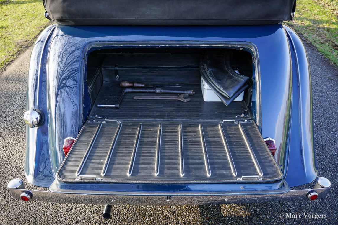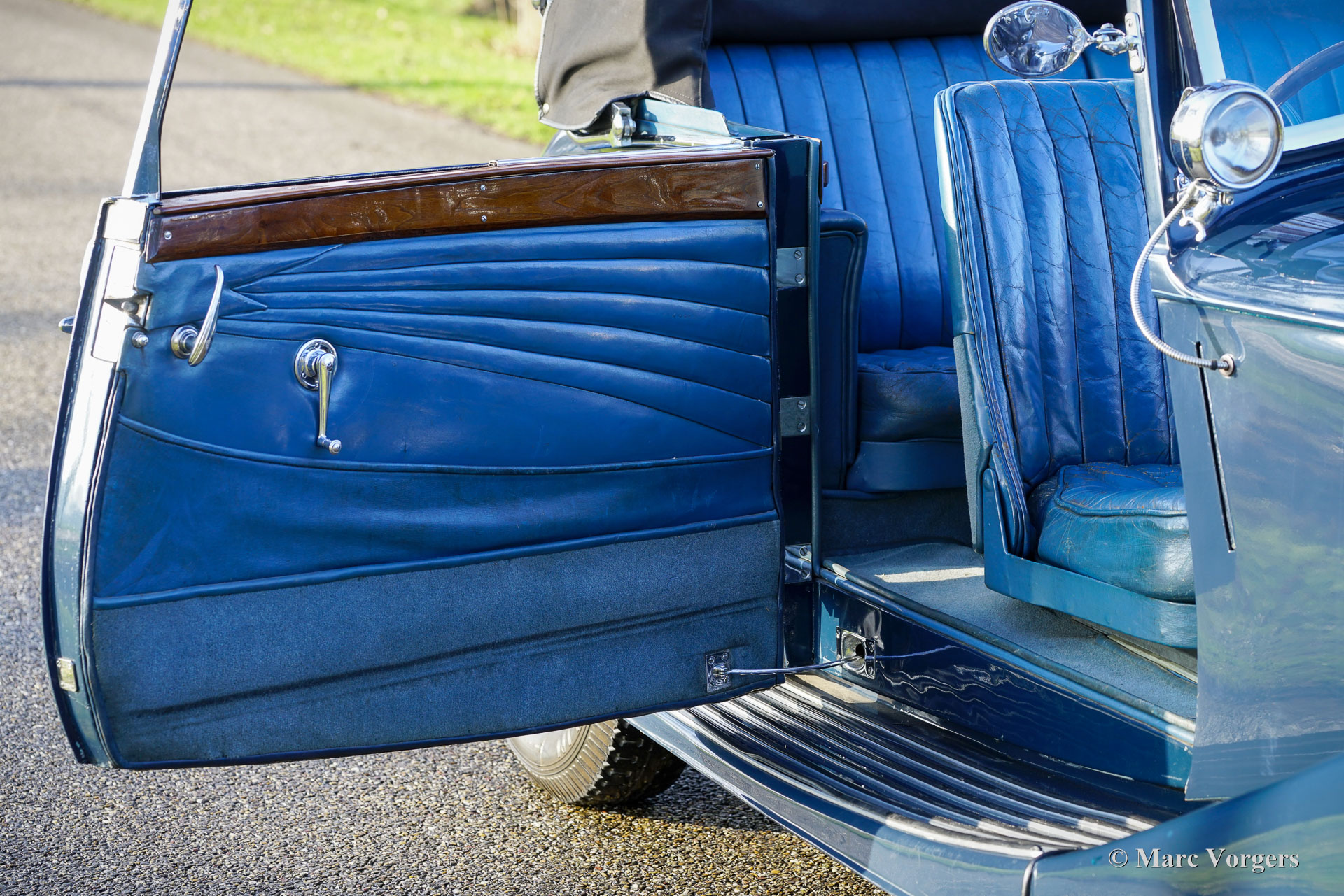 Alvis Speed 25 ‘Charlesworth’ DHC, year 1936. Chassis (VIN) number 13362SB, engine number 15149, body number 14128.12.36 (its factory original Charlesworth body). Bodywork finished in blue combined with a blue leather interior trimmed with blue carpet. Black mohair hood and hood-cover. This glorious Alvis Speed 25 is in a unique and wonderfully preserved original condition! The car was sold new in the United Kingdom (UK) and imported to the Netherlands in the past. This very special ‘survivor’ is mechanically and technically fully up to date and the automobile drives very well. Alvis was a highly esteemed innovative car manufacturer in the 1920s and 1930s. They were one of the first experimenting with front wheel drive (racing) cars and the firm produced all the major components by themselves. Alvis was one of the first British manufacturers offering fully synchronized gearboxes, a feature also present on this fine Speed 25. The Alvis Speed 20 and Speed 25 model series offered the best you could buy in the sub-top echelon of the market. The ride, the handling, and the operation of these Alvis cars is superb and second to none compared to other comparable British offerings of the period. Only the much more expensive, top of the market, Rolls Royce and ‘Derby’ Bentley (MK IV) cars could match the level of engineering and ease of operation. Even now, ninety years from new, you can experience the quality and enjoy the ease of operation. In total 391 Alvis Speed 25 chassis were produced of which 329 were fitted with a Charlesworth body. Of these 329 cars 62 cars were DHC (Drophead Coupe) models. This super original example comes with a very extensive and complete history file, and the car is technically and mechanically fully up to date! This fine Alvis recently won the award for best pre-war classic at the InterClassics show in Maastricht. This award, along with the trophy and certificate, will be presented to the new owner!