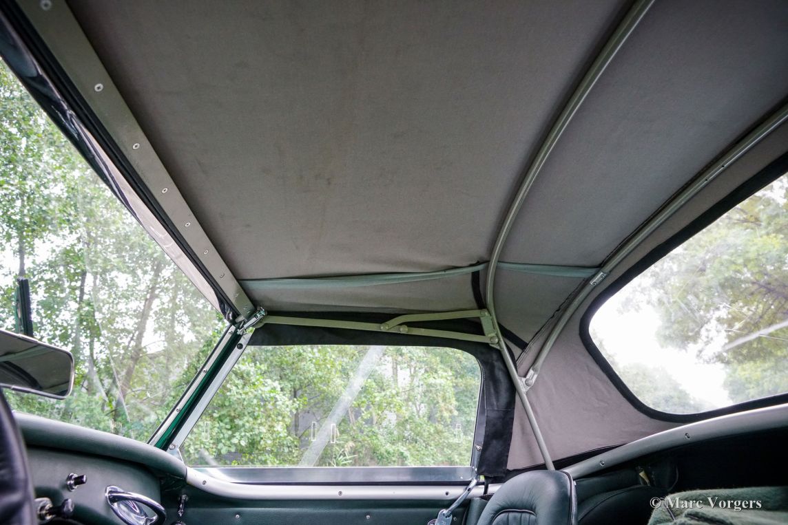 The former Healey models were more Spartan and featured fully detachable soft tops with separate side screens which could be stowed away in the booth.