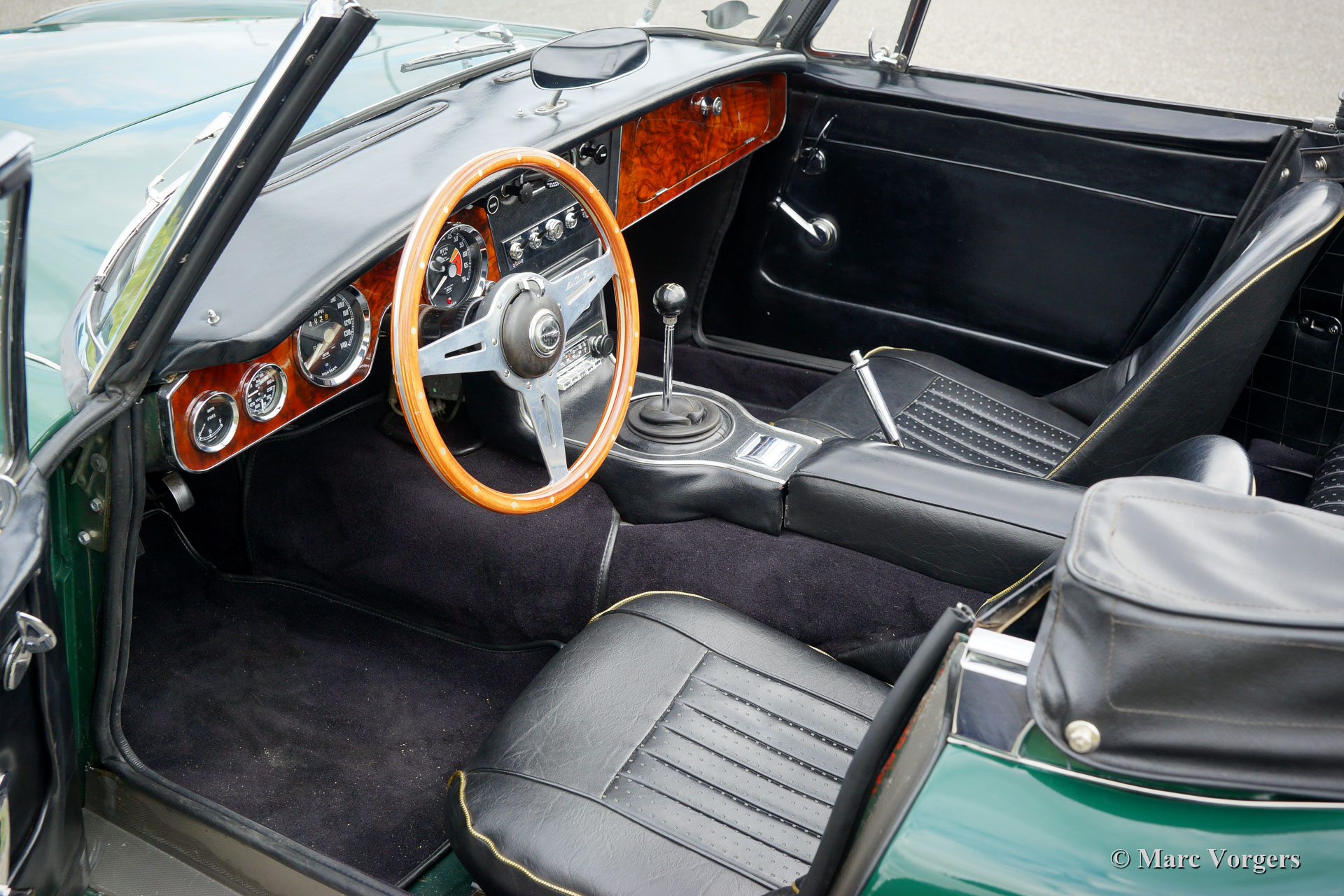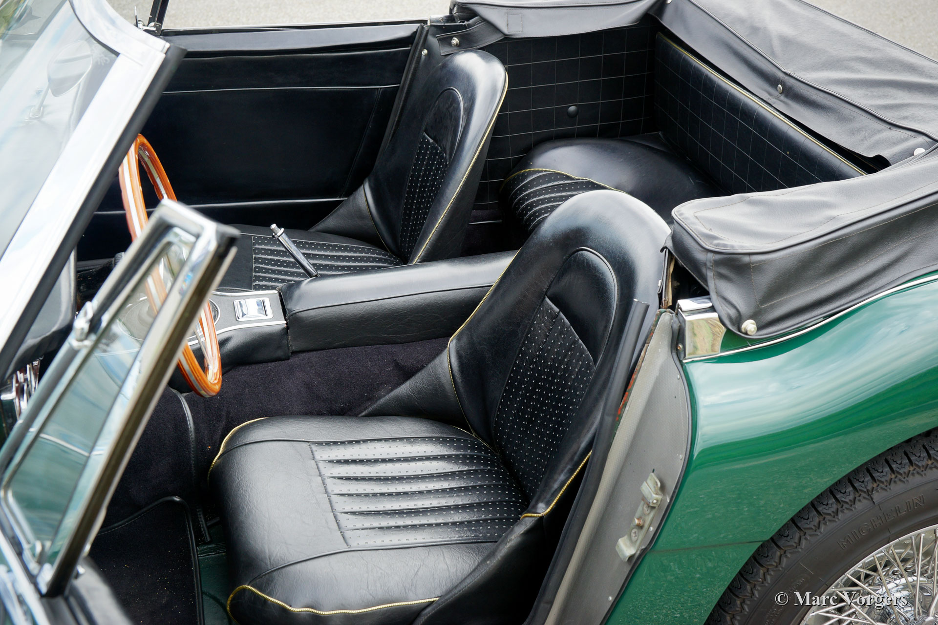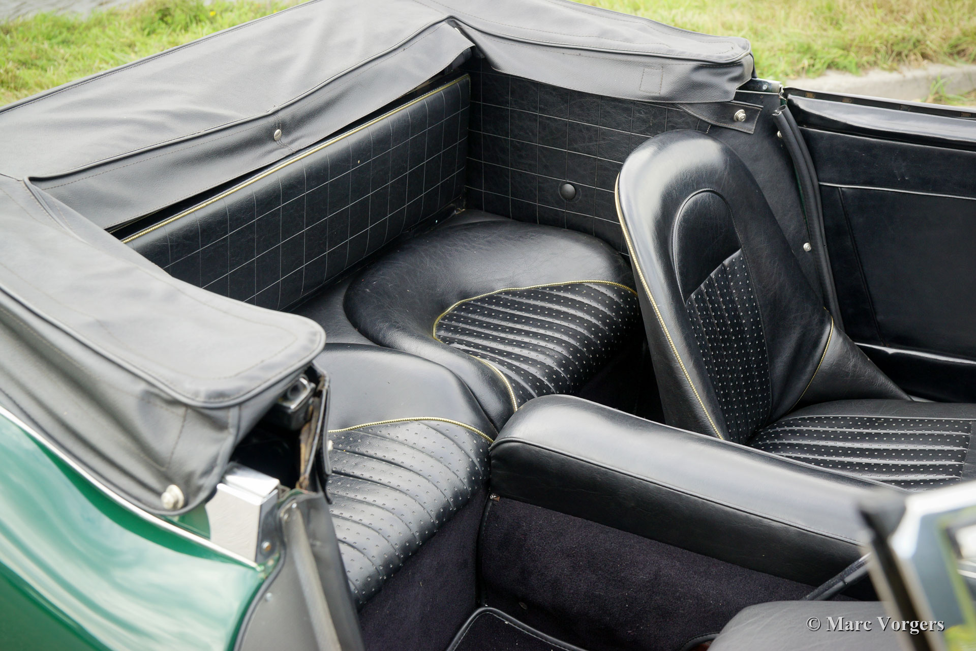 The former Healey models were more Spartan and featured fully detachable soft tops with separate side screens which could be stowed away in the booth.