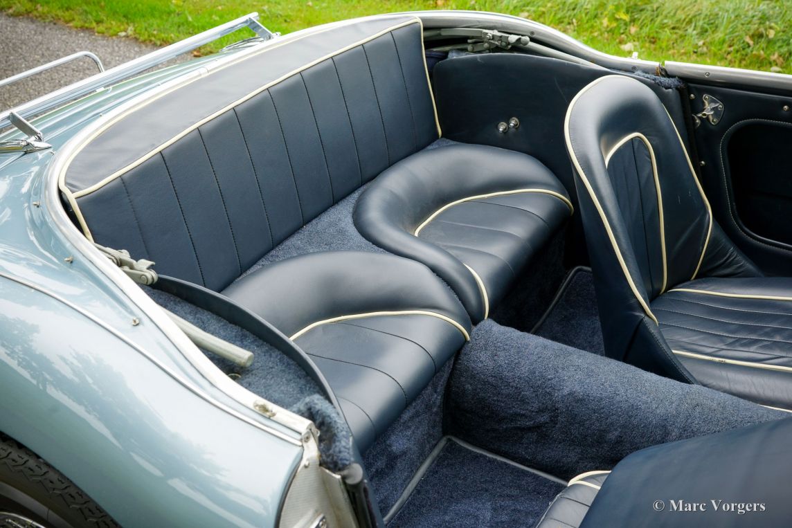 The former Healey models were more Spartan and featured fully detachable soft tops with separate side screens which could be stowed away in the booth.