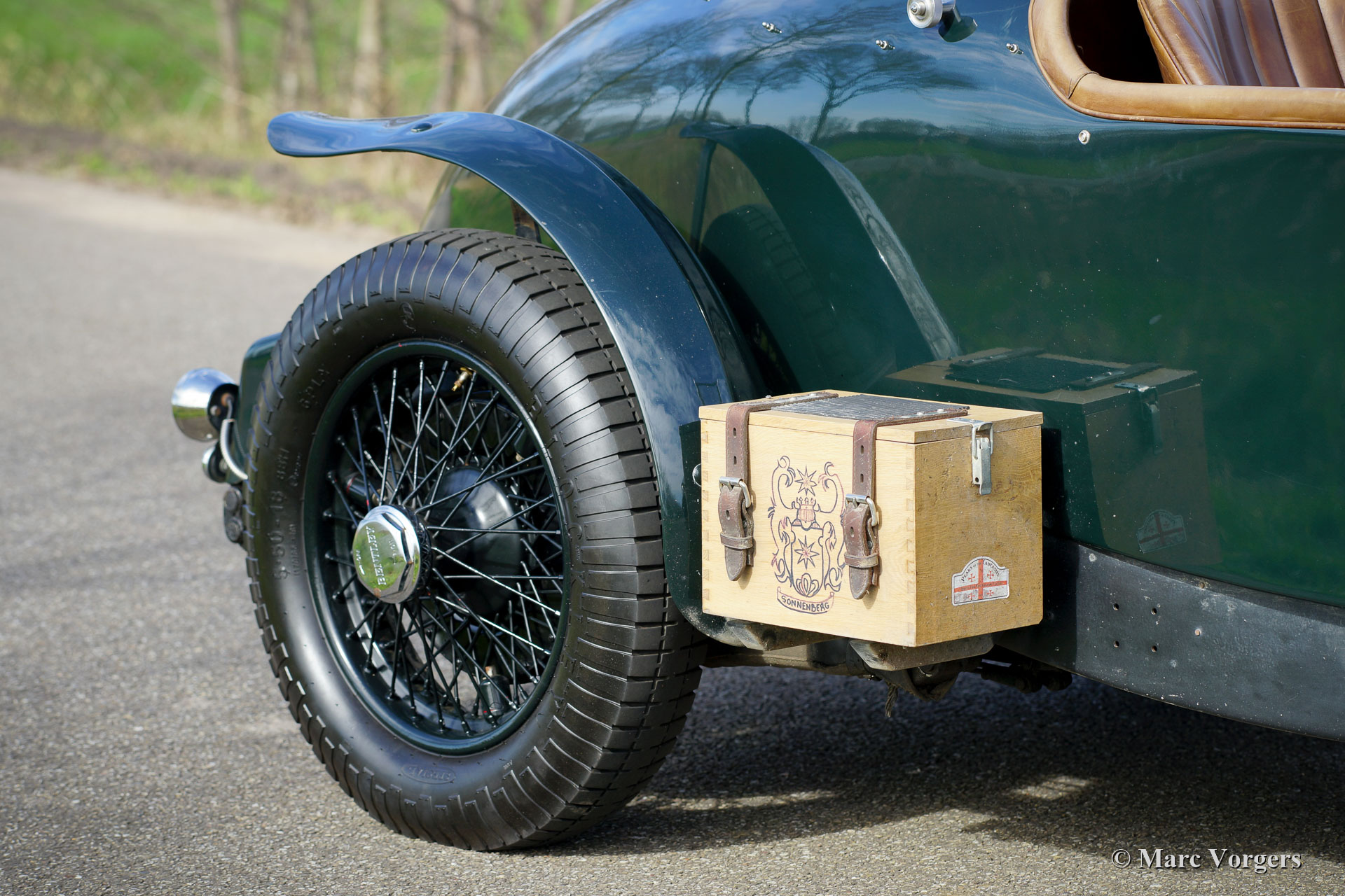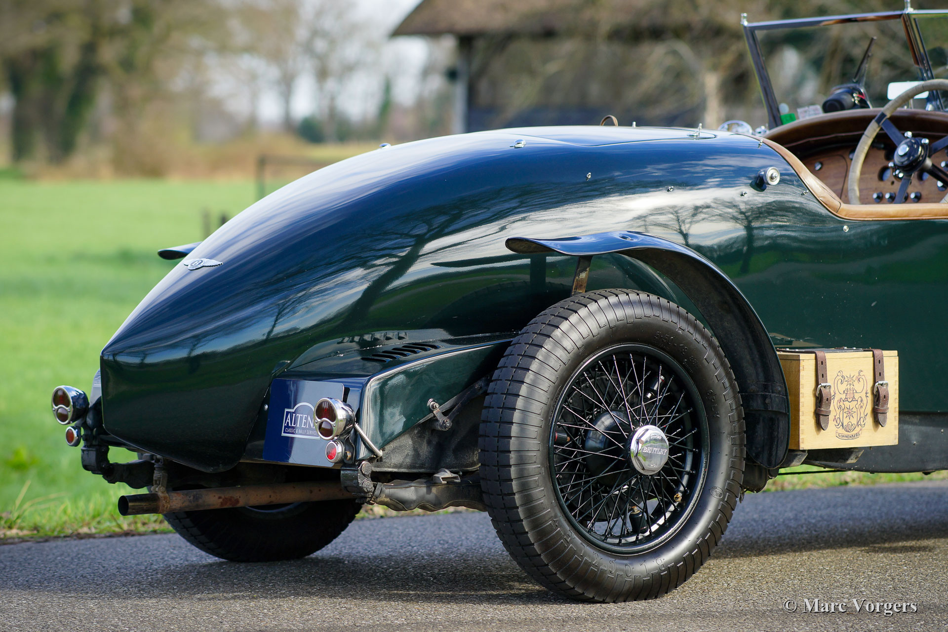 Bentley 4¼ Litre special, year 1938. Chassis and engine are a factory original pair; matching numbers. Colour dark British Racing Green combined with a brown natural leather interior and black carpet. Black mohair soft-top and hood-cover. This is a Bentley built after the Rolls Royce take-over in 1931. From 1933 Bentley’s were manufactured in Derby, East Midlands, UK. The Bentley motorcars of this period are named ‘Derby’ Bentley’s. Because of the Rolls-Royce influence and the R.R. technical superiority these Derby Bentley’s turned out to be magnificent cars. This Bentley 4¼ Litre special was sold by Altena Classic Service in the past. In 2017 the automobile was fully repainted, and the leather interior upholstery was renewed. The car has participated in several historic (pre-war) rally events without any mishap. Over the years the car was updated and serviced by Altena Classic Service. This Bentley is fully up-to-date mechanically and technically. The car features a spacious interior, excellent seats, a large boot and an easy to erect soft-top. The car drives perfectly, and all the controls are easily to operate! This Bentley features the top-of-the-line 4¼ litre engine mated to a four-speed manual gearbox. The special aluminium ‘boat-tail’ bodywork was handcrafted by an English Bentley specialist. The automobile comes with a history file which includes photos of the build, and workshop invoices which give an excellent insight in the service history. This fine Bentley special is listed in the Bentley register. The car is currently registered in the Netherlands and it can be imported to any country. This magnificent Bentley Special is in excellent condition and ready for any adventure in the hands of a new owner!