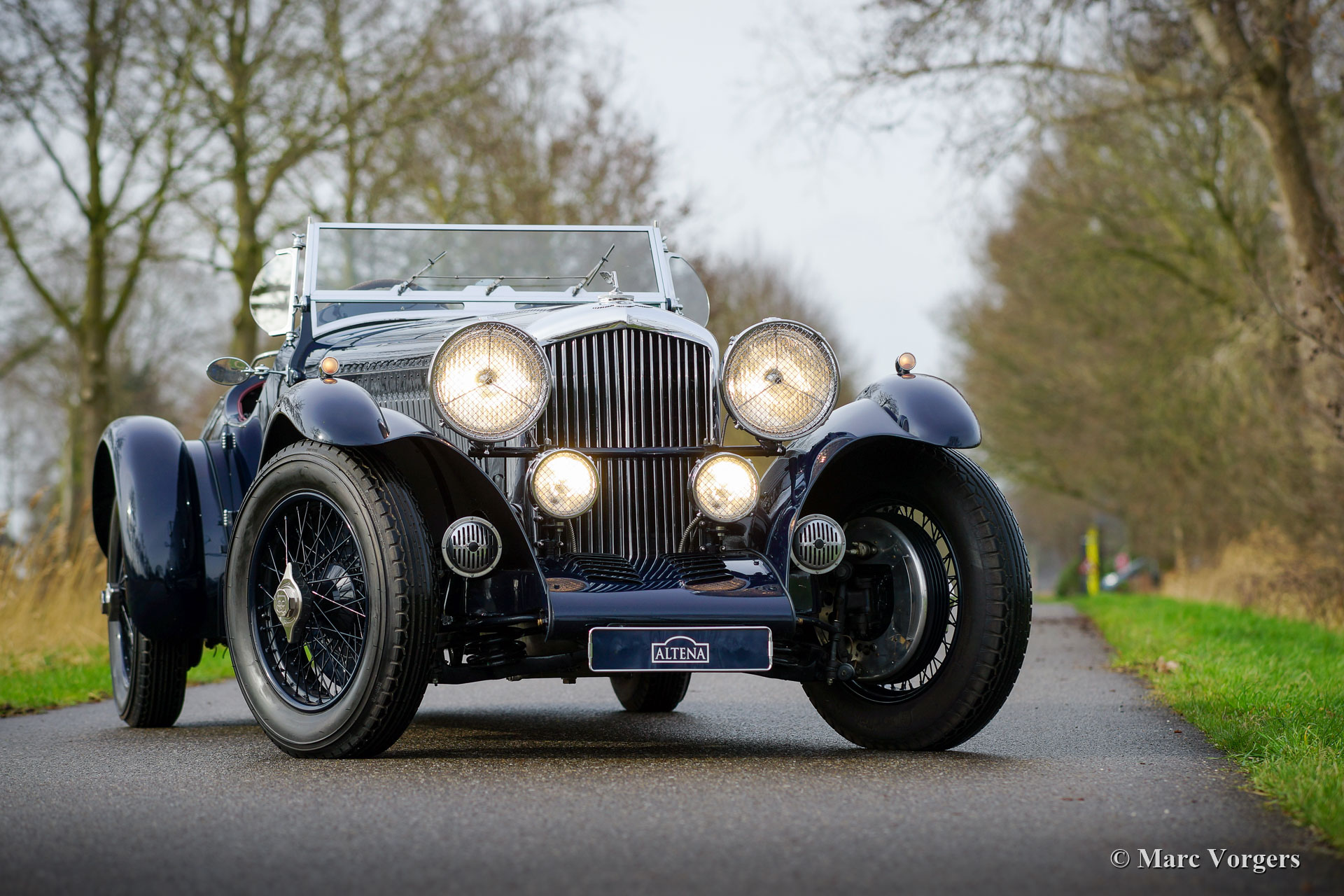 Bentley Alpine Special, built by Racing Green Engineering in the year 2010, chassis year 1949. Colour dark blue combined with a red leather interior and red carpet. Black mohair soft-top and hood cover. This gorgeous Bentley Alpine Special was built to perfection by the renowned firm of Racing Green Engineering in the United Kingdom. The brand new ‘Alpine’ special body was mated with a fully restored and overhauled Bentley Mk VI chassis. All the mechanicals like the gearbox, rear axle, brakes, suspension etcetera were overhauled and or renewed. The six cylinder in-line engine was replaced by an impressive Bentley B80 eight-cylinder engine fitted with four S.U. carburettors! Since completion of the build the car has driven only 1100 miles. This magnificent and eye-catching Bentley is in perfect and like NEW condition! The automobile drives impressively. The brakes, the four-speed gearbox and the steering are all easy to operate. This magnificent Bentley Alpine is a very impressive machine, it looks amazing, it drives comfortably, the engine is very powerful, and the high driving position is a delight! The car features painted 20-inch wire wheels shod with Goodrich Silvertown 6.00-20 tyres, a chrome baggage rack. The automobile can be imported and registered in any European country, all the papers and documentation are present with the car as is a FIVA ID-card. This fabulous Bentley is ready for any adventure or historic event in the hands of a new owner. Altena Classic Service is official ‘Racing Green Engineering’ service partner. We offer all the advice, support and service you will need regarding your Bentley motorcar.