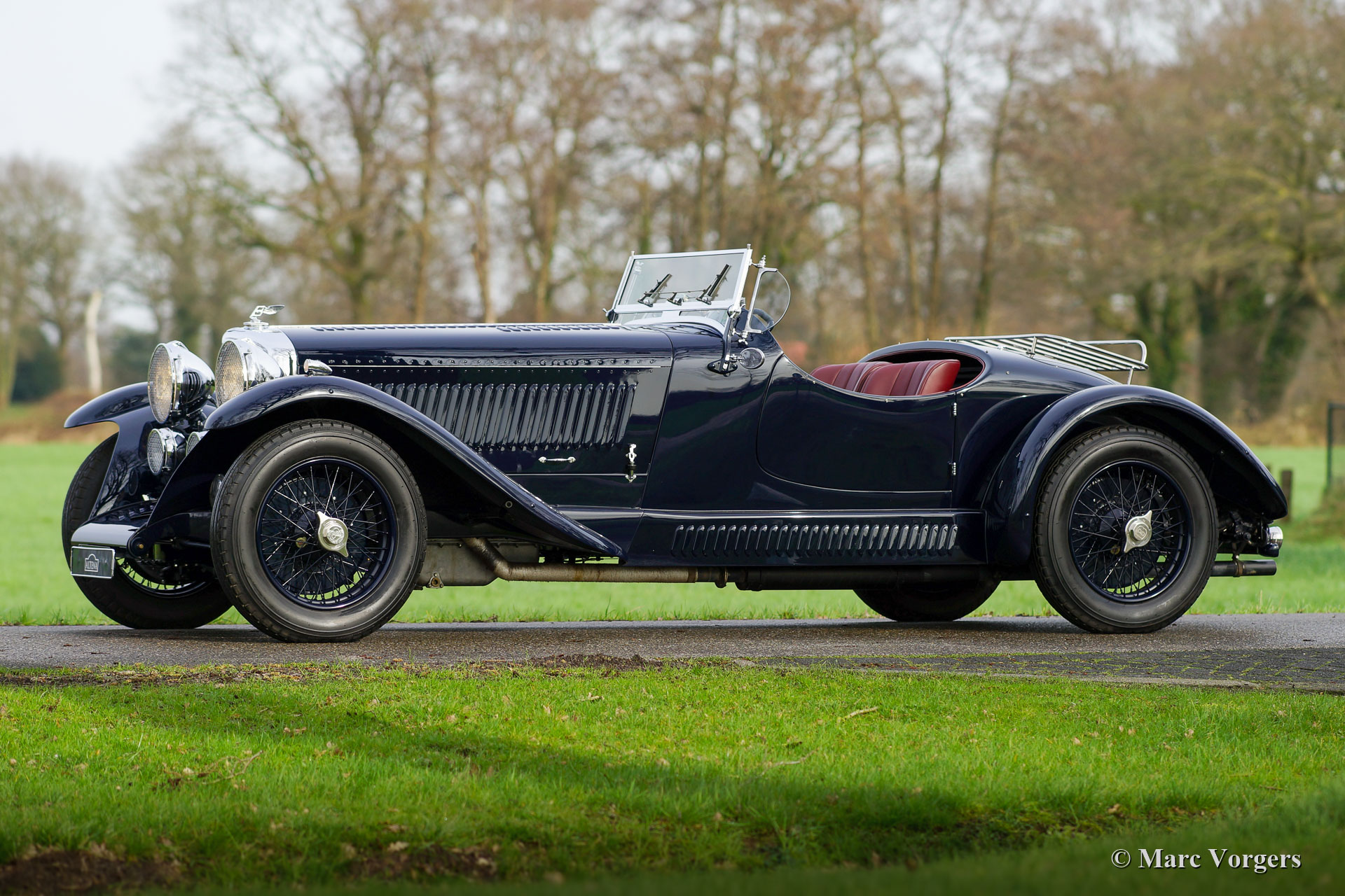 The Bentley 3 Litre was W.O. Bentley’s first design. The car was presented in 1919 but the first cars were sold in 1921. The four cylinder cars of rugged construction where in a class of their own for they combined the size and comfort of the big tourers and saloons with the road holding, and speed of the smaller sports- and racing cars. The Bentley was a true owner-driver car for the sporting motorist and connoisseur. The Bentley car could be had in three different types which were designated with three different radiator badges*. Red badge: short chassis speed model, Blue badge: the early short and then long chassis type for bespoke bodywork, Green badge: very rare and used for about eighteen 100 mph. These Green badge car won at Le Mans in 1924 and 1927 (Old Number Seven.) The 3-Litre was built from 1919 until 1929.
