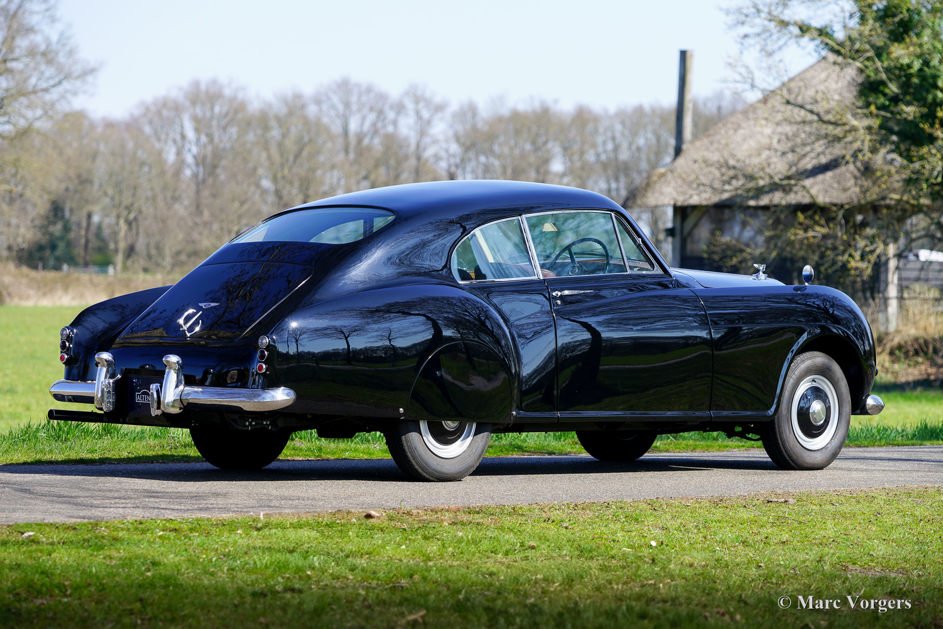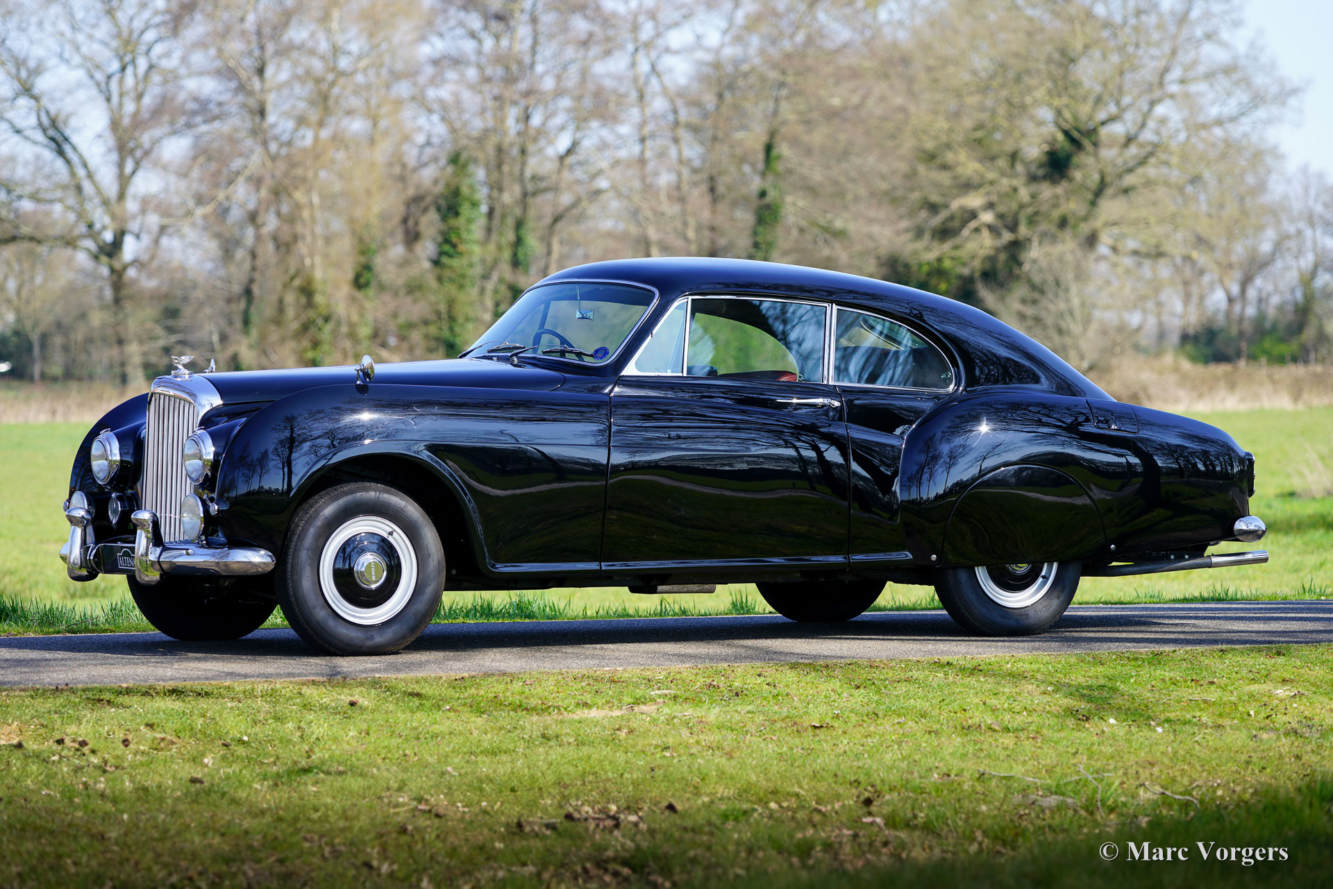Bentley R Type Continental by Racing Green Engineering, year chassis 1953. Chassis (VIN) number: B40UM, engine number: B123U, body number 00052. Colour black combined with a burgundy red leather interior trimmed with dark red wool carpet. This majestic Bentley R Type Continental was completed by Racing Green Engineering (Wales, UK) in 2015. This Bentley R Type Continental recreation was based on a 1953 Bentley R-type chassis and mechanical components. The chassis, engine, gearbox and all the other original components were fully restored and overhauled to the highest standards and finished to perfection. The aluminium bodywork was handcrafted by the craftsmen of Racing Green Engineering following the example of the original shape of the R Type Continental design by H.J. Mulliner. The original R Type Continental was presented in 1952 and produced until 1955. Only 208 examples were originally built by Bentley. The R Type Continental redefined the post war Bentley and it is one of the most impressive motorcars ever conceived. The Continental was built with a strict target weight of 1750kg: in 1950 no tyre existed which could sustain a heavier weight at 115mph+. The R Type Continental was highly praised by Autocar Magazine: “Whatever memorable motoring experiences one may have had, this was something different…this Bentley is a modern magic carpet which annihilates great distances and delivers the occupants well-nigh as fresh as when they started.” This Bentley R Type Continental recreation built by Racing Green Engineering has driven only 2329 kilometres since its completion, and the car is still in a like new concours condition! The 4566 cc R Type straight six engine runs smoothly and powerfully, and the fully synchronized R Type four speed gearbox shifts perfectly. The interior is upholstered and finished using the finest leather, wool, and walnut wood. The wood dashboard and the other wood interior details are works of art. This automobile has known one proud owner since its completion. This is your chance to buy a fantastic recreation of the most desirable vintage post war Bentley ever conceived. This exclusive automobile comes with original Bentley documents, and a restoration (photo) report.