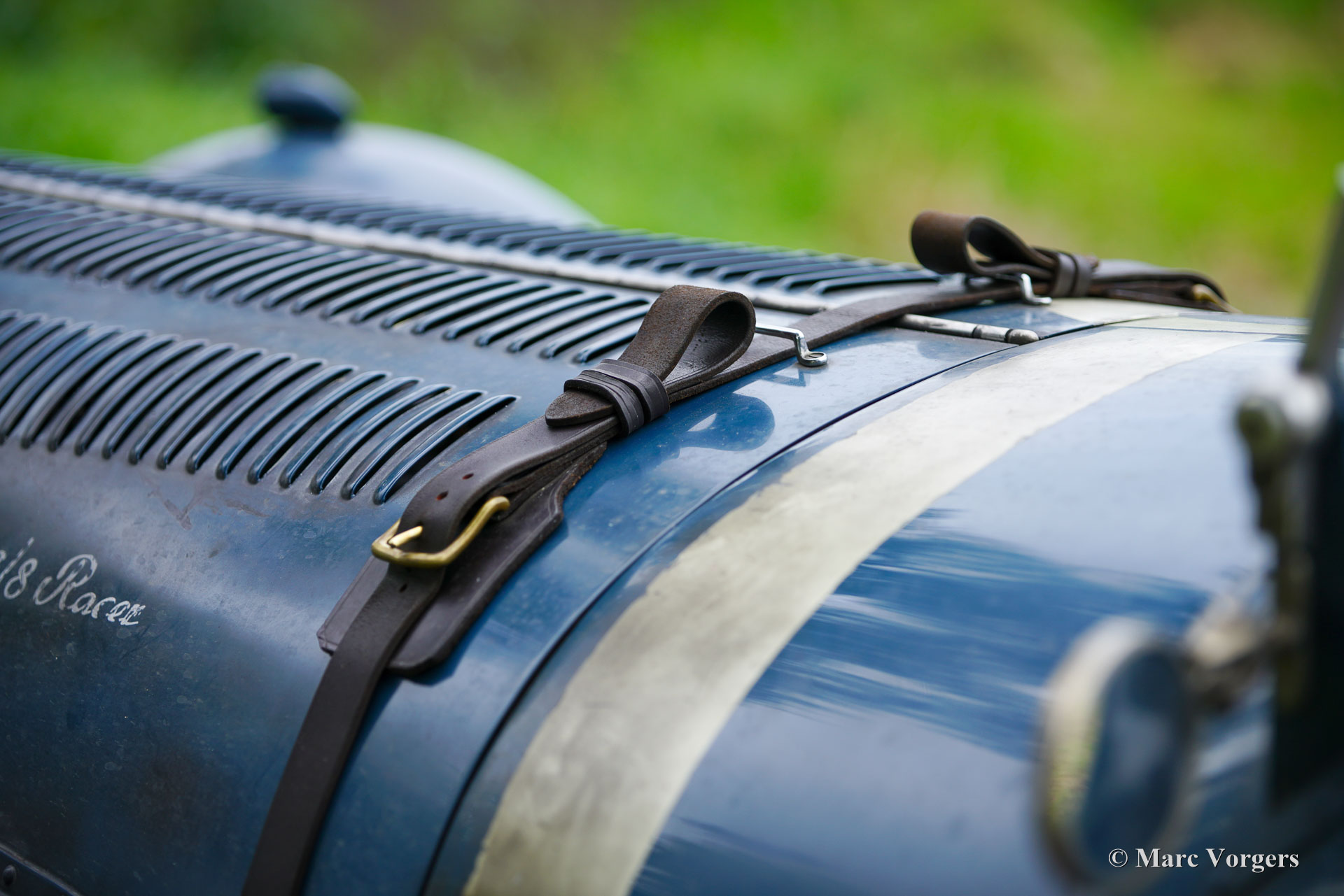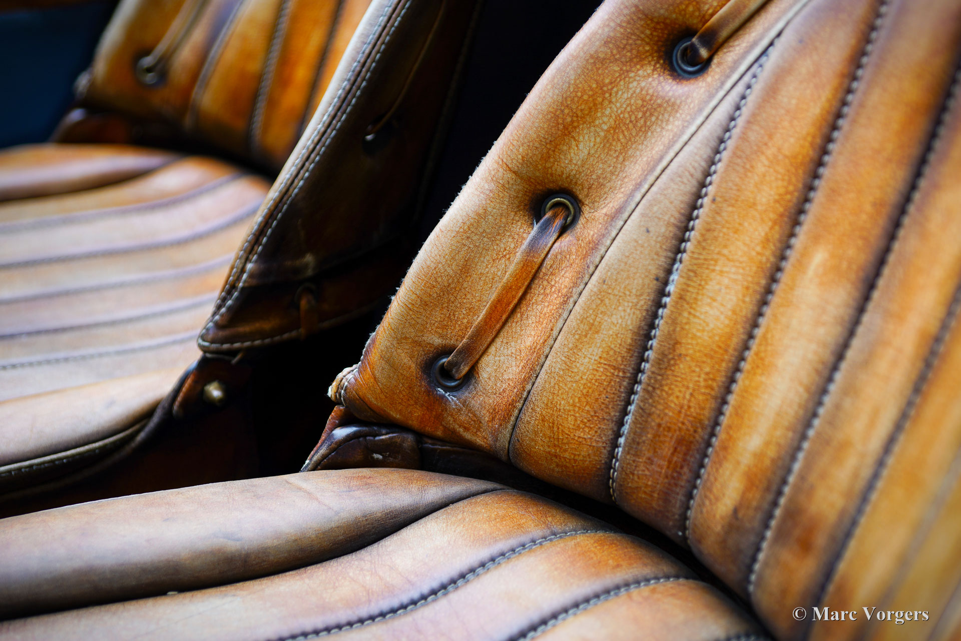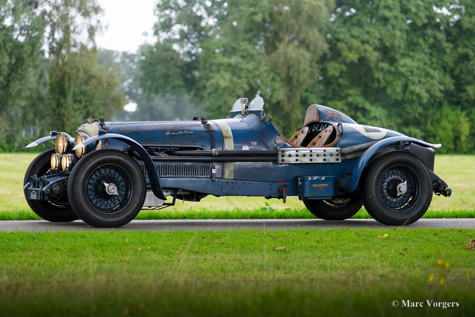 The Bentley 3 Litre was W.O. Bentley’s first design. The car was presented in 1919 but the first cars were sold in 1921. The four cylinder cars of rugged construction where in a class of their own for they combined the size and comfort of the big tourers and saloons with the road holding, and speed of the smaller sports- and racing cars. The Bentley was a true owner-driver car for the sporting motorist and connoisseur. The Bentley car could be had in three different types which were designated with three different radiator badges*. Red badge: short chassis speed model, Blue badge: the early short and then long chassis type for bespoke bodywork, Green badge: very rare and used for about eighteen 100 mph. These Green badge car won at Le Mans in 1924 and 1927 (Old Number Seven.) The 3-Litre was built from 1919 until 1929.